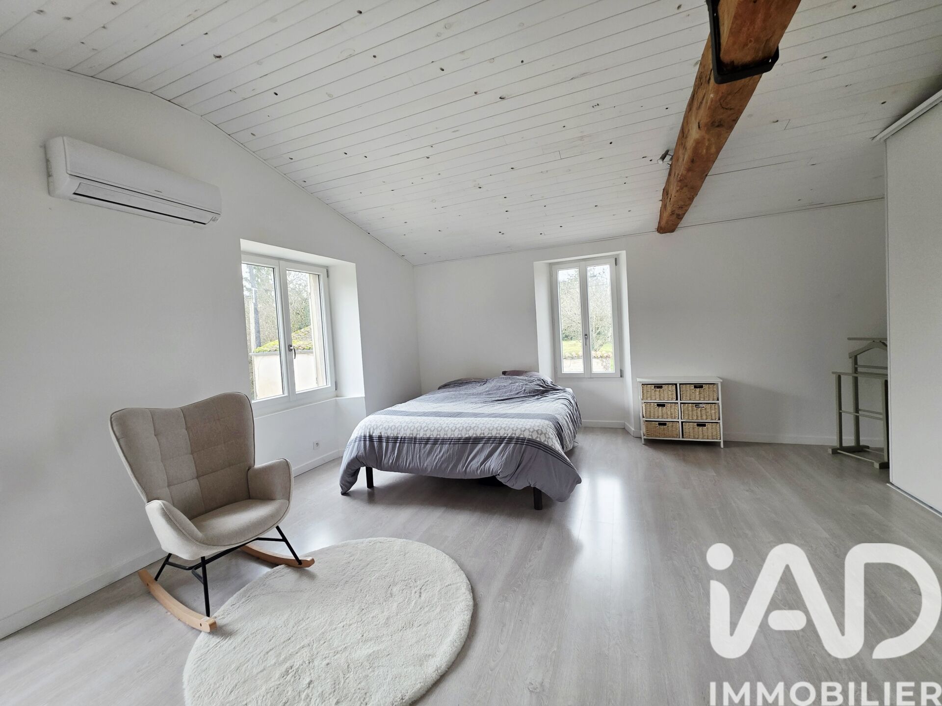 Iad France - Marion Lopez vous propose : Maison de village rénovée d’environ 134 m², située dans un environnement calme, à 7 min de Rouillac et à 30 min de Cognac et d’Angoulême. Elle offre une cour plein sud sans vis-à-vis, facile d’entretien, ainsi qu’un garage pour une voiture. Au rez-de-chaussée : grande cuisine aménagée et équipée ouverte sur le séjour, salle d’eau, WC et cellier. À l’étage : 2 grandes chambres de 31,5 m² et 21,4 m², avec possibilité de créer une 3ᵉ chambre par cloisonnement. Pompe à chaleur, double vitrage, électricité aux normes et assainissement récent. Maison habitable de suite, avec quelques finitions à prévoir. Honoraires d'agence à la charge du vendeur. Information d'affichage énergétique sur ce bien : classe ENERGIE B indice 83 et classe CLIMAT A indice 2. Les informations sur les risques auxquels ce bien est exposé, y compris l'obligation légale de débroussaillement, sont disponibles sur le site Géorisques : http://www.georisques.gouv.fr. La présente annonce immobilière a été rédigée sous la responsabilité éditoriale de Mme Marion Lopez mandataire indépendant en immobilier (sans détention de fonds), agent commercial de la SAS I@D France immatriculé au RSAC de angouleme sous le numéro 847630654, titulaire de la carte de démarchage immobilier pour le compte de la société I@D France SAS.