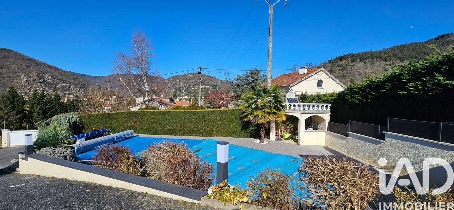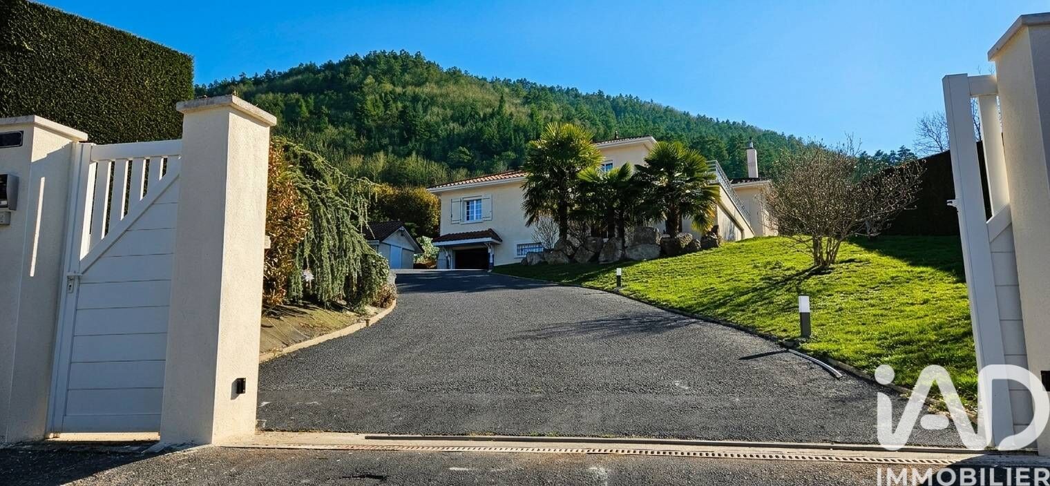 Iad France - Alain Grange vous propose : Maison de prestige à Aurec-sur-Loire Exclusivité dans un cadre exceptionnel, à la limite Loire / Haute-Loire. Cette maison de 2000, parfaitement entretenue, bénéficie d’une vue dégagée et dominante sur les gorges de la Loire. Édifiée sur un terrain clos et paysager de 1 450 m², elle développe 162 m² habitables aux volumes généreux, alliant confort et prestations de qualité. L’accès par portail ouvre sur une allée longeant la piscine et menant à une esplanade desservant trois garages. La terrasse panoramique prolonge naturellement les espaces de vie. Le hall de 16 m² distribue un séjour lumineux de 40 m² avec 3,20 m de hauteur sous plafond et poêle à granulés. Cuisine indépendante équipée de 14 m² avec terrasse couverte. L’espace nuit comprend trois chambres, salle de bains, salle d’eau et WC indépendant. Un second WC complète ce niveau. Un volume cathédrale de 15 m² accueille un bureau. Sous-sol semi-enterré avec garage, cave et atelier. Annexe de 35 m² comprenant deux garages supplémentaires. Piscine de 46 m² avec esplanade et cuisine d’été.