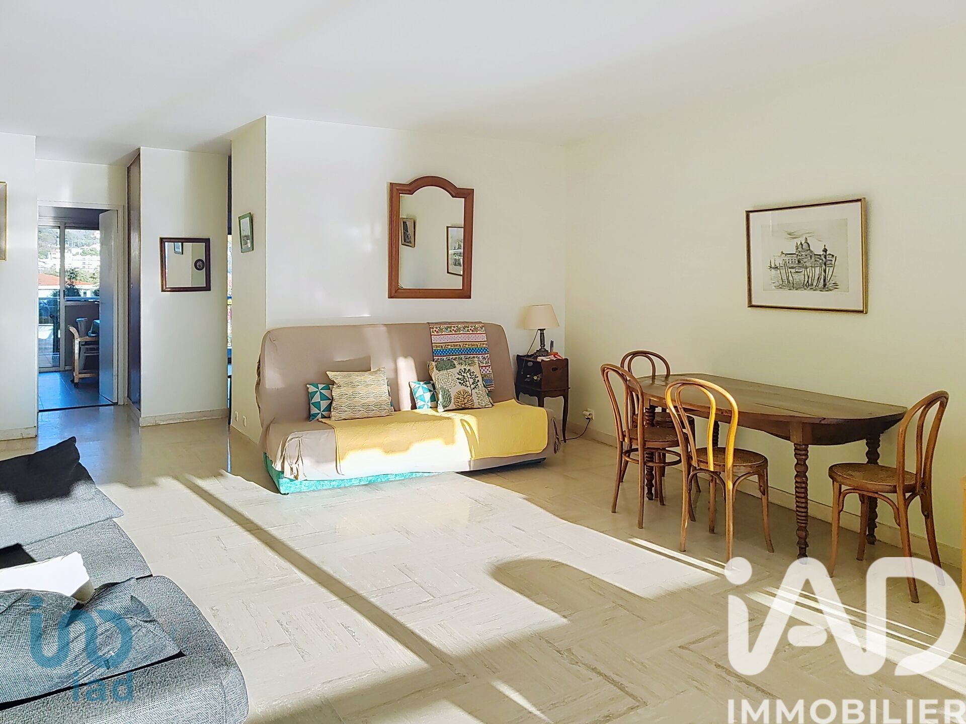 Iad France - Céline FRERE vous propose : CANNES MARINA - SUPERBE VUE POUR CET APPARTEMENT DE 2 PIECES TRAVERSANT de 59 m² AVEC PARKING EXTERIEUR et CAVE - Dans résidence sécurisée, prisée avec gardien et piscine. Cet appartement est composé comme suit : d'un séjour donnant sur une terrasse exposée Sud Est avec vue ouverte sur la marina, la piscine et les jardins, d'une cuisine séparée et équipée, d'un wc indépendant avec lave-mains, d'une salle de douche avec lavabo et d'une chambre avec placards. Grande terrasse exposée Nord. Localisation idéale ! Proche à pied des plages, du Golf Old Course et de toutes les commodités, notamment du centre commercial Auchan et sa galerie marchande. Le ravalement de l'immeuble est en phase de se terminer. La presente annonce immobiliere vise 3 lots situés dans une copropriété de 820 lots au total et ne faisant l'objet d'aucune procédure en cours citée à l'article L. 721-1 du code de la construction et de l'habitation. Montant moyen mensuel de charges déclaré par le vendeur : 290€ par mois (soit 3480 € annuel). Honoraires d'agence à la charge du vendeur. Information d'affichage énergétique sur ce bien : classe ENERGIE D indice 213 et classe CLIMAT D indice 42. Les informations sur les risques auxquels ce bien est exposé, y compris l'obligation légale de débroussaillement, sont disponibles sur le site Géorisques : http://www.georisques.gouv.fr. La présente annonce immobilière a été rédigée sous la responsabilité éditoriale de Mme Céline FRERE mandataire indépendant en immobilier (sans détention de fonds), agent commercial de la SAS I@D France immatriculé au RSAC de CANNES sous le numéro 881391981, titulaire de la carte de démarchage immobilier pour le compte de la société I@D France SAS.