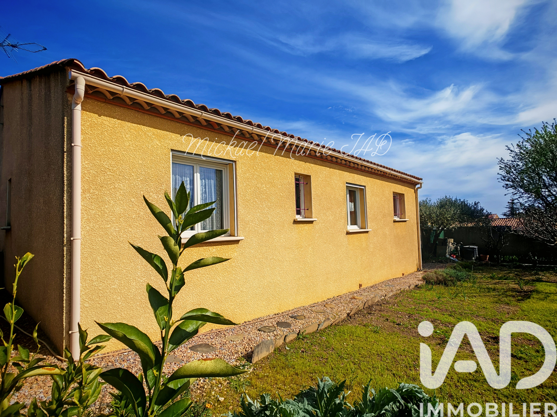 Iad France - Mickael MARIE vous propose : Située sur la commune de Autignac, charmant village entre vignes et garrigue, à environ 20 minutes de Béziers et moins d’une heure de Montpellier, découvrez cette agréable villa de plain-pied de type T4 avec garage, implantée sur une belle parcelle en quatre faces. Un cadre de vie recherché, à proximité des commodités tout en restant à une trentaine de kilomètres du littoral méditerranéen. L’accès à la maison se fait par un petit palier abrité qui marque une transition agréable avant de découvrir l’espace de vie. À l’intérieur, la pièce principale séduit par sa luminosité et son atmosphère conviviale. Elle offre un bel espace pour recevoir et partager des moments en famille. La cuisine, spacieuse et fonctionnelle, est entièrement équipée et pensée pour un usage quotidien confortable. L’espace nuit se compose de deux chambres ainsi que d’une troisième pièce actuellement aménagée en bureau. Un couloir dessert également une salle d’eau avec double vasque ainsi qu’un toilette indépendant. La maison dispose également d’une grande terrasse sécurisée par des rambardes, idéale pour profiter pleinement de l’extérieur. Un garage carrelé avec rangements et mezzanine vient compléter l’ensemble et offre des espaces de stockage supplémentaires. Plusieurs véhicules peuvent être stationnés facilement sur la parcelle. Construite en 2007, cette maison est habitable immédiatement et bénéficie de prestations confortables : menuiseries double vitrage, volets roulants électriques, climatisation gainable et isolation des combles. Une opportunité offrant un excellent rapport qualité-prix dans un environnement agréable. Honoraires d'agence à la charge du vendeur. Information d'affichage énergétique sur ce bien : classe ENERGIE B indice 95 et classe CLIMAT A indice 3. Les informations sur les risques auxquels ce bien est exposé, y compris l'obligation légale de débroussaillement, sont disponibles sur le site Géorisques : http://www.georisques.gouv.fr. La présente annonce immobilière a été rédigée sous la responsabilité éditoriale de M Mickael MARIE mandataire indépendant en immobilier (sans détention de fonds), agent commercial de la SAS I@D France immatriculé au RSAC de BEZIERS sous le numéro 895092278, titulaire de la carte de démarchage immobilier pour le compte de la société I@D France SAS.