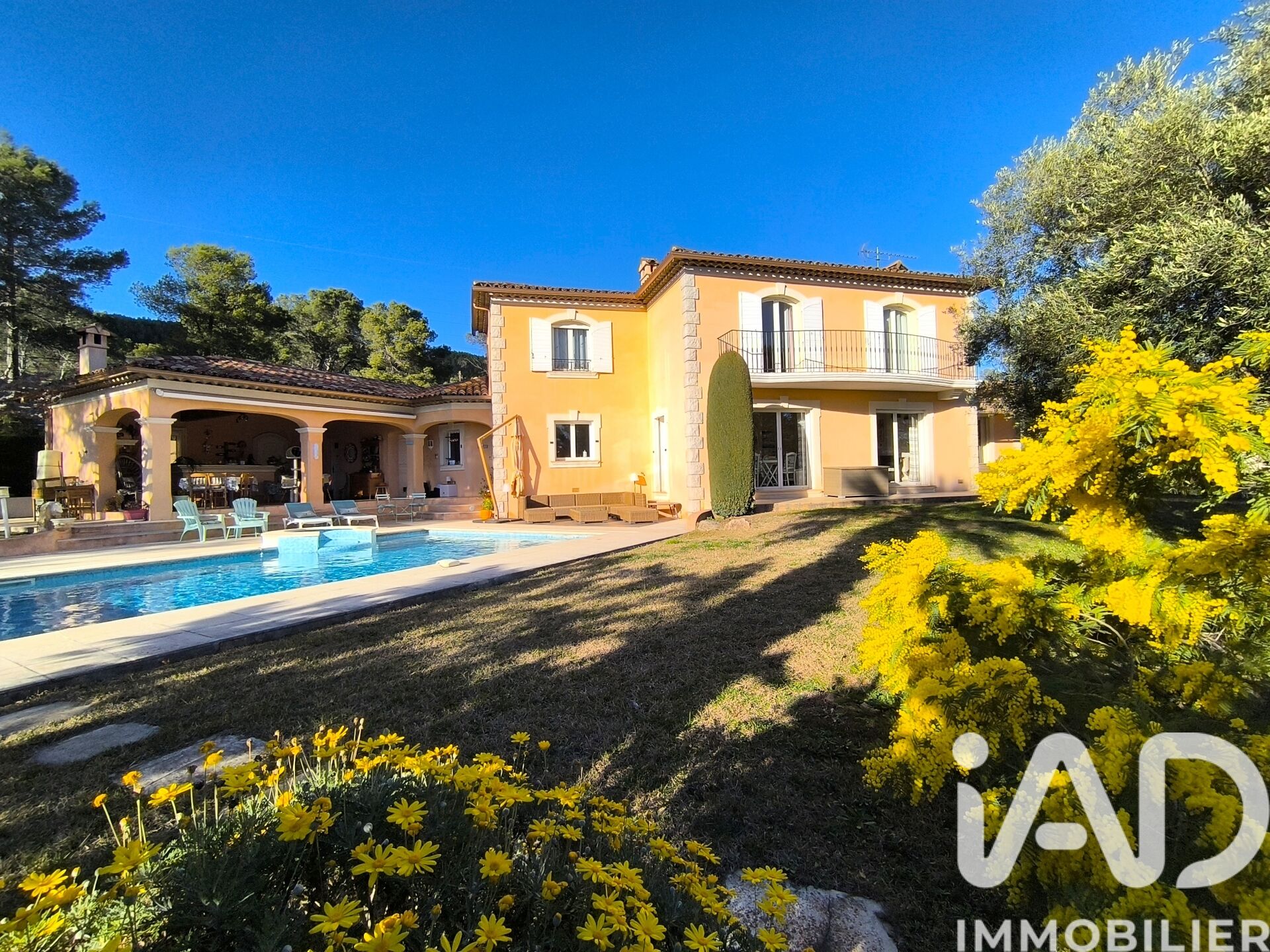 Iad France - Stéphane Thiboult vous propose : Dans un environnement calme et recherché, découvrez cette élégante villa néo-provençale qui allie charme du sud et prestations modernes. Dés l'entrée, vous serez séduit par un vaste séjour de 41 m² baigné de lumière, ouvert sur le jardin graçe aux baies à galandages et réchauffé l'hiver par une cheminée insert qui crée une atmosphère chaleureuse. La cuisine attenante complète harmonieusement cet espace de vie convivial. Le rez-de-chaussée offre également deux chambres dont une suite parentale ainsi qu'une salle d'eau. À l'étage, trois autres chambres dont une seconde suite parentale, idéal pour accueillir famille et invités dans un confort total. La villa est équipée de la climatisation dans chaque chambre et d'une pompe à chaleur avec chauffage au sol, garantissant un confort optimal en toute saison. À l'extérieur, vous profiterez d'une belle piscine et d'une magnifique cuisine d'été couverte de 45 m², un véritable lieu de vie pour partager partager de grands moments entre amis ou en famille. Un sous sol vient parfaire l'ensemble comprenant un garage, une cave à vin et un espace supplémentaire à aménager selon vos besoins. Une villa parfaitement entretenue, pensée pour ceux qui recherchent le confort, l'espace et l'art de vivre provencal. Honoraires d'agence à la charge du vendeur. Information d'affichage énergétique sur ce bien : classe ENERGIE C indice 102 et classe CLIMAT C indice 18. Les informations sur les risques auxquels ce bien est exposé, y compris l'obligation légale de débroussaillement, sont disponibles sur le site Géorisques : http://www.georisques.gouv.fr. La présente annonce immobilière a été rédigée sous la responsabilité éditoriale de M Stéphane Thiboult mandataire indépendant en immobilier (sans détention de fonds), agent commercial de la SAS I@D France immatriculé au RSAC de Draguignan sous le numéro 903173482, titulaire de la carte de démarchage immobilier pour le compte de la société I@D France SAS.