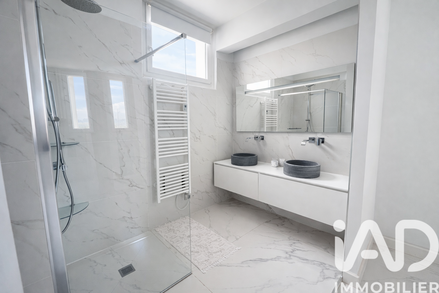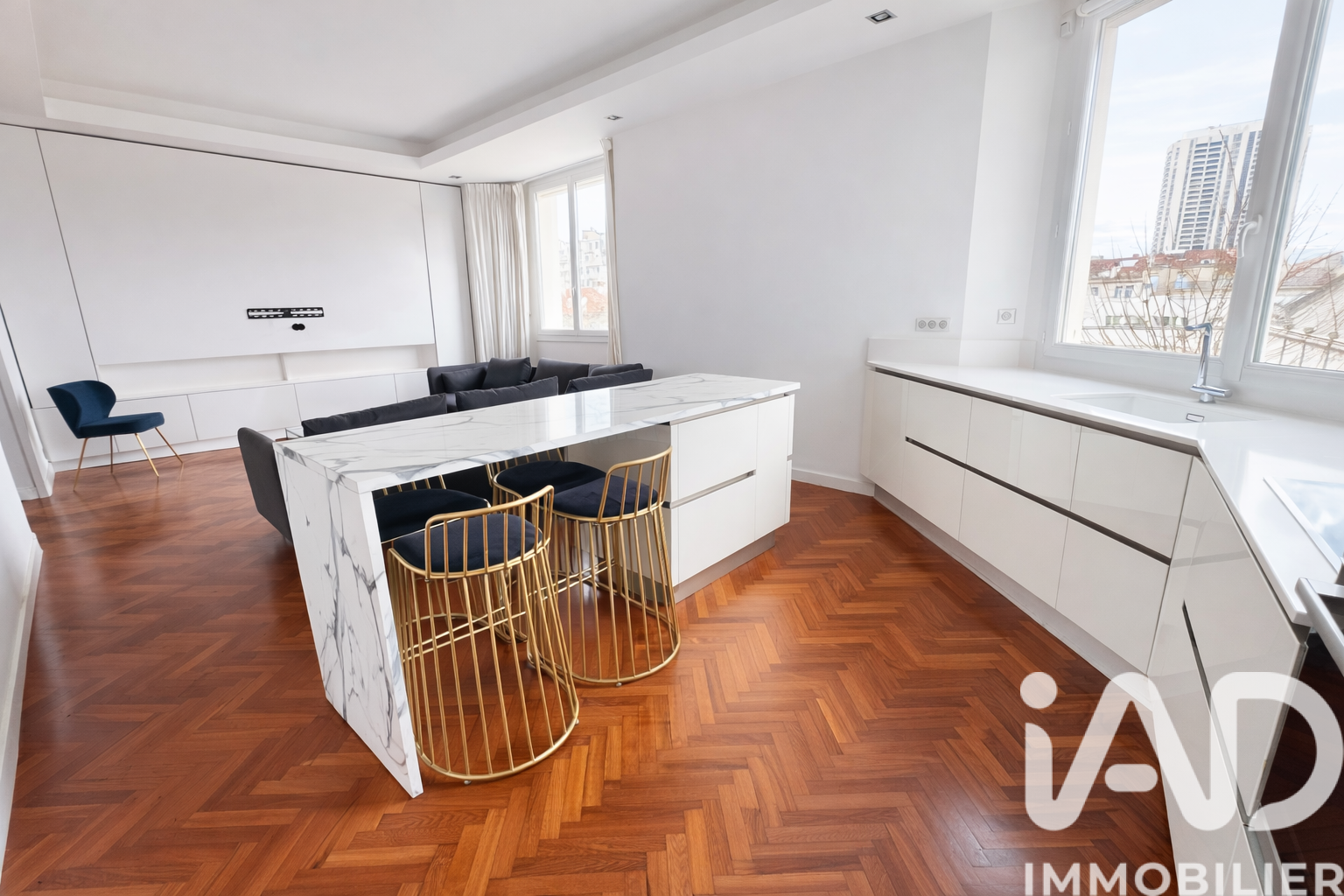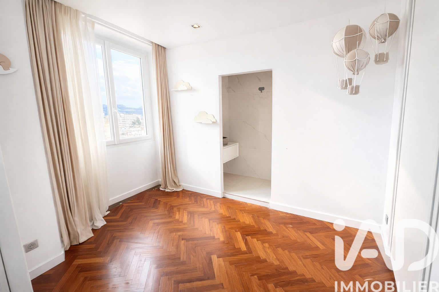 Iad France - Charlotte Merlet vous propose : Appartement 3 pièces – 72 m² – Ultra lumineux - Rénovation haut de gamme – Hauteur sous plafond 3 m – Marseille 8e Appartement entièrement rénové avec des matériaux de qualité, très lumineux offrant de beaux volumes grâce à une hauteur sous plafond d’environ 3 mètres. Belle pièce de vie avec cuisine ouverte contemporaine et îlot central. Parquet en chevrons. L’espace nuit comprend deux chambres, chacune disposant de sa propre salle d’eau attenante. Prestations : - climatisation gainable - nombreux rangements - ascenseur - cave Surface totale : environ 77 m² Surface loi Carrez : 72 m² Charges : environ 270 € / trimestre La presente annonce immobiliere vise 2 lots situés dans une copropriété de 2 lots au total et ne faisant l'objet d'aucune procédure en cours citée à l'article L. 721-1 du code de la construction et de l'habitation. Montant moyen mensuel de charges déclaré par le vendeur : 90€ par mois (soit 1080 € annuel). Honoraires d'agence à la charge du vendeur. Information d'affichage énergétique sur ce bien : classe ENERGIE D indice 209 et classe CLIMAT B indice 6. Les informations sur les risques auxquels ce bien est exposé, y compris l'obligation légale de débroussaillement, sont disponibles sur le site Géorisques : http://www.georisques.gouv.fr. La présente annonce immobilière a été rédigée sous la responsabilité éditoriale de Mme Charlotte Merlet mandataire indépendant en immobilier (sans détention de fonds), agent commercial de la SAS I@D France immatriculé au RSAC de Draguignan sous le numéro 928110402, titulaire de la carte de démarchage immobilier pour le compte de la société I@D France SAS.