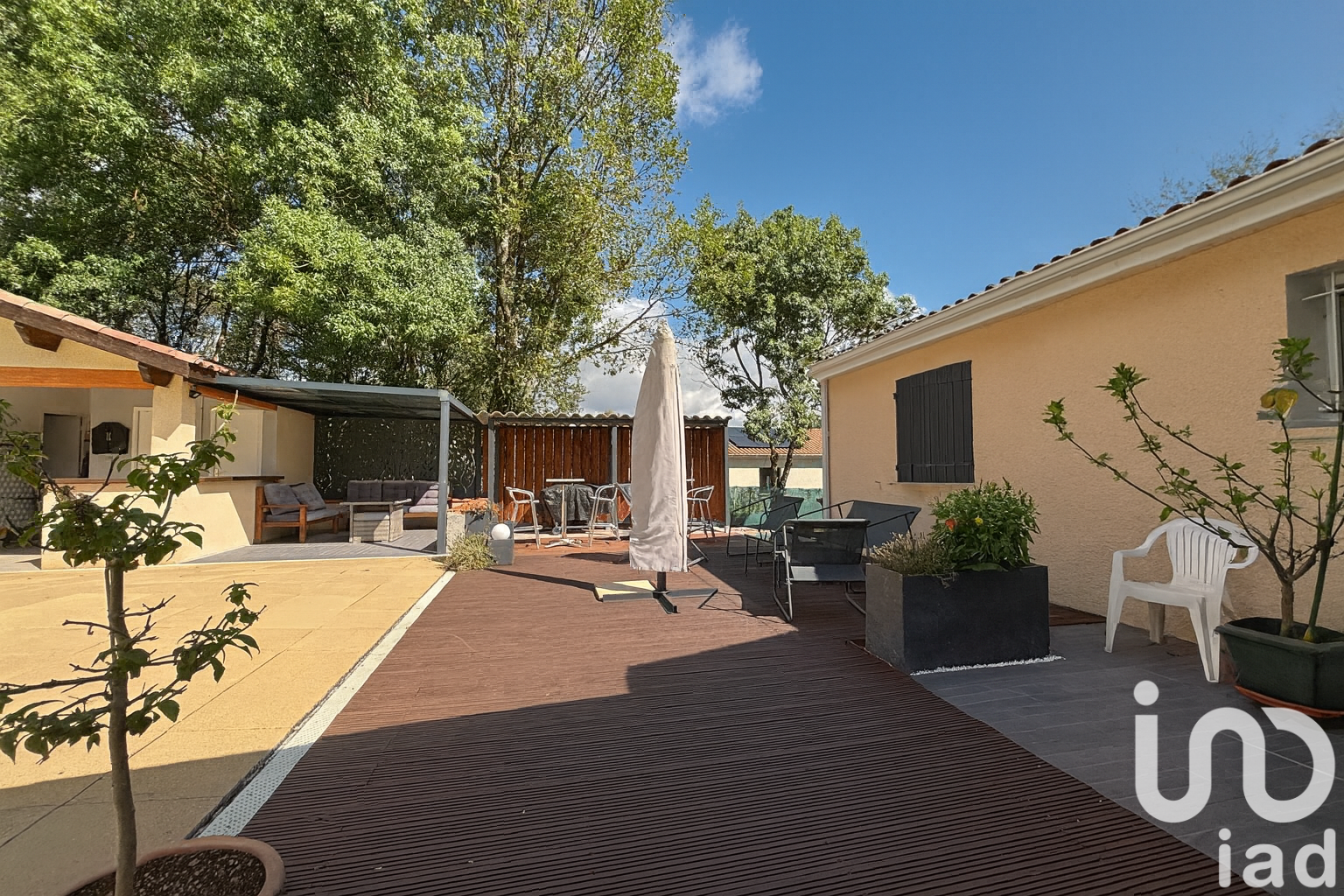 Iad France - Laura Ormeno vous propose : Charmante maison familiale avec jardin et piscine – Lherm Découvrez cette jolie maison de 90 m², idéalement située à seulement 800 m du centre du village de Lherm, dans un environnement calme et recherché. Elle se compose de 3 chambres, d’un espace de vie lumineux ouvert sur l’extérieur, et d’un atelier offrant de belles possibilités d’aménagement selon vos besoins (bricolage, stockage…). À l’extérieur, profitez d’un grand jardin arboré avec piscine, d’une terrasse de 100 m² idéale pour vos repas en plein air, et d’un terrain attenant à l'avant.