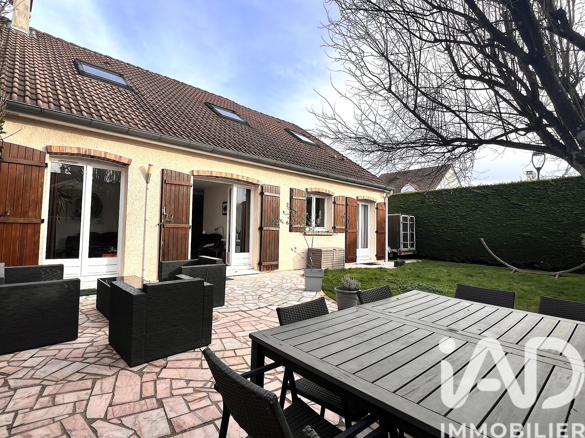 Iad France - Jeanine Martins vous propose : Spacieuse et Lumineuse Maison Familiale au Domaine d'Armainvilliers Découvrez cette maison Bréguet model Saule, offrant une surface habitable au sol de + 155 m² environ, (139 m² carrez), implantée sur un jardin de 350 m² environ exposée Sud-Ouest. Au Rez-de-Chaussée : Une entrée mène à une cuisine dotée d'une magnifique verrière offrant une ouverture sur le séjour spacieux de 40 m² environ avec poêle à bois. Ce dernier s'ouvre sur une terrasse. Trois chambres avec placards dont une suite parentale avec salle de bain privative, une salle d'eau supplémentaire et un wc séparé. Un garage de 16 m² environ complète ce niveau. À l'étage : une Mezzanine de 17 m² environ offre un espace flexible pouvant servir de bureau ou de salon TV. Trois autres chambres, une salle d'eau et un wc séparé. La maison bénéficie d'une allée latérale permettant le stationnement jusqu'à 4 véhicules. Le chauffage au gaz est assuré par une chaudière récente de marque Saunier Duval. La résidence offre l'accès exclusif au courts de tennis privés et boulodromes du Domaine La presente annonce immobiliere vise 1 lot situé dans une copropriété de 600 lots au total et ne faisant l'objet d'aucune procédure en cours citée à l'article L. 721-1 du code de la construction et de l'habitation. Montant moyen mensuel de charges déclaré par le vendeur : 33.33€ par mois (soit 400 € annuel). Honoraires d'agence à la charge du vendeur. Information d'affichage énergétique sur ce bien : classe ENERGIE D indice 220 et classe CLIMAT D indice 30. Les informations sur les risques auxquels ce bien est exposé, y compris l'obligation légale de débroussaillement, sont disponibles sur le site Géorisques : http://www.georisques.gouv.fr. La présente annonce immobilière a été rédigée sous la responsabilité éditoriale de Mme Jeanine Martins mandataire indépendant en immobilier (sans détention de fonds), agent commercial de la SAS I@D France immatriculé au RSAC de Melun sous le numéro 498406255, titulaire de la carte de démarchage immobilier pour le compte de la société I@D France SAS.