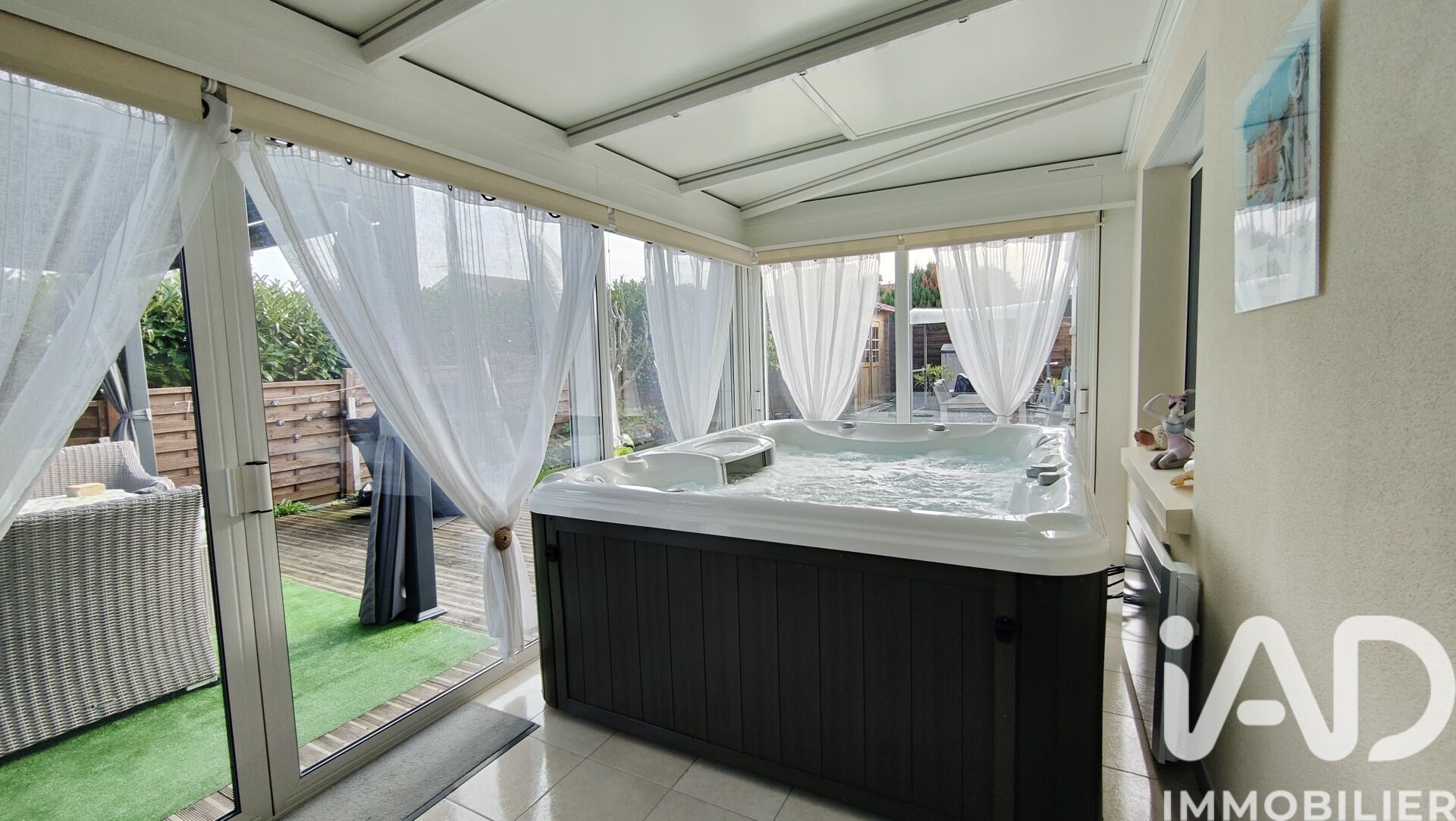 Iad France - Carine Hoyaux vous propose : Maison de 122 m² – Parcelle de 475 m² – Année 2004 Découvrez cette maison soignée et parfaitement entretenue, située au calme d’une impasse et à proximité immédiate des commodités. Elle s’ouvre sur une entrée menant à une cuisine aménagée et équipée, complétée par une arrière-cuisine et une buanderie. Le salon séjour, lumineux et spacieux, bénéficie d’un insert offrant un chauffage agréable. L’espace nuit se compose de deux chambres avec placards, d’une salle d’eau moderne et d’un WC séparé. Une troisième chambre, aujourd’hui aménagée en salon de lecture et bureau, vient compléter ce niveau. La véranda constitue un véritable espace bien-être avec son jacuzzi 6 places, ses volets roulants intégrés, y compris en toiture, et son éclairage tamisé. Le garage, accessible depuis l’arrière-cuisine, dispose d’un portail motorisé et d’un espace de rangement en mezzanine. La maison bénéficie de prestations appréciables telles que les volets roulants, les moustiquaires et le chauffage au sol électrique avec thermostat dans chaque pièce. À l’extérieur, le jardin offre un cabanon ainsi qu’un coffre pour les vélos. À l’arrière, une terrasse en bois avec pergola et une terrasse carrelée équipée d’un store banne permettent de profiter pleinement des beaux jours. L’entrée dispose également d’une terrasse carrelée avec store banne. Le terrain propose deux emplacements de stationnement : l’un devant le garage, l’autre sur le côté de la maison avec accès par un portail, idéal pour accueillir un camping-car ou un bateau. Cette maison combine confort, fonctionnalité et emplacement privilégié. Honoraires d'agence à la charge du vendeur. Information d'affichage énergétique sur ce bien : classe ENERGIE D indice 193 et classe CLIMAT B indice 6. Les informations sur les risques auxquels ce bien est exposé, y compris l'obligation légale de débroussaillement, sont disponibles sur le site Géorisques : http://www.georisques.gouv.fr. La présente annonce immobilière a été rédigée sous la responsabilité éditoriale de Mme Carine Hoyaux mandataire indépendant en immobilier (sans détention de fonds), agent commercial de la SAS I@D France immatriculé au RSAC de ROCHE SUR YON sous le numéro 833617301, titulaire de la carte de démarchage immobilier pour le compte de la société I@D France SAS.