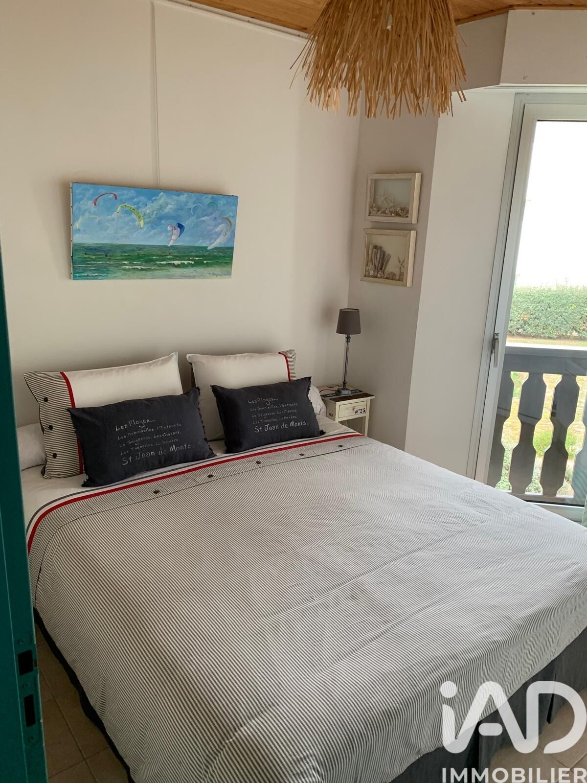 Iad France - Céline Bechet vous propose : Opportunité à saisir - Appartement de 3 pièces vendu meublé avec garage et place de parking à Saint-Jean-de-Monts Vous rêvez d'acquérir un appartement à Saint-Jean-de-Monts, à proximité du célèbre Golf de Saint Jean de Monts et des plages de sable fin ? Situé dans un quartier calme et prisé, cet appartement traversant et lumineux de 66.47 m² offre un espace de vie fonctionnel avec sa pièce de vie avec accès sur la terrasse, ses deux chambres, deux salle d'eau, une cuisine équipée ouverte donnant sur un balcon. L'ensemble de l'appartement est en bon état, vous pourrez ainsi vous installer rapidement et sereinement. De plus, vous disposerez d'un box fermé au sous-sol et d'une place de parking privée, vous garantissant un stationnement facile et sécurisé au quotidien. Chauffage électrique connecté. La localisation est un vrai point fort de cet appartement, vous permettant de profiter des activités de plein air telles que le golf, le centre de thalassothérapie et la plage. Arrêt de bus en bas de la résidence. Vivre à Saint-Jean-de-Monts, c'est profiter d'un cadre de vie exceptionnel alliant tranquillité et proximité avec la nature avec vue mer et vue forêt. Ne manquez pas cette opportunité rare d'acquérir un appartement à Saint-Jean-de-Monts. Contactez moi dès maintenant pour organiser une visite. La presente annonce immobiliere vise 4 lots situés dans une copropriété de 42 lots au total et ne faisant l'objet d'aucune procédure en cours citée à l'article L. 721-1 du code de la construction et de l'habitation. Montant moyen mensuel de charges déclaré par le vendeur : 75€ par mois (soit 900 € annuel). Honoraires d'agence à la charge du vendeur. Information d'affichage énergétique sur ce bien : classe ENERGIE D indice 214 et classe CLIMAT B indice 8. Les informations sur les risques auxquels ce bien est exposé, y compris l'obligation légale de débroussaillement, sont disponibles sur le site Géorisques : http://www.georisques.gouv.fr. La présente annonce immobilière a été rédigée sous la responsabilité éditoriale de Mme Céline Bechet mandataire indépendant en immobilier (sans détention de fonds), agent commercial de la SAS I@D France immatriculé au RSAC de LA-ROCHE-SUR-YON sous le numéro 840041370, titulaire de la carte de démarchage immobilier pour le compte de la société I@D France SAS.