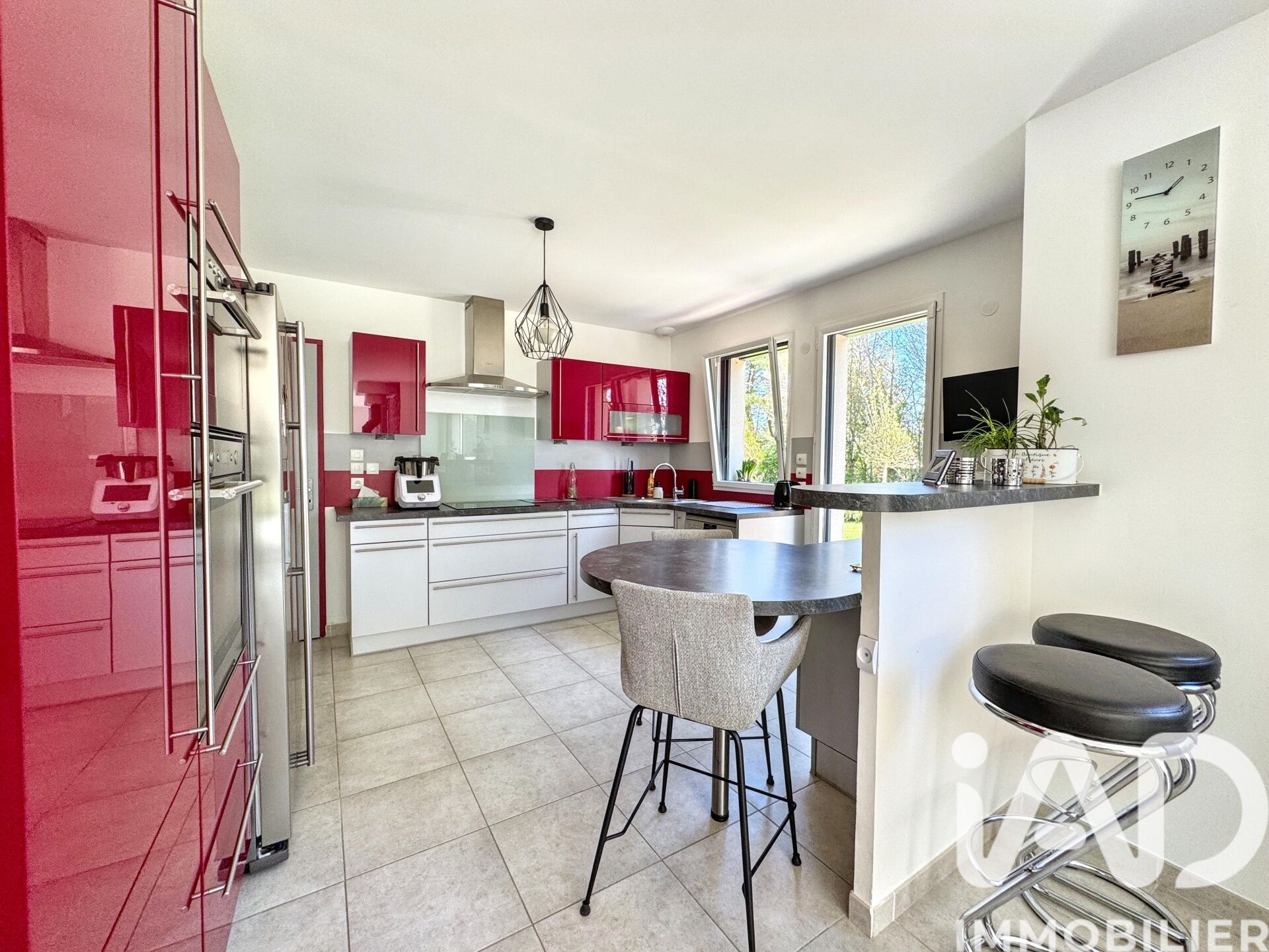 Iad France - Geric Goulet vous propose : Coup de cOEur assuré pour cette superbe maison d’architecte de 2012 Dès les premiers pas, le charme opère avec une élégante entrée cathédrale qui donne le ton. Vous découvrirez un vaste séjour baigné de lumière, chaleureux grâce à son poêle à bois, ouvert sur une cuisine entièrement équipée, idéale pour partager de beaux moments en famille ou entre amis. Le rez-de-chaussée offre un confort de vie appréciable avec deux chambres, une salle d’eau et des WC indépendants et une buanderie / cellier. À l’étage, un grand palier dessert trois belles chambres, une salle de bain et des WC séparés, offrant à chacun son espace. À l’extérieur, laissez-vous séduire par un magnifique jardin arboré, soigneusement entretenu et à l’abri des regards, véritable havre de paix. Un garage double vient compléter ce bien aux prestations soignées. Une maison lumineuse, fonctionnelle et pleine de charme, prête à accueillir votre nouvelle histoire. Les +: -Pompe à chaleur air / eau DPE : B -2 cuves de 3000 litres chacune de récupération d'eau de pluie -Vie de plain-pied possible -Aucun travaux à prévoir Honoraires d'agence à la charge du vendeur. Information d'affichage énergétique sur ce bien : classe ENERGIE B indice 107 et classe CLIMAT A indice 3. Les informations sur les risques auxquels ce bien est exposé, y compris l'obligation légale de débroussaillement, sont disponibles sur le site Géorisques : http://www.georisques.gouv.fr. La présente annonce immobilière a été rédigée sous la responsabilité éditoriale de M Geric Goulet mandataire indépendant en immobilier (sans détention de fonds), agent commercial de la SAS I@D France immatriculé au RSAC de Versailles sous le numéro 947893962, titulaire de la carte de démarchage immobilier pour le compte de la société I@D France SAS.