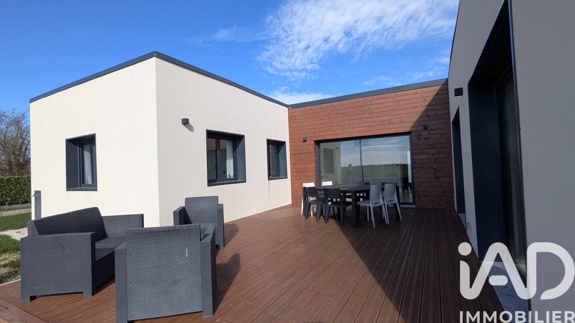 Iad France - Aurélie Martinez vous propose : Coup de cOEur assuré pour cette magnifique maison individuelle et contemporaine de plain-pied, construite en 2021, aux finitions soignées et à l’esprit résolument moderne. Édifiée sur un terrain clos de 1 005 m², cette maison de 148 m², à ossature bois, vous séduira par sa luminosité, ses volumes généreux et son confort de vie. Vous y découvrirez une superbe pièce de vie d’environ 50 m², chaleureuse et baignée de lumière, avec poêle à granulés, ouverte sur une grande cuisine moderne avec îlot central, idéale pour recevoir. L’ensemble donne accès à une belle terrasse de 35 m² sans vis-à-vis, parfaite pour profiter des beaux jours en toute intimité. La maison offre une distribution idéale avec : - Un espace parental indépendant comprenant une grande chambre, un dressing, une salle d’eau avec WC et un accès direct à la terrasse, - Deux belles chambres supplémentaires avec placards, - Une salle de bain avec douche et baignoire, - Un WC indépendant avec lave-mains. Vous profiterez également d’une grande arrière-cuisine / buanderie avec point d’eau, attenante à la cuisine, ainsi que d’un garage de 23 m² avec porte motorisée. Côté équipements, tout a été pensé pour votre confort : volets roulants électriques centralisés, chauffage électrique, poêle à granulés, double vitrage, ballon thermodynamique, VMC double flux, adoucisseur, fibre, visiophone, portail motorisé, récupérateur d’eau, raccordement au tout-à-l’égout. Aucun travaux à prévoir : une maison clé en main, moderne, fonctionnelle et parfaitement entretenue. Un bien rare sur le secteur, à découvrir sans tarder ! Honoraires d'agence à la charge du vendeur. Information d'affichage énergétique sur ce bien : classe ENERGIE B indice 95 et classe CLIMAT A indice 3. Les informations sur les risques auxquels ce bien est exposé, y compris l'obligation légale de débroussaillement, sont disponibles sur le site Géorisques : http://www.georisques.gouv.fr. La présente annonce immobilière a été rédigée sous la responsabilité éditoriale de Mme Aurélie Martinez mandataire indépendant en immobilier (sans détention de fonds), agent commercial de la SAS I@D France immatriculé au RSAC de ORLEANS sous le numéro 838337889, titulaire de la carte de démarchage immobilier pour le compte de la société I@D France SAS.