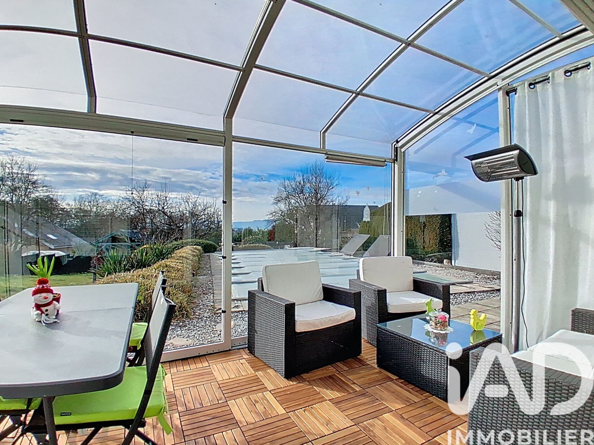 Iad France - Stéphanie Petruzzelli vous propose : Située à Viuz-la-Chiésaz, au pied du Semnoz, cette maison d'environ 124 m² allie confort, espace et charme. Dès l’entrée, un sas avec placards intégrés et WC dessert un grand garage avec buanderie, surmonté d’un grenier offrant de nombreuses possibilités de rangement. Le premier demi-niveau dessert les pièces de vie : cuisine ouverte, salle à manger et salon lumineux, ainsi qu’un bureau pouvant devenir une chambre. Un grand cellier aménagé donne accès à une cave creusée dans la terre. Depuis le séjour, une véranda de 15 m² s’ouvre directement sur l’extérieur, offrant une belle luminosité et un accès agréable au jardin. Le demi-niveau supérieur accueille trois chambres spacieuses avec placards intégrés et une salle d’eau avec douche à l’italienne. À l’extérieur, la piscine de 36 m² avec douche, un abri de jardin et un carport surmonté d’un atelier complètent ce cadre, entouré d’une végétation généreuse. Équipée d’un poêle à bois et d’une pompe géothermique sol-eau, cette maison allie confort moderne et prestations complètes, dans un environnement calme proche des écoles, commerces et accès autoroutiers. Une opportunité rare à Viuz-la-Chiésaz, prête à accueillir ses nouveaux propriétaires. Honoraires d'agence à la charge du vendeur. Information d'affichage énergétique sur ce bien : classe ENERGIE C indice 177 et classe CLIMAT A indice 5. Les informations sur les risques auxquels ce bien est exposé, y compris l'obligation légale de débroussaillement, sont disponibles sur le site Géorisques : http://www.georisques.gouv.fr. La présente annonce immobilière a été rédigée sous la responsabilité éditoriale de Mme Stéphanie Petruzzelli mandataire indépendant en immobilier (sans détention de fonds), agent commercial de la SAS I@D France immatriculé au RSAC de ANNECY sous le numéro 945326262, titulaire de la carte de démarchage immobilier pour le compte de la société I@D France SAS.