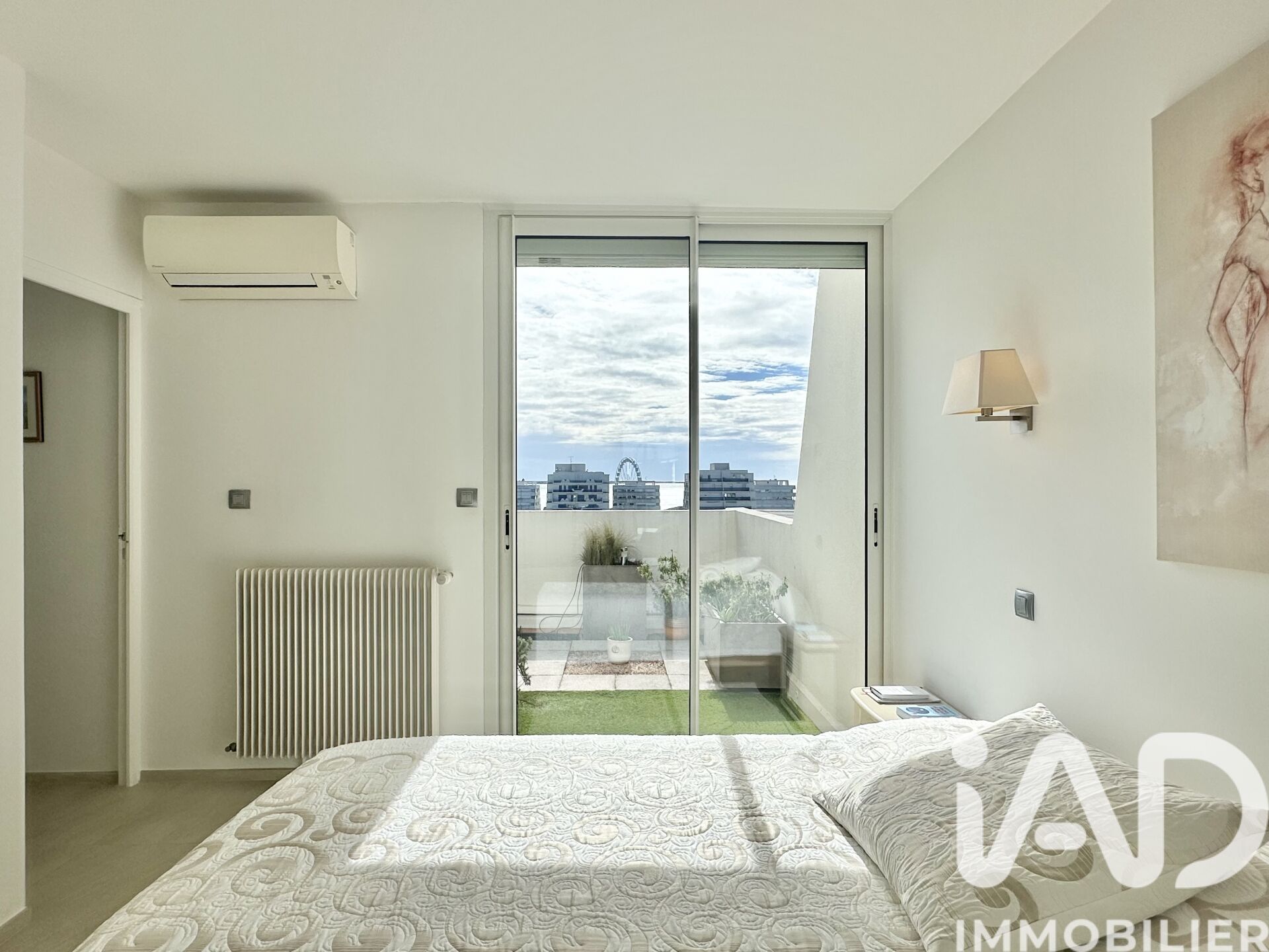 Iad France - Anne Hediard vous propose : Penthouse d’exception au sommet d’une pyramide emblématique de La Grande-Motte Produit rare sur le marché, ce duplex d’angle au 8ᵉ et dernier étage développe 113 m² habitables, prolongés par plus de 90 m² de patios et terrasses orientés Est, Sud et Ouest, véritables espaces de vie à ciel ouvert. Depuis ces extérieurs, la vue est spectaculaire et dominante : elle embrasse le centre-ville de La Grande-Motte, la mer et l’horizon jusqu’à Sète, les remparts d’Aigues-Mortes, et l’arrière-pays dominé par le Pic Saint-Loup. Par temps clair, le regard porte même jusqu’aux reliefs du Massif du Canigou. Situé en centre-ville, ce penthouse rénové avec soin et doté de belles prestations, combine vie urbaine et intimité d’un dernier étage. Les commerces sont au pied de l’immeuble et la plage se trouve à moins de dix minutes à pied. Deux places de stationnement complètent ce bien rare. Pour plus d’informations ou organiser une visite, contactez-moi. Chers confrères, je pratique l'inter-agence avec plaisir. La presente annonce immobiliere vise 5 lots situés dans une copropriété de 159 lots au total et ne faisant l'objet d'aucune procédure en cours citée à l'article L. 721-1 du code de la construction et de l'habitation. Montant moyen mensuel de charges déclaré par le vendeur : 482.67€ par mois (soit 5792 € annuel). Honoraires d'agence à la charge du vendeur. Information d'affichage énergétique sur ce bien : classe ENERGIE D indice 212 et classe CLIMAT D indice 31. Les informations sur les risques auxquels ce bien est exposé, y compris l'obligation légale de débroussaillement, sont disponibles sur le site Géorisques : http://www.georisques.gouv.fr. La présente annonce immobilière a été rédigée sous la responsabilité éditoriale de Mme Anne Hediard mandataire indépendant en immobilier (sans détention de fonds), agent commercial de la SAS I@D France immatriculé au RSAC de MONTPELLIER sous le numéro 948348966, titulaire de la carte de démarchage immobilier pour le compte de la société I@D France SAS.