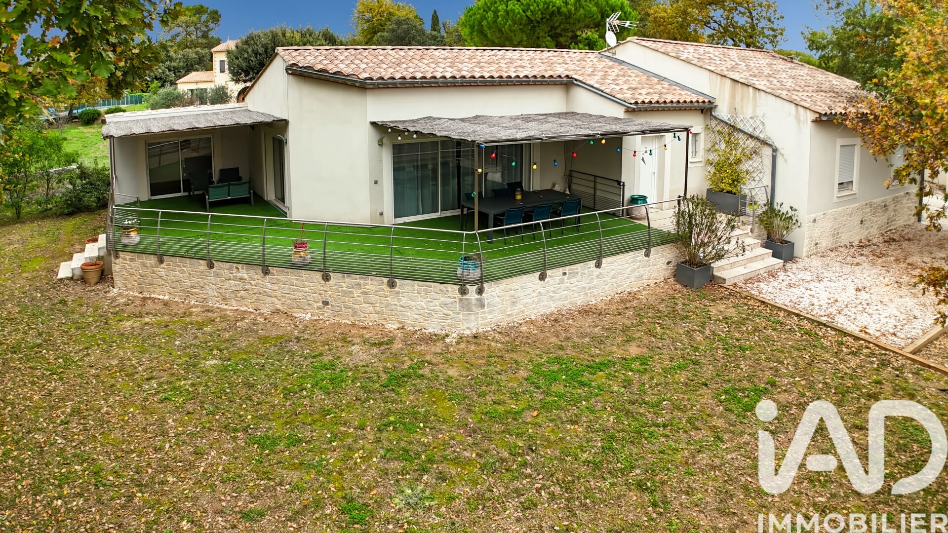 Iad France - Mickaël Arjona vous propose : Découvrez cette superbe villa contemporaine de plain-pied offrant 142 m² de confort. Sa pièce de vie lumineuse de 60 m² ouverte sur une grande terrasse crée un espace convivial idéal pour la famille. Elle propose quatre chambres, une salle de bain moderne avec balnéo, douche à l’italienne et deux WC, ainsi qu’une buanderie. Édifiée sur un terrain plat et arboré de plus de 1 500 m², entièrement constructible et piscinable, la propriété bénéficie d’un environnement calme et verdoyant. Le chauffage au sol, l’arrosage automatique, le garage, le portail automatique et l’allée privée complètent cet ensemble. Proche des écoles, des commodités et d’Uzès, cette maison récente est habitable sans travaux et offre un cadre de vie rare et recherché. Honoraires d'agence à la charge du vendeur. Information d'affichage énergétique sur ce bien : classe ENERGIE A indice 38 et classe CLIMAT A indice 1. Les informations sur les risques auxquels ce bien est exposé, y compris l'obligation légale de débroussaillement, sont disponibles sur le site Géorisques : http://www.georisques.gouv.fr. La présente annonce immobilière a été rédigée sous la responsabilité éditoriale de M Mickaël Arjona mandataire indépendant en immobilier (sans détention de fonds), agent commercial de la SAS I@D France immatriculé au RSAC de NIMES sous le numéro 948238878, titulaire de la carte de démarchage immobilier pour le compte de la société I@D France SAS.