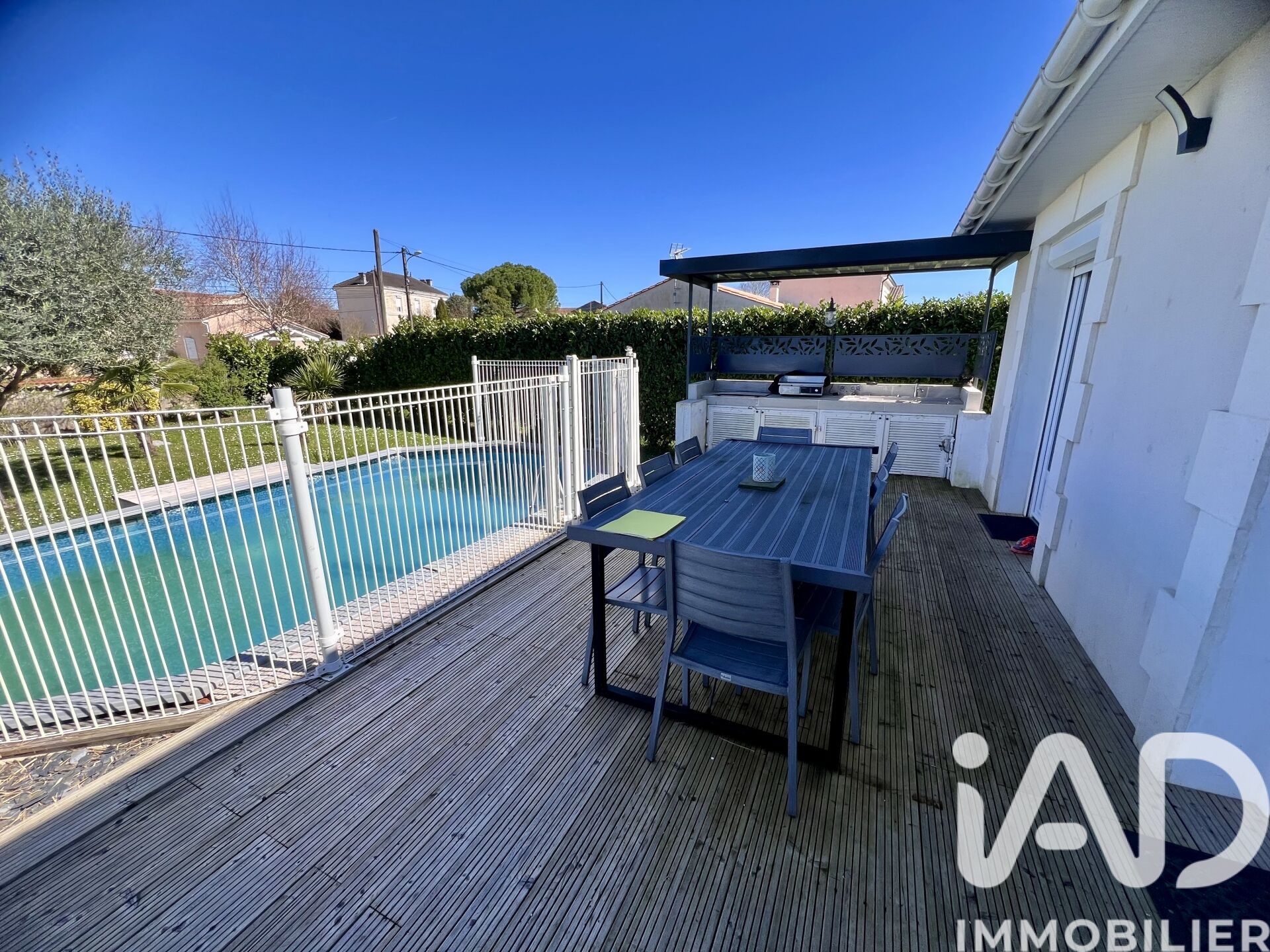 Iad France - Karine Rogeon vous propose : Opportunité à ne pas manquer ! Charmante Maison idéalement placée à Fléac. Je vous présente cette maison individuelle, entièrement rénovée, située dans un quartier paisible de Fléac. Sa surface habitable de 120 m² offre un espace de vie confortable et lumineux, idéal pour une famille à la recherche de tranquillité et de convivialité. Elle se compose d'une entrée, une cuisine aménagée et équipée, un séjour lumineux donnant sur une belle terrasse, une piscine hors sol, sécurisée, ainsi qu'un coin cuisine d'été. Vous trouverez également 4 chambres lumineuses avec placard. Au sous sol, un dressing, une chambre, un garage et un espace buanderie. L'extérieur de la maison est tout aussi charmant, sur une belle parcelle de 1112 m² entièrement clôturée et arborée. - Pompe à chaleur - Panneaux solaires - Tout à l'égout Venez découvrir votre futur coup de cOEur et ne manquez pas cette occasion unique d'acquérir une propriété de qualité à Fléac, contactez moi dès maintenant pour organiser une visite et laissez-vous séduire par le charme de cette maison ! Honoraires d'agence à la charge du vendeur. Information d'affichage énergétique sur ce bien : classe ENERGIE C indice 179 et classe CLIMAT B indice 7. Les informations sur les risques auxquels ce bien est exposé, y compris l'obligation légale de débroussaillement, sont disponibles sur le site Géorisques : http://www.georisques.gouv.fr. La présente annonce immobilière a été rédigée sous la responsabilité éditoriale de Mme Karine Rogeon mandataire indépendant en immobilier (sans détention de fonds), agent commercial de la SAS I@D France immatriculé au RSAC de ANGOULEME sous le numéro 919722322, titulaire de la carte de démarchage immobilier pour le compte de la société I@D France SAS.