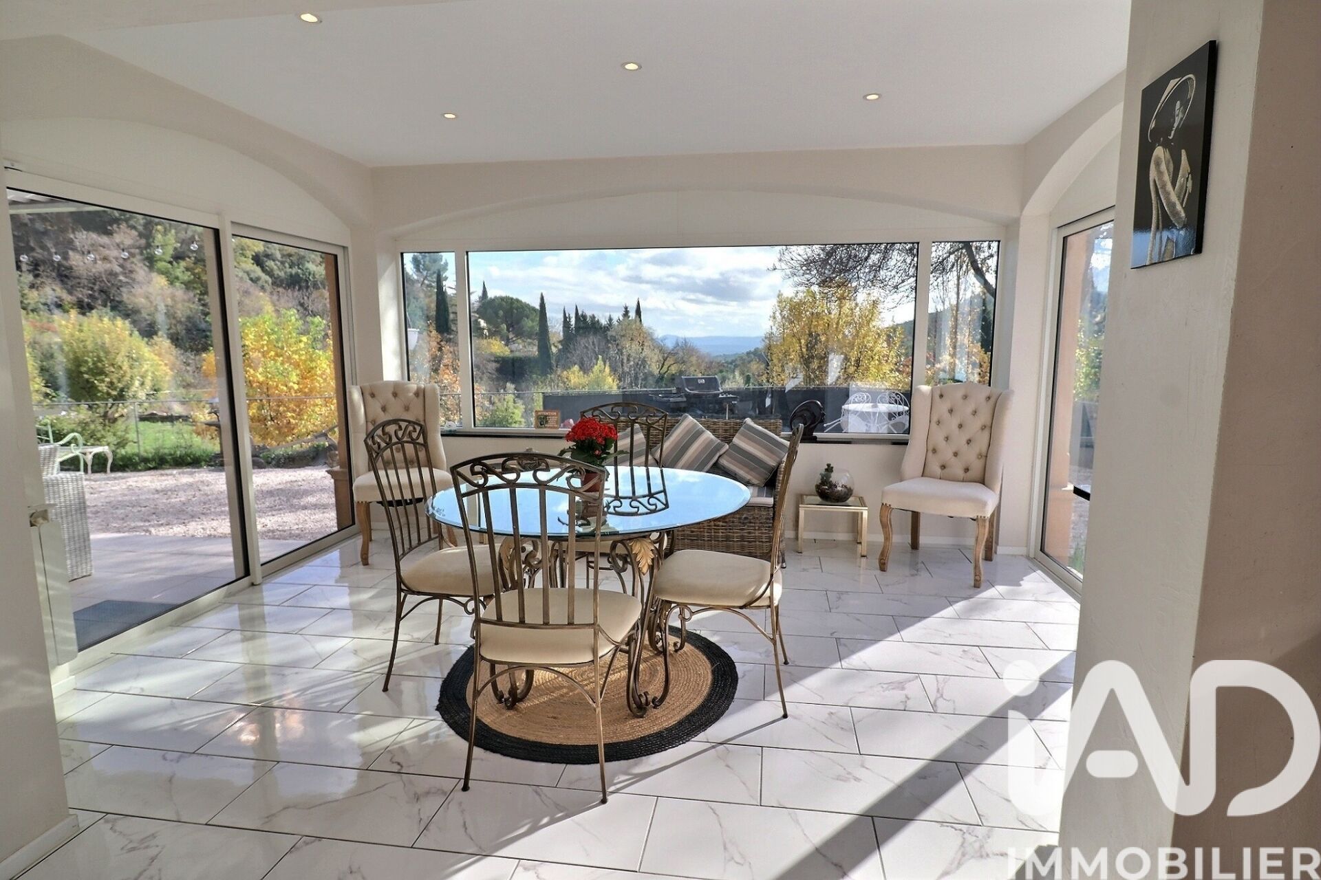Iad France - Herve Durif vous propose : Au cOEur d’un environnement naturel rare, à seulement quelques minutes à pied du village de Cotignac, cette villa de standing offre un cadre de vie exceptionnel mêlant tranquillité absolue, nature préservée et vues dégagées sur la cascade et les collines. Implantée sur un terrain arboré d’environ 6 700 m², alimenté par une source naturelle, et un bassin d’eau douce, la propriété séduit par son atmosphère paisible et son charme unique. La maison, d’environ 187 m², a été pensée pour offrir de larges volumes et une luminosité remarquable. Le séjour de près de 70 m², ouvert au Sud-Est, profite de grandes baies vitrées à galandage permettant une continuité naturelle entre l’intérieur et les terrasses. La cuisine, spacieuse, très lumineuse et tournée vers l’Ouest, offre un espace repas convivial et profite elle aussi de vues dégagées sur le jardin et la nature environnante. La partie nuit comprend trois chambres confortables, dont deux suites disposant chacune de leur salle d’eau. Une salle de bain avec baignoire et douche complète cet espace. Un bureau à l’entrée, peut aisément être utilisé comme quatrième chambre selon les besoins. Les extérieurs prolongent l’expérience de vie et invitent à profiter pleinement de la douceur provençale. La grande terrasse est ombragée par une pergola bioclimatique, créant un espace idéal pour les repas en plein air ou les soirées d’été. La piscine à débordement, parfaitement intégrée dans le paysage, bénéficie d’une vue inspirante sur les collines et la cascade, et s’accompagne d’un pool house et d’une cuisine d’été pour des moments de détente privilégiés. Le terrain, soigneusement planté d’essences méditerranéennes et irrigué par la source naturelle, constitue un véritable écrin de verdure. La présence du bassin et de la cascade renforce la singularité du lieu et crée une ambiance unique rarement proposée. Un garage de 25 m², transformable en suite supplémentaire selon les besoins, complète l’ensemble. Idéalement située, bénéficiant d’un environnement incomparable, lumineuse, généreuse et tournée vers la nature, cette villa représente une opportunité rare à Cotignac pour une clientèle recherchant un bien d’exception. Honoraires d'agence à la charge du vendeur. Information d'affichage énergétique sur ce bien : classe ENERGIE C indice 125 et classe CLIMAT A indice 3. Les informations sur les risques auxquels ce bien est exposé, y compris l'obligation légale de débroussaillement, sont disponibles sur le site Géorisques : http://www.georisques.gouv.fr. La présente annonce immobilière a été rédigée sous la responsabilité éditoriale de M Herve Durif mandataire indépendant en immobilier (sans détention de fonds), agent commercial de la SAS I@D France immatriculé au RSAC de DRAGUIGNAN sous le numéro 825239981, titulaire de la carte de démarchage immobilier pour le compte de la société I@D France SAS.