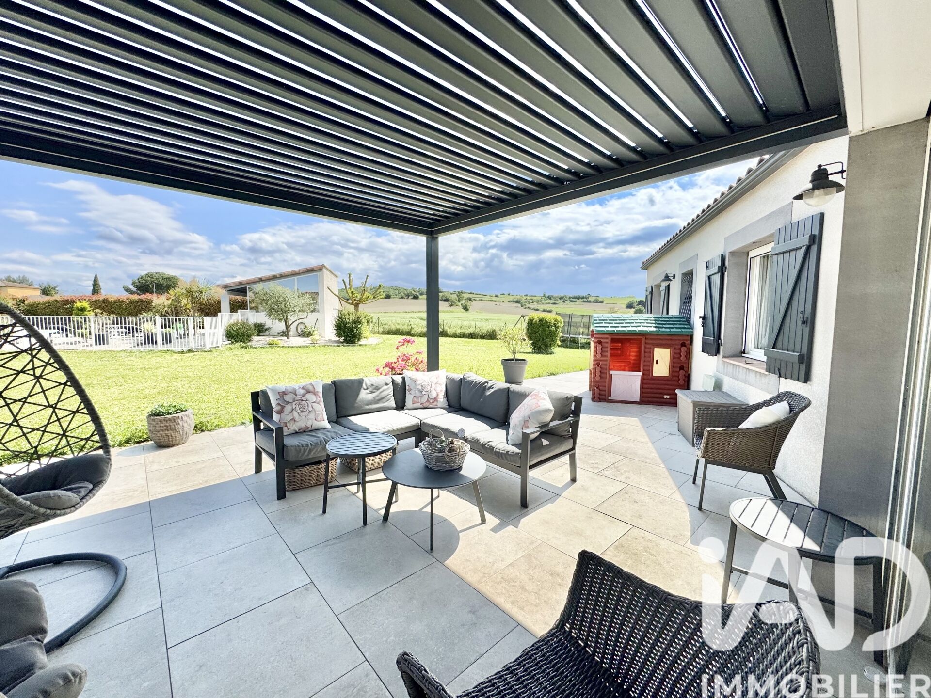 Iad France - Johanna Sierakowski vous propose : VILLENEUVE-LES-MONTRÉAL - VILLA DE PLAIN-PIED DE 206 m² environ- TERRAIN CLOS CONSTRUCTIBLE ET ARBORÉ DE 2000 m² environ - JARDIN PAYSAGER - PERGOLA BIOCLIMATIQUE - PORTAIL MOTORISÉ - PISCINE AU SEL ENTIÈREMENT SÉCURISÉE - POOL HOUSE AVEC BARBECUE - ARROSAGE AUTOMATIQUE INTÉGRÉ - DOUBLE SÉJOUR LUMINEUX DE 73 m² - CELLIER / BUANDERIE - 6 CHAMBRES DONT UNE SUITE PARENTALE - 3 SALLES D'EAU - 2 WC INDÉPENDANTS - MULTIPLES SYSTÈMES DE CHAUFFAGE- POÊLE À BOIS - CLIMATISATION RÉVERSIBLE - ABRIS BOIS - ATELIER - VUE DÉGAGÉE SUR LA NATURE ENVIRONNANTE - AU COEUR D'UN VILLAGE CALME. À 45 minutes de TOULOUSE, à 15 minutes de CARCASSONNE et son aéroport, à 5 minutes de l'accès autoroutier de BRAM, et seulement 2 minutes de MONTRÉAL et ses commerces. À 1h des plages du littoral et des stations de ski. Construite en 2009, cette élégante villa de plain-pied d’environ 206 m² propose des prestations de qualité et de beaux volumes. Elle s’ouvre sur un hall d’entrée avec placards, un WC indépendant, ainsi qu’un cellier / buanderie. L’espace de vie, traversant et baigné de lumière, offre une superficie généreuse de 73 m² et se compose d’un salon, d’une salle à manger et d’une cuisine ouverte entièrement équipée. L’espace nuit dessert six chambres avec rangements intégrés, dont une suite parentale disposant de sa propre salle d’eau. Deux salles de douche supplémentaires ainsi qu’un second WC indépendant viennent compléter l’ensemble. La villa est nichée au cOEur d’un jardin paysager, clos, arboré (olivier, cerisier, abricotier, lilas, phénix. ) et constructible d’environ 2000 m², en lisière de champs, offrant une vue imprenable sur la nature environnante. Le terrain est équipé d’un système d’arrosage intégré, facilitant l’entretien des espaces verts. Elle dispose d’une piscine au sel, entièrement sécurisée, accompagnée d’un pool house aménagé pour vos moments de détente. Un abri de jardin, un atelier ainsi qu’un vaste espace de stationnement pouvant accueillir plusieurs véhicules et / ou un camping-car viennent compléter ce bien d’exception. L’isolation des plafonds en plaques de plâtre, associée à un comble fortement ventilé avec isolation intérieure, garantit une excellente performance thermique. Les menuiseries en PVC double vitrage, combinées à des volets en bois et des volets roulants électriques, renforcent le confort, l'efficacité énergétique et la sécurité de la maison. Toutes les pièces d’eau sont équipées d’un système de ventilation mécanique contrôlée (VMC), assurant une aération optimale. Un poêle à bois, couplé à un système de climatisation réversible, permet de chauffer à moindre coût en hiver et de maintenir une température agréable en été, même lors des fortes chaleurs propres à la région. Foncier : 2230 euros. LES + : - Plain-pied - Jardin clos, constructible et arboré de 2000 m² environ - Multiple systèmes de chauffage (poêle à bois / climatisation réversible et électrique) - Exposition Sud - Piscine au sel, entièrement sécurisée - Très bonne isolation - Entièrement équipée de PVC double vitrage - 6 Chambres dont une suite parentale - Cellier / buanderie - Grand parking pouvant accueillir plusieurs voitures et camping-cars - Arrosage automatique intégré - Abri bois - Atelier - Fosse septique vidée avant la vente - Portail d'entrée électrique - Fibre - Absolument aucun travaux à prévoir - Matériaux de qualité - Village calme à seulement 3 minutes de toutes commodités COUP DE COEUR ASSURÉ RÉSERVEZ VOTRE VISITE SANS TARDER Honoraires d'agence à la charge du vendeur. Information d'affichage énergétique sur ce bien : classe ENERGIE B indice 103 et classe CLIMAT A indice 3. Les informations sur les risques auxquels ce bien est exposé, y compris l'obligation légale de débroussaillement, sont disponibles sur le site Géorisques : http://www.georisques.gouv.fr. La présente annonce immobilière a été rédigée sous la responsabilité éditoriale de Mme Johanna Sierakowski mandataire indépendant en immobilier (sans détention de fonds), agent commercial de la SAS I@D France immatriculé au RSAC de CARCASSONNE sous le numéro 902981646, titulaire de la carte de démarchage immobilier pour le compte de la société I@D France SAS.