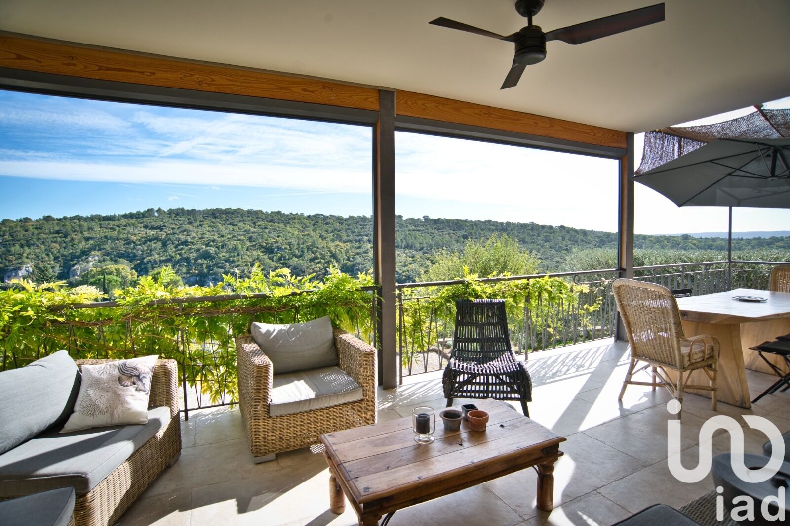 Iad France - Loïc Huguet vous propose : Situation rarissime à Uzès : à moins de cinq minutes à pied de l’hypercentre, cette propriété bénéficie d’un emplacement plus que privilégié, alliant intimité absolue, nature préservée et proximité immédiate de la vie uzétienne. En position dominante, elle offre une vue à 180° sur la vallée de l’Eure, véritable panorama vivant où le calme et la lumière règnent en maîtres. Édifiée sur un terrain constructible de 2 300 m², magnifiquement paysagé, la propriété s’entoure d’un jardin méditerranéen planté d’une vingtaine d’oliviers, d’un espace verger-potager, d’une serre et de plusieurs terrasses ombragées.