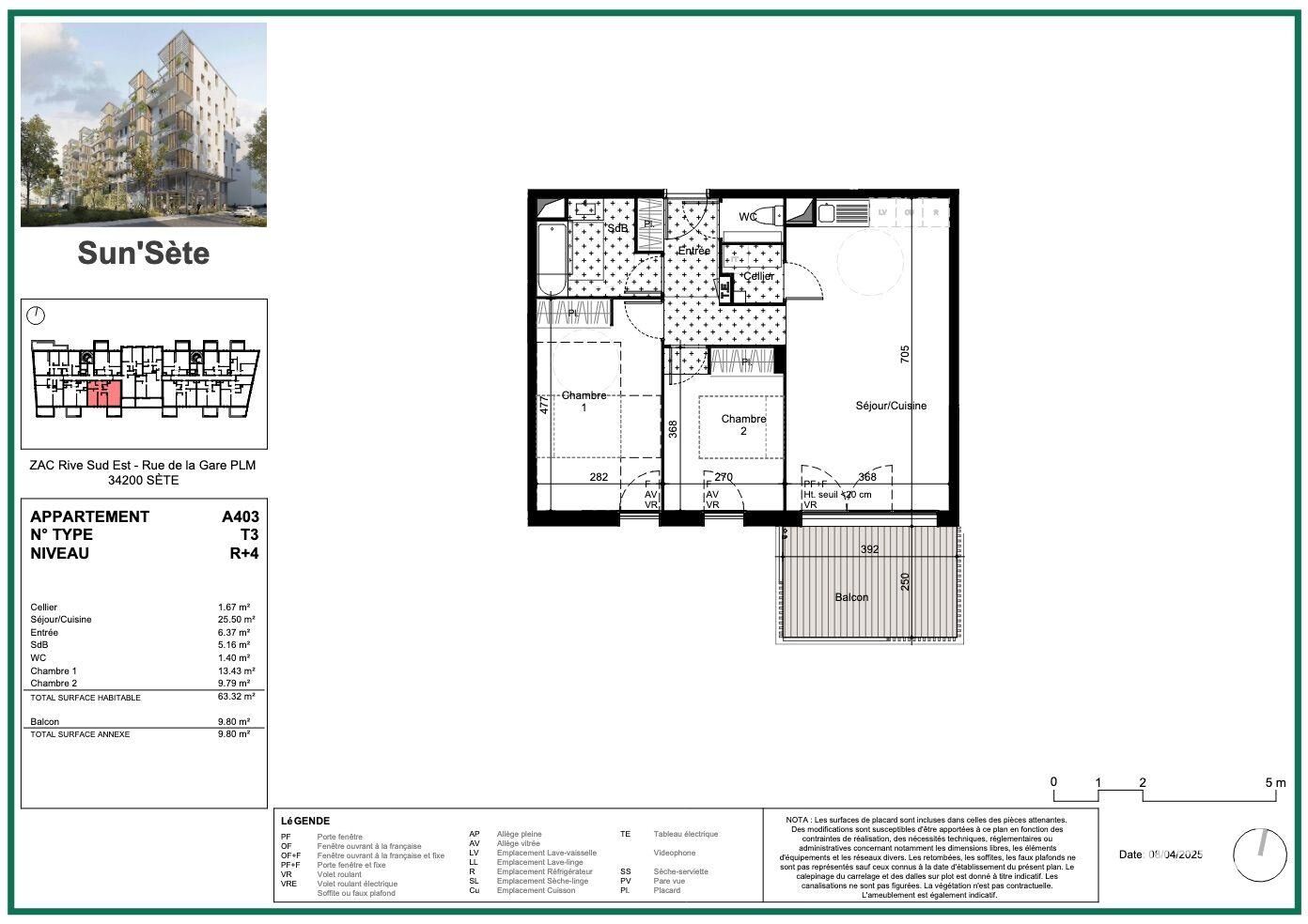 Iad France - Marc Franc (07 80 36 67 20) vous propose : === FRAIS NOTAIRE OFFERTS jusqu'au 31 mars 2026 === OPPORTUNITÉ - T3 - Résidence 'SUN'SETE' à SETE, entre terre et mer, le charme méditerranéen. Résidence « SUN-SETE», au coeur du nouveau quartier de la Rive Sud du canal de la Peyrade, logements répartis sur deux bâtiments, répond aux enjeux des énergies renouvelables. - pièces de 64 m² environ, R + 4, . orientation Sud,. 2 chambres,. balcon 10 m² environ,. parking couvert,. frais de notaire estimés à 6800 euros en moyenne. Vous l'avez rêvé, ne manquez pas de concrétiser votre projet, profitez de cette opportunité à SETE où se conjuguent douceur et art de vivre. La résidence 'SUN-SETE', logements à l’accession libre, lumineux et confortables, associant praticité, esthétisme et bien-être, où tout est pensé pour que vous puissiez jouir de nombreux avantages. - de 2 à 4 pièces, . 43 à 93 m² environ,. de 158.400, 00 à 483.000, 00 euros, prix public TTC, . balcon,. parking. Règlementation Environnementale RE 2020, NF Habitat HQE. Livraison prévisionnelle 4eme T 2027. Contactez-moi pour en savoir plus et réserver ! Honoraires d’agence à la charge du vendeur. Bien non soumis au DPE. Les informations sur les risques auxquels ce bien est exposé sont disponibles sur le site Géorisques : www.georisques.gouv.fr. La présente annonce immobilière a été rédigée sous la responsabilité éditoriale de M. Marc Franc EI (ID 83540), mandataire indépendant en immobilier (sans détention de fonds), agent commercial de la SAS I@D France immatriculé au RSAC de VANNES sous le numéro 931732952, titulaire de la carte de démarchage immobilier pour le compte de la société I@D France SAS. Retrouvez tous nos biens sur notre site internet. www.iadfrance.fr.