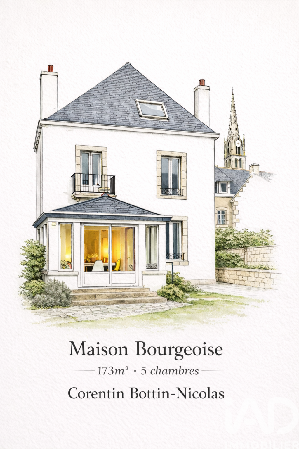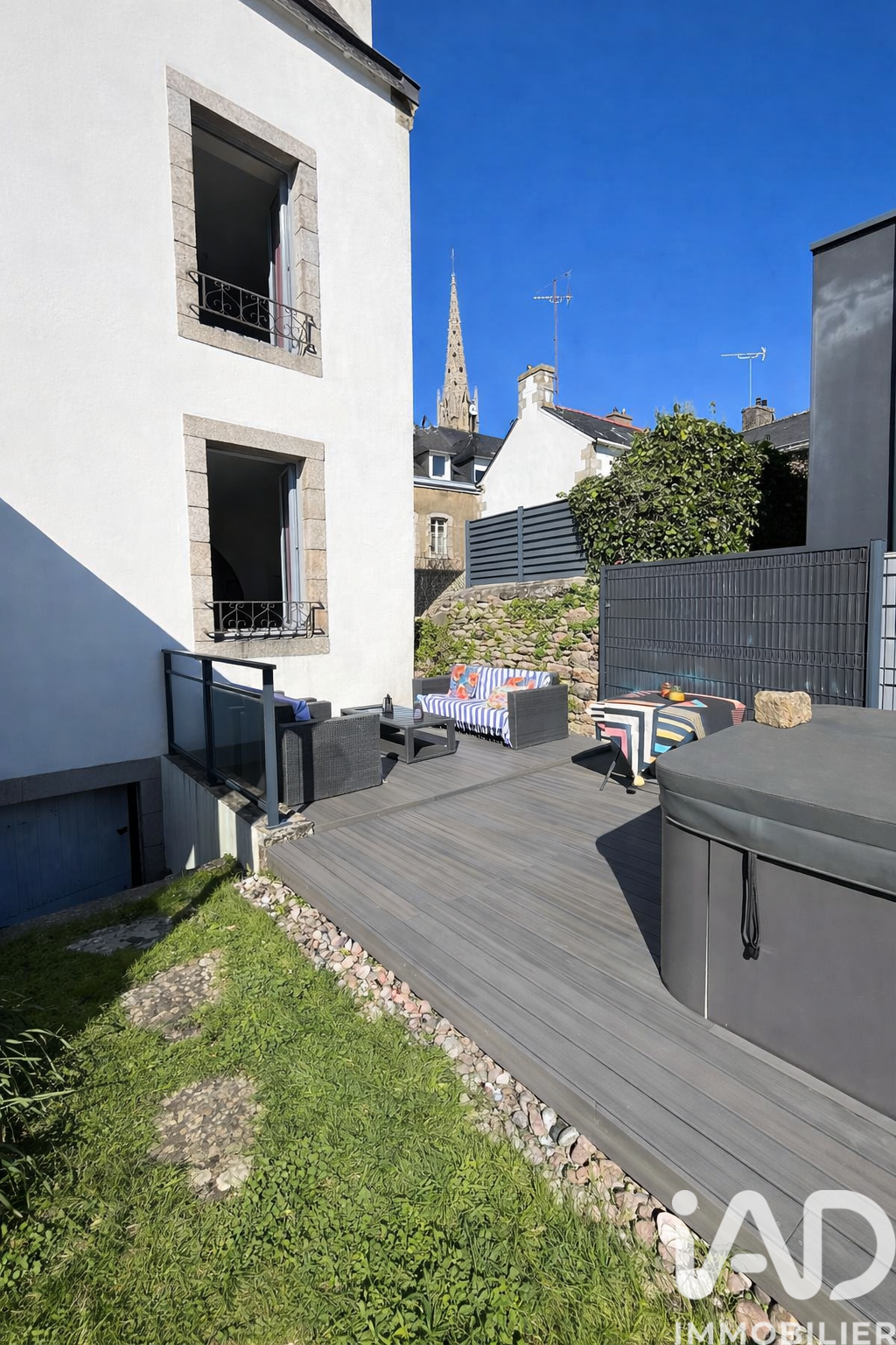 Iad France - Corentin Bottin-Nicolas vous propose : Maison bourgeoise - 5 chambres - Jardin exposé sud Vidéo du bien sur demande Située au coeur du centre-bourg de Trégunc, à distance piétonne des commerces et à 6 minutes en voiture des plages les plus proches comme le Pouldohan, cette maison bourgeoise développe 173 m² habitables répartis sur trois niveaux. Implantée sur une parcelle de 485 m², elle dispose d'un jardin clos exposé plein sud et d'une véranda chauffée prolongeant les espaces de vie. Distribution Le rez-de-chaussée comprend une entrée indépendante, un WC, ainsi qu'un séjour traversant de 27 m² organisé en salon salle à manger, reliés par une arche intérieure. La cuisine aménagée et équipée s'ouvre sur la véranda orientée sud et le jardin. Le premier étage accueille deux chambres, un bureau et une salle d'eau avec WC. Le second étage propose trois chambres supplémentaires ainsi qu'une seconde salle d'eau avec WC, permettant une organisation adaptée à une vie familiale. Combles et cave en sous-sol complètent l'ensemble. Eléments patrimoniaux Parquets massifs, moulures, rosaces, cheminées décoratives, escalier en bois d'origine et hauteurs sous plafond participent à la qualité architecturale du bien. Extérieurs Jardin clos exposé plein sud. Terrasse avec spa. Carport (2 stationnements). Données techniques Chaudière gaz à condensation entretenue annuellement. Radiateurs électriques en complément au second niveau. Menuiseries double vitrage. Propriété patrimoniale de centre-bourg habitable immédiatement offrant des volumes adaptés à une vie familiale, dans un environnement vivant et à proximité immédiate du littoral. Honoraires d'agence à la charge du vendeur. Information d'affichage énergétique sur ce bien : classe ENERGIE E indice 281 et classe CLIMAT D indice 6916. Les informations sur les risques auxquels ce bien est exposé, y compris l'obligation légale de débroussaillement, sont disponibles sur le site Géorisques : http://www.georisques.gouv.fr. La présente annonce immobilière a été rédigée sous la responsabilité éditoriale de M Corentin Bottin-Nicolas mandataire indépendant en immobilier (sans détention de fonds), agent commercial de la SAS I@D France immatriculé au RSAC de QUIMPER sous le numéro 991902248, titulaire de la carte de démarchage immobilier pour le compte de la société I@D France SAS.