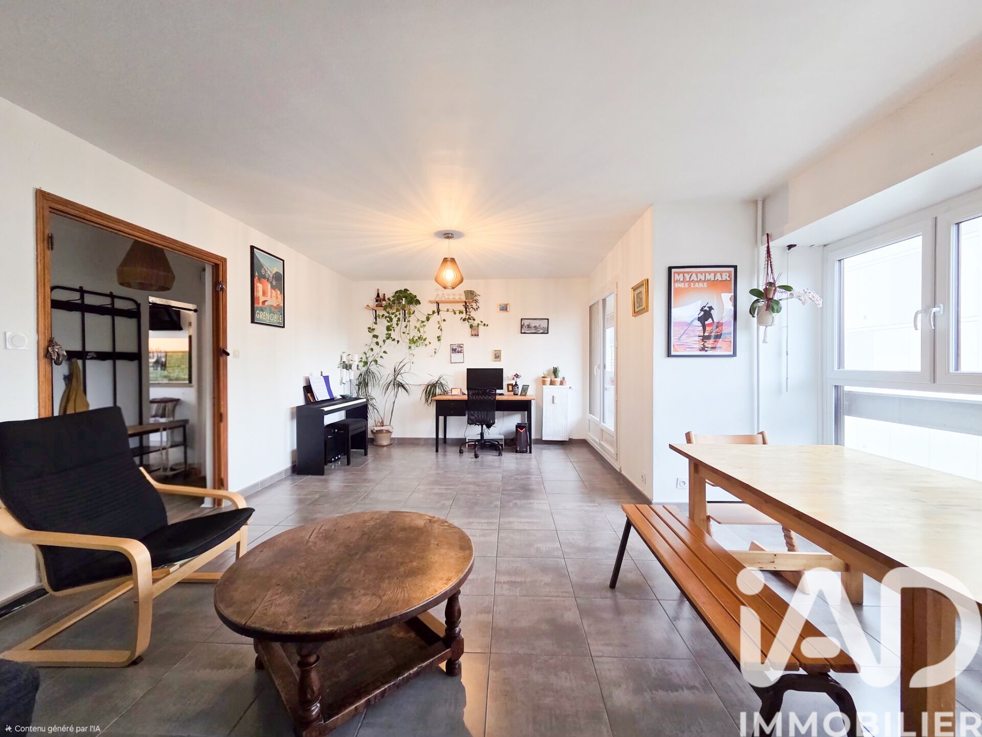 Iad France - Jessica Sanfilippo vous propose : GRENOBLE / APPARTEMENT LUMINEUX DE 90 m² / ASCENCEUR / PRÊT A VIVRE / 3 CHAMBRES - POSSIBILITE DE CRÉER UNE QUATRIÈME CHAMBRE / BALCON / CAVE Situé place Louis Jouvet à Grenoble, cet appartement est à proximité immédiate des commodités, des transports et des axes principaux. Dès l’entrée, un couloir dessert l’ensemble des pièces et offre une circulation fluide et fonctionnelle. L'appartement bénéfice d'une lumière traversante. Sur la droite, vous découvrirez un grand salon-séjour lumineux, d’une surface d’environ 28 m², ouvrant sur un balcon, idéal pour profiter de l’extérieur. Dans la continuité, toujours sur la droite, se trouvent deux chambres avec accès au balcon. Au bout du couloir, une première salle d’eau vient compléter cet espace nuit. Sur la gauche, l’appartement propose une troisième chambre, une salle de bain, ainsi qu’une cuisine indépendante. Un cellier attenant à la cuisine apporte un véritable confort de rangement au quotidien. Informations complémentaires : - Chauffage urbain avec répartiteurs - Cave - Charges : 230 € / mois (incluant chauffage, eau chaude et eau froide) - Taxe foncière : 2 370 € - Gardien au sein de la copropriété / Bien entretenue - 2017 : Réfection étanchéité et isolation terrasse Appartement disponible à partir de cet été. Un appartement spacieux, fonctionnel et clé en main, idéal pour une famille ou un projet de résidence principale confortable en cOEur de Grenoble. Pour plus de renseignements ou organiser une visite, contactez-moi. La presente annonce immobiliere vise 2 lots situés dans une copropriété de 125 lots au total et ne faisant l'objet d'aucune procédure en cours citée à l'article L. 721-1 du code de la construction et de l'habitation. Montant moyen mensuel de charges déclaré par le vendeur : 230€ par mois (soit 2760 € annuel). Honoraires d'agence à la charge du vendeur. Information d'affichage énergétique sur ce bien : classe ENERGIE C indice 175 et classe CLIMAT C indice 12. Les informations sur les risques auxquels ce bien est exposé, y compris l'obligation légale de débroussaillement, sont disponibles sur le site Géorisques : http://www.georisques.gouv.fr. La présente annonce immobilière a été rédigée sous la responsabilité éditoriale de Mme Jessica Sanfilippo mandataire indépendant en immobilier (sans détention de fonds), agent commercial de la SAS I@D France immatriculé au RSAC de GRENOBLE sous le numéro 883992745, titulaire de la carte de démarchage immobilier pour le compte de la société I@D France SAS.