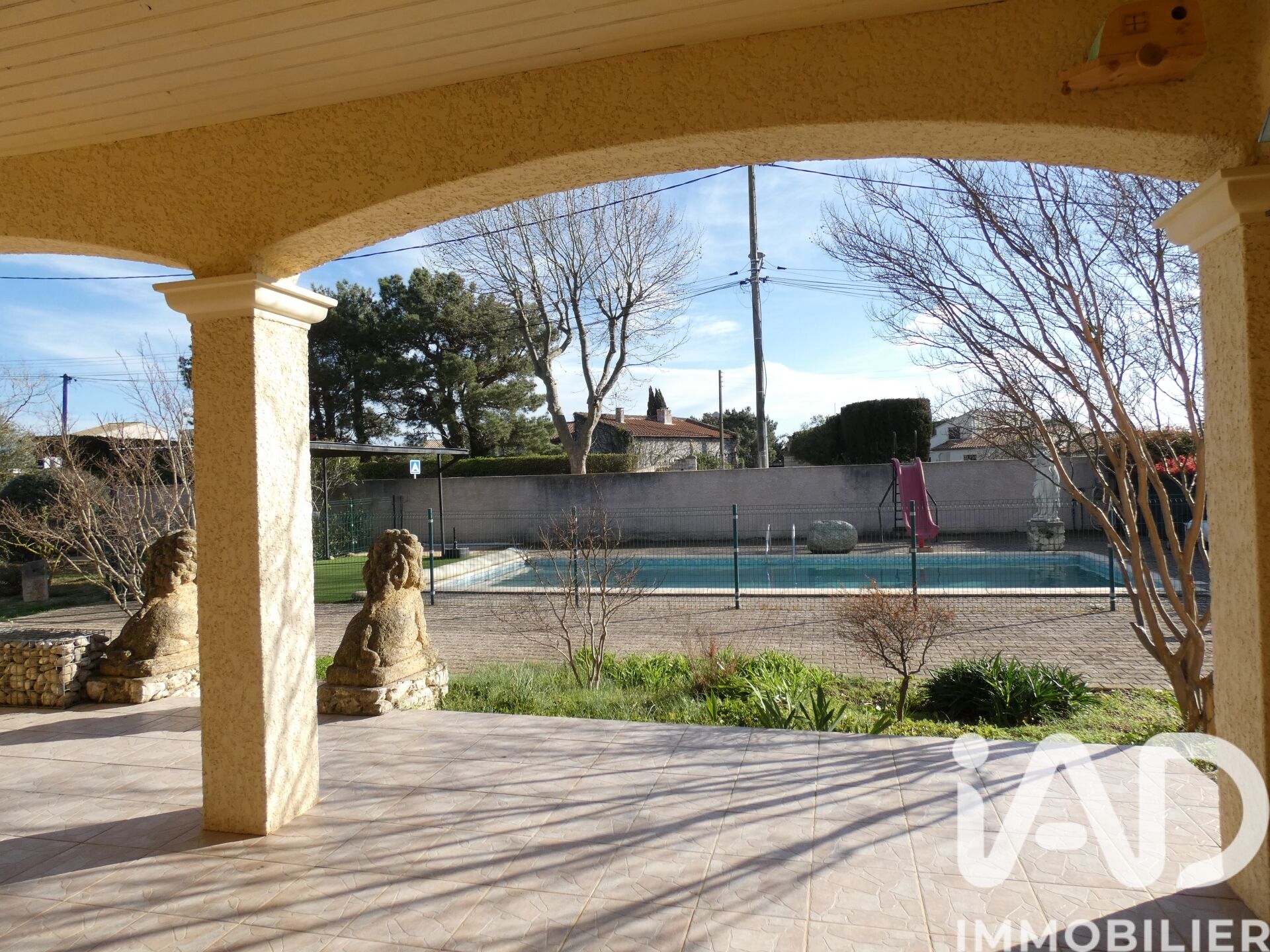 Iad France - Hervé Sénégas vous propose : MAISON DE PLAIN PIED 3 CHAMBRES JARDIN 1500 m² PISCINE BUANDERIE ATELIER GARAGE Charmante Maison de 108 m² 3 Chambres avec Jardin et Piscine à Saint-Nazaire-d'Aude. Construite en l'an 2000 et en excellent état général, cette maison de 108 m² sur un terrain de 1500 m² est un véritable havre de paix. L' ajout d'une construction accolée de 82 m² comprend un atelier et un garage ouvert qui peut être transformée en habitation indépendante ou permettre de développer de nombreux projets. La pièce à vivre de 54 m² ouverte sur la piscine et orientée au sud donne une atmosphère chaleureuse à la maison qui est équipée d'une climatisation gainable réversible et d'un poêle à bois. De nombreux éléments tel que les volets roulants, le portail électrique, un visiophone, la fibre, apportent un confort de vie non négligeable. * Détail des surfaces : * - séjour : 29.73 m² - coin repas : 11.67 m² - coin cuisine : 13.35 m² - chambres : 12.21 / 13 / 14 m² - buanderie : 24 m² - atelier : 32 m² - garage ouvert : 50 m² - abris de jardin : 18 m² - Piscine 10x4 Honoraires d'agence à la charge du vendeur. Information d'affichage énergétique sur ce bien : classe ENERGIE C indice 127 et classe CLIMAT A indice 3. Les informations sur les risques auxquels ce bien est exposé, y compris l'obligation légale de débroussaillement, sont disponibles sur le site Géorisques : http://www.georisques.gouv.fr. La présente annonce immobilière a été rédigée sous la responsabilité éditoriale de M Hervé Sénégas mandataire indépendant en immobilier (sans détention de fonds), agent commercial de la SAS I@D France immatriculé au RSAC de Narbonne sous le numéro 322226440, titulaire de la carte de démarchage immobilier pour le compte de la société I@D France SAS.