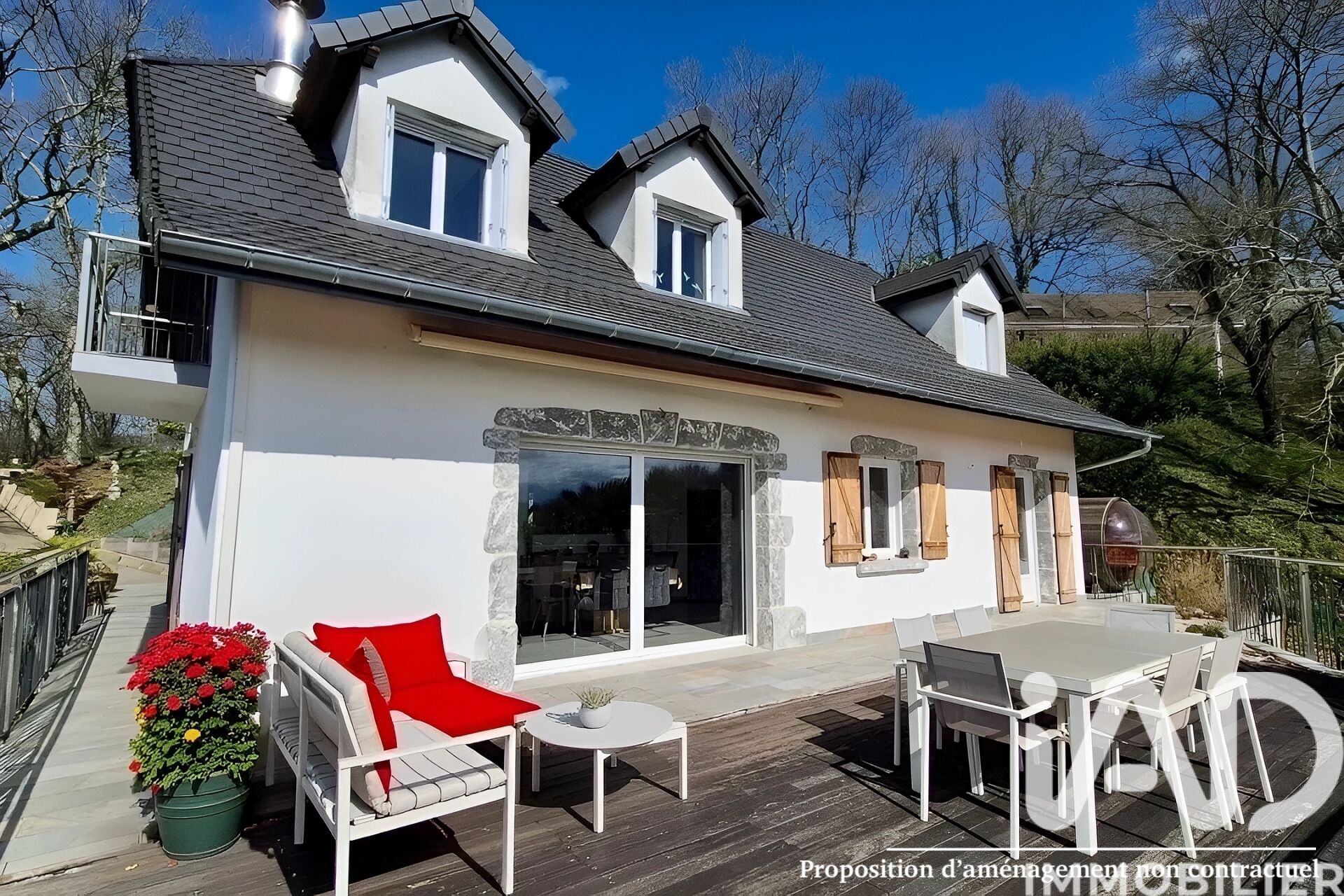 Iad France - Vanessa VIOT vous propose : Pau Sud à 10 min du centre ville, dans un environnement naturel rare et totalement préservé, cet ensemble immobilier s’étend sur plus de 6 000 m² de terrain en grande partie boisé, offrant une position dominante avec une vue somptueuse sur la nature et les Pyrénées, dans un calme absolu, à seulement quelques minutes de la ville. La propriété se compose de deux maisons indépendantes à usage d’habitation, pensées pour offrir confort, volumes et qualité de vie. La maison principale, d’environ 135 m² sur deux niveaux, séduit par ses espaces lumineux ouverts sur le panorama : une entrée accueillante, un salon-séjour baigné de lumière, une cuisine aménagée et équipée avec cellier, ainsi qu’une chambre de plain-pied avec salle d’eau et WC séparé. À l’étage, trois chambres et une salle de bain structurent un espace nuit harmonieux. Un sous-sol d’environ 70 m² complète l’ensemble, tandis qu’un sauna extérieur invite à la détente au cOEur de la nature. La seconde maison, d’environ 100 m², bénéficie elle aussi d’une vue dominante et d’une belle distribution des volumes : vaste salon-séjour ouvrant sur une terrasse surplombant l’environnement, cuisine, cellier et WC au rez-de-chaussée. À l’étage, deux grandes chambres, une salle d’eau et un palier offre un espace confortable et fonctionnel. Un bien atypique, harmonieux et plein de potentiel, alliant volumes, indépendance et cadre de vie exceptionnel, rare aux portes de Pau. Honoraires d'agence à la charge du vendeur. Information d'affichage énergétique sur ce bien : classe ENERGIE D indice 229 et classe CLIMAT B indice 7. Les informations sur les risques auxquels ce bien est exposé, y compris l'obligation légale de débroussaillement, sont disponibles sur le site Géorisques : http://www.georisques.gouv.fr. La présente annonce immobilière a été rédigée sous la responsabilité éditoriale de Mme Vanessa VIOT mandataire indépendant en immobilier (sans détention de fonds), agent commercial de la SAS I@D France immatriculé au RSAC de PAU sous le numéro 823218375, titulaire de la carte de démarchage immobilier pour le compte de la société I@D France SAS.