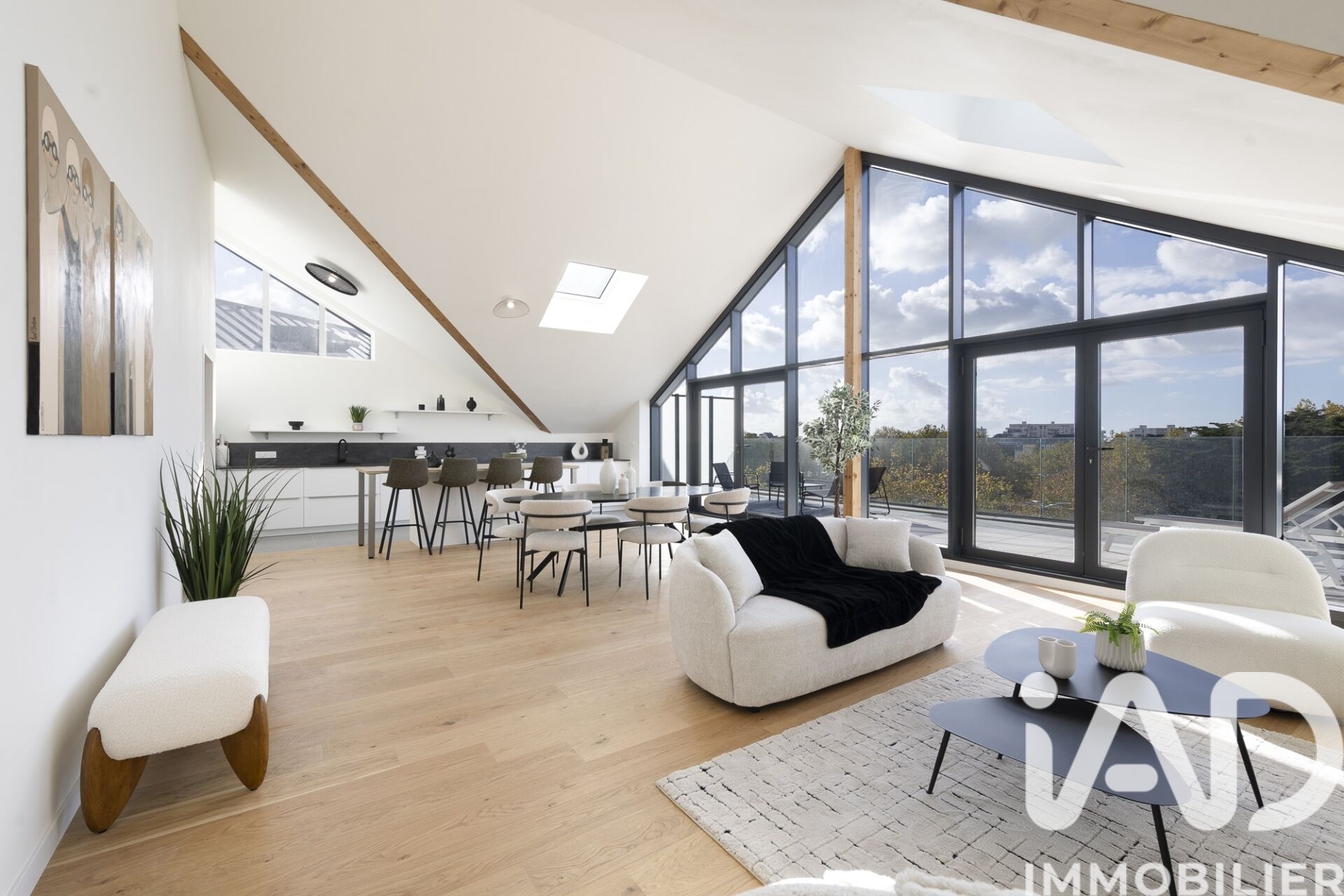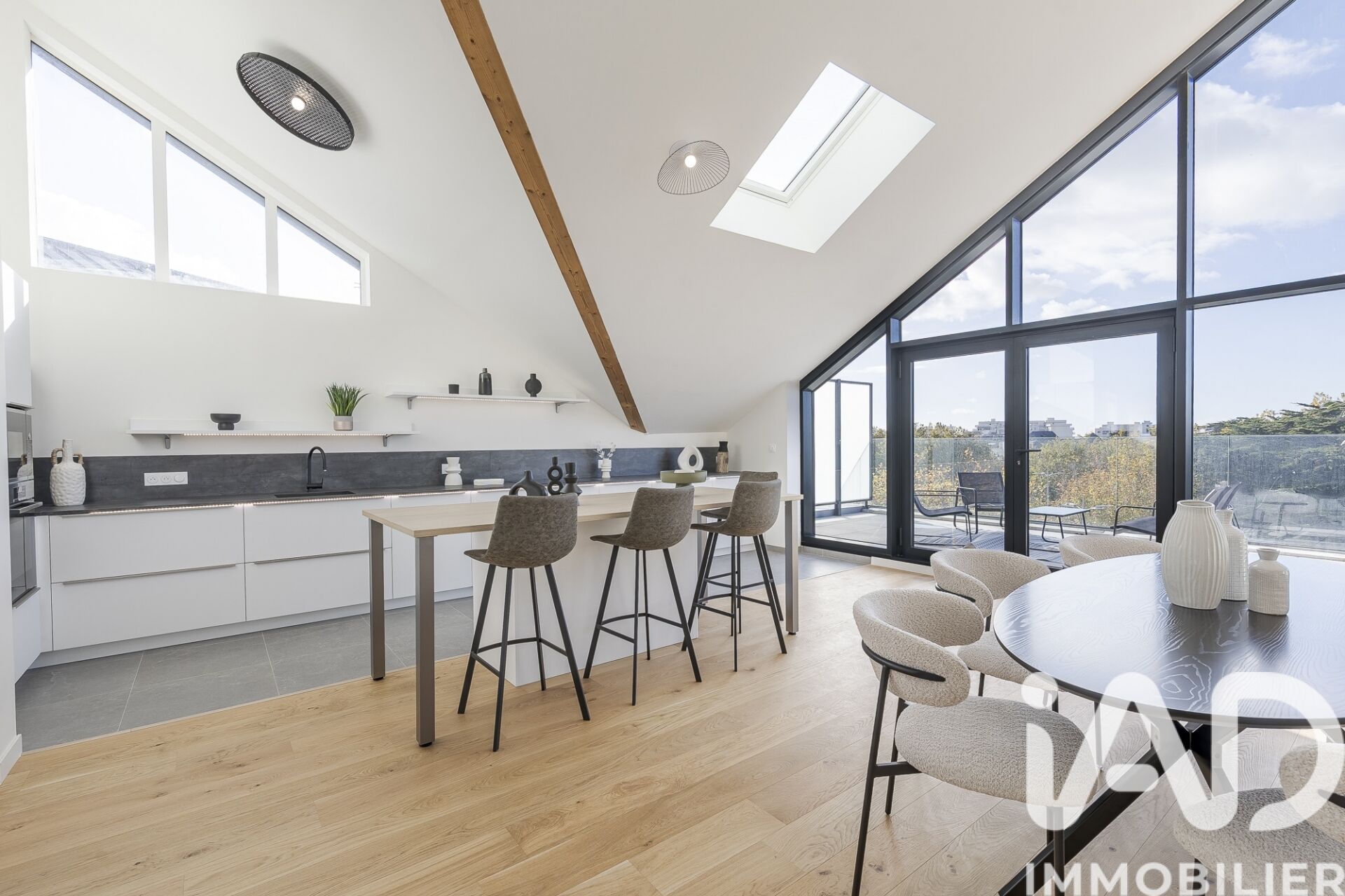 Iad France - Lambert Rouxel vous propose : APPARTEMENT D'EXCEPTION A PORNICHET AVEC 2 TERRASSES, DOUBLE GARAGE, CAVE, LOCAL VELO et PARKING PRIVATIF EXTERIEUR. VUE SUR L' HIPPODROME DE PORNICHET et à 200 mètres du marché. Rare sur le marché, découvrez ce superbe appartement de type 5 de 211 m² au sol (141 m² loi carrez), situé dans une résidence de standing, à 2 pas du marché, de la plage et des commerces de Pornichet face à l' hippodrome. Avec ses 141 m² de surface habitable, cet appartement offre des prestations haut de gamme et un confort absolu pour ses résidents. Dès l'entrée, vous serez séduit par l'agencement optimal de cet appartement. Vous trouverez une cuisine moderne aménagée et équipée (BOSCH), une salle à manger spacieuse, un salon lumineux d' environ 65 m² avec accès à la première terrasse de 30 m² exposée Ouest. Trois chambres élégantes avec rangements et accès sur terrasse dont une avec salle d'eau et wc privé. Une salle de bain avec douche à l' italienne, baignoire, double vasque et rangements, un WC indépendant, cette partie nuit offrent un espace de vie fonctionnel et agréable pour toute la famille et un accès à la 2ème terrasse couverte d' environ 20 m² exposée Est et vue sur l' hippodrome. La mezzanine, idéale pour du rangement ou la création d' un espace nuit et détente d' appoint avec fenêtre vue sur l' hippodrome, complète parfaitement ce bien d'exception. Deux terrasses sans vis-à-vis, orientées est et ouest, vous permettront de profiter du soleil à toute heure de la journée. L'appartement est vendu avec un double garage porte automatisée ou se trouve un espace cave / local vélo et une place de stationnement extérieur avec possibilité d' installer une recharge véhicule électrique, un atout non négligeable dans ce quartier prisé de Pornichet. La résidence, construite en 2024, offre des prestations modernes et de qualité, avec un ascenseur, un interphone, visiophone et un accès sécurisé, volets et velux à commandes électriques. Situé à proximité des plages, du marché, des écoles, des commerces, du cinéma, de l' hippodrome et des transports en commun, cet appartement bénéficie d'une localisation idéale pour une vie quotidienne agréable et pratique. Cette offre rare alliant confort, modernité et tranquillité est une opportunité à ne pas manquer. Contactez-nous dès aujourd'hui pour visiter ce bijou immobilier à Pornichet. La presente annonce immobiliere vise 4 lots situés dans une copropriété de 15 lots au total et ne faisant l'objet d'aucune procédure en cours citée à l'article L. 721-1 du code de la construction et de l'habitation. Montant moyen mensuel de charges déclaré par le vendeur : 257.15€ par mois (soit 3085.8 € annuel). Honoraires d'agence à la charge du vendeur. Information d'affichage énergétique sur ce bien : classe ENERGIE B indice 106 et classe CLIMAT A indice 3. Les informations sur les risques auxquels ce bien est exposé, y compris l'obligation légale de débroussaillement, sont disponibles sur le site Géorisques : http://www.georisques.gouv.fr. La présente annonce immobilière a été rédigée sous la responsabilité éditoriale de M Lambert Rouxel mandataire indépendant en immobilier (sans détention de fonds), agent commercial de la SAS I@D France immatriculé au RSAC de SAINT NAZAIRE sous le numéro 949967525, titulaire de la carte de démarchage immobilier pour le compte de la société I@D France SAS.