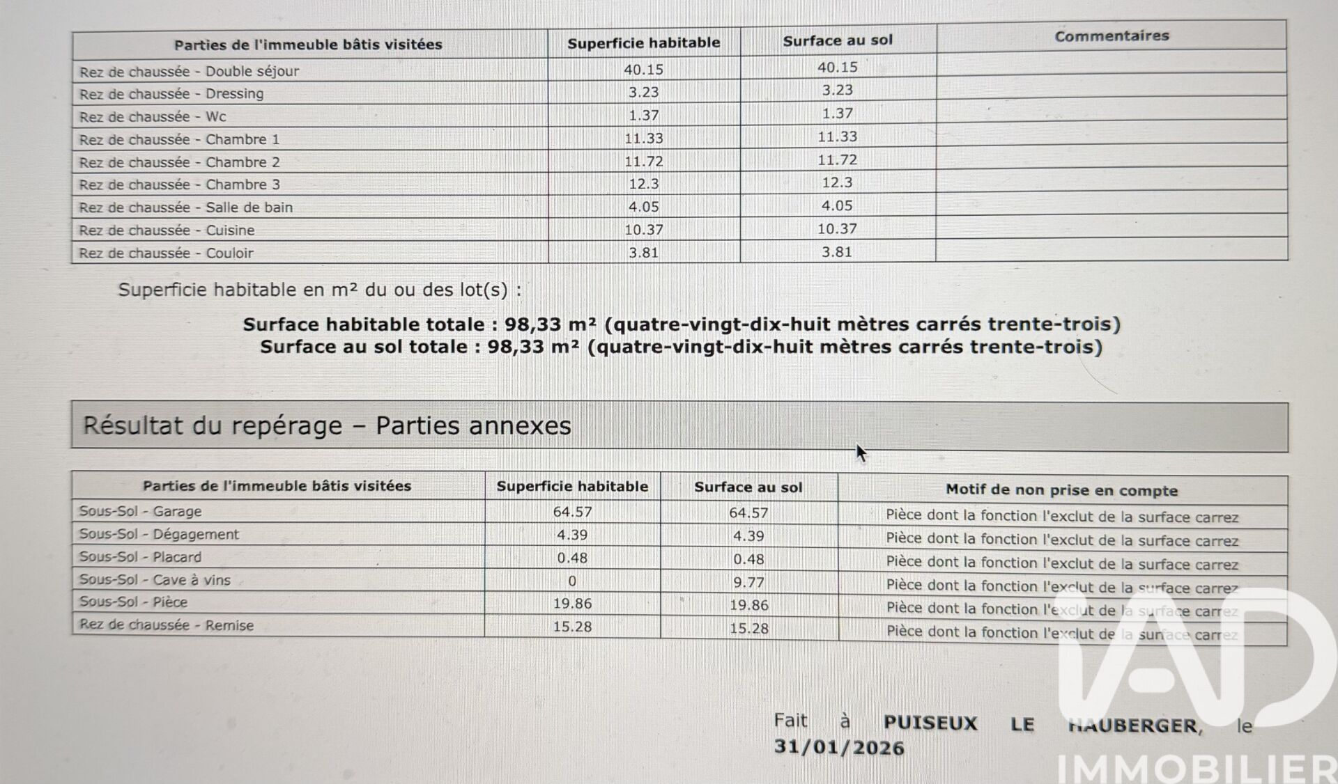 Iad France - Michael Gravinese vous propose : Cette belle maison de plain-pied de 100 m² offre des volumes exceptionnels et un potentiel rare, le tout sur un magnifique terrain de 673 m² sans aucun vis-à-vis. La maison se compose d’un grand séjour lumineux avec cuisine ouverte et aménagée, ouvrant sur une spacieuse terrasse d’été, idéale pour profiter des beaux jours. Vous trouverez également une salle à manger, un dressing, trois chambres, une salle de bain ainsi que des toilettes séparées. Le sous-sol total, d’une superficie équivalente à celle de la maison (environ 100 m²), entierement aménageable. Il comprend déjà une très grande chambre de 20 m², une pièce buanderie, et offre encore de nombreuses possibilités : espace de vie supplémentaire, salle de jeux, bureau, atelier ou logement indépendant. Les combles, avec plus de 60 m² en loi Carrez, représentent un potentiel d’agrandissement considérable. À l’extérieur, vous bénéficierez d’une dépendance de 18 m² et d’un très bel espace extérieur offrant un véritable havre de paix, accompagné d’une terrasse pavée, idéale pour vivre de merveilleux moments en famille ou entre amis. Les possibilités d’aménagement et les superficies sont immenses, faisant de cette maison un bien rare sur le secteur. À noter également : contrairement aux autres maisons de la rue, il ne s’agit pas d’une maison Phénix, un véritable atout en termes de qualité de construction et de durabilité dans le temps. N’attendez plus : contactez-moi dès maintenant pour organiser une visite et découvrir cette maison qui ne manquera pas de vous émerveiller. Honoraires d'agence à la charge du vendeur. Information d'affichage énergétique sur ce bien : classe ENERGIE E indice 297 et classe CLIMAT C indice 11. Les informations sur les risques auxquels ce bien est exposé, y compris l'obligation légale de débroussaillement, sont disponibles sur le site Géorisques : http://www.georisques.gouv.fr. La présente annonce immobilière a été rédigée sous la responsabilité éditoriale de M Michael Gravinese mandataire indépendant en immobilier (sans détention de fonds), agent commercial de la SAS I@D France immatriculé au RSAC de PONTOISE sous le numéro 918566282, titulaire de la carte de démarchage immobilier pour le compte de la société I@D France SAS.
