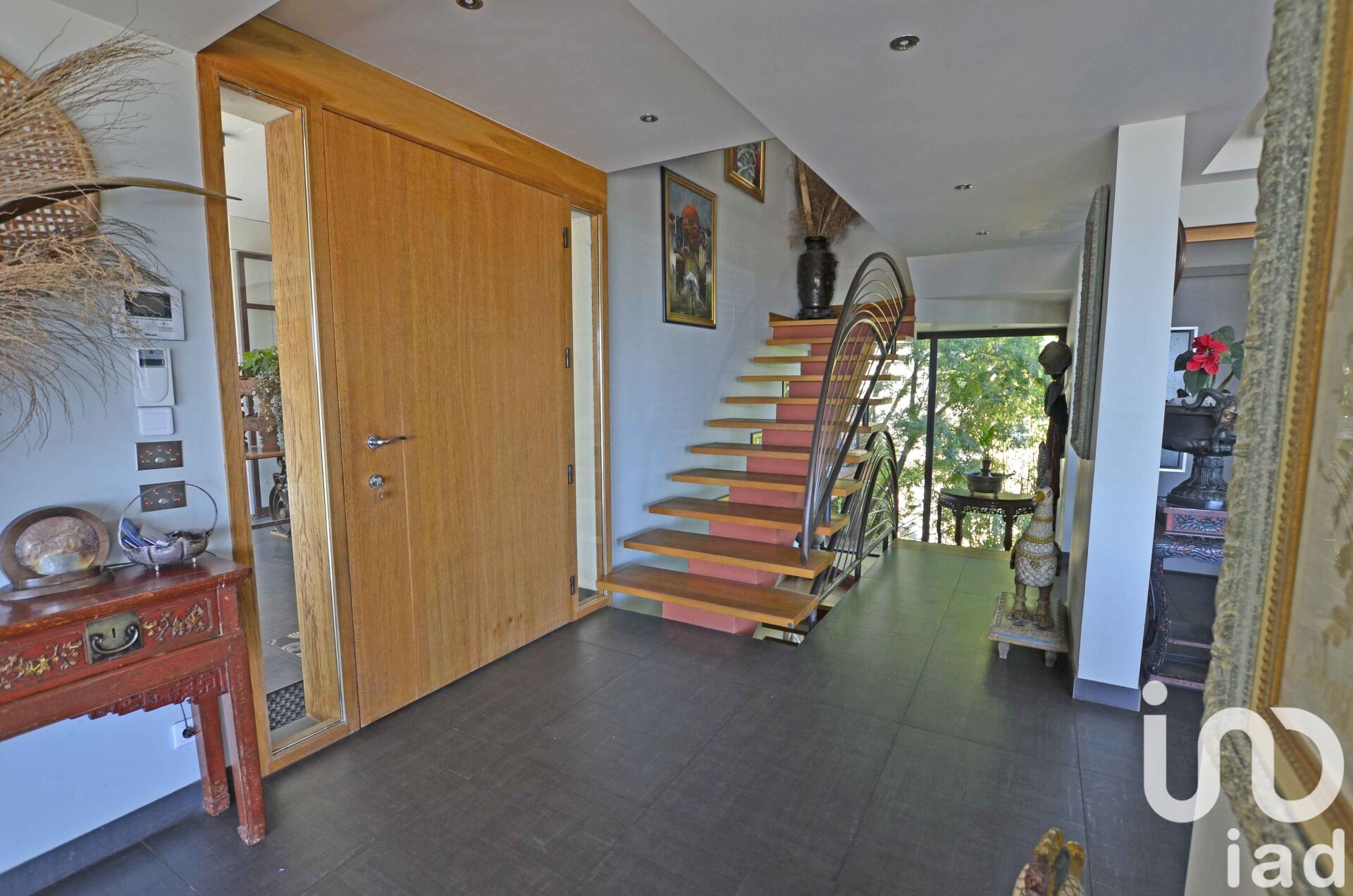 Iad France - Chantal Quilez vous propose : Évasion architecturale sur les hauteurs de Mandelieu À flanc de colline, dans un écrin de végétation luxuriante, cette propriété hors norme semble flotter entre ciel et mer. Dessinée par un architecte et construite en béton armé, elle épouse les courbes du paysage, mêlant esthétique organique et confort contemporain. Derrière ses lignes arrondies et ses volumes généreux, elle dévoile environ 300 m² de surface habitable, ouverts sur un panorama exceptionnel : la Méditerranée scintillante, les îles de Lérins à l’horizon et les reliefs des montagnes en toile de fond. L’espace de vie principal, baigné de lumière, s’articule autour d’un vaste salon avec cheminée, d’une salle à manger élégante et d’une cuisine ouverte entièrement équipée. Tout s’ouvre sur une terrasse spectaculaire de 90 m² prolongée par une piscine au sel (50 m³), offrant une transition naturelle entre l’intérieur et l’extérieur. À l’étage, la suite parentale est un refuge suspendu, inondé de lumière, avec salle de bains (douche à l’italienne + baignoire), dressing et terrasse privée de 80 m², idéale pour admirer les couchers de soleil sur la mer. En rez-de-jardin, l’espace nuit accueille trois chambres supplémentaires, dont deux en suite, ainsi qu’un bureau modulable en chambre supplémentaire et une buanderie. Un ascenseur dessert les trois niveaux de la maison, facilitant la circulation au quotidien. En complément, un loft indépendant de 45 m², parfait pour des invités ou un usage locatif, offre son propre séjour, cuisine, chambre, salle de bains et terrasse avec accès piscine. Côté stationnement : un garage fermé de 40 m² ainsi que des places extérieures. Un lieu de vie rare, pensé comme une OEuvre d’art, où chaque détail a été conçu pour dialoguer avec la nature et le panorama. Architectural Escape Overlooking the Bay of Mandelieu Perched on the hillside and nestled in lush greenery, this extraordinary property seems to float between sky and sea. Designed by an architect and built with reinforced concrete, it gracefully follows the natural curves of the landscape, blending organic elegance with contemporary comfort. Behind its fluid lines and generous volumes lie approximately 302 sqm of living space, opening onto a breathtaking panorama : the shimmering Mediterranean, the Lérins Islands on the horizon, and mountain silhouettes in the distance. The main living area is bathed in natural light and includes a spacious lounge with fireplace, a refined dining area, and a fully equipped open kitchen. Large openings lead to a spectacular 90 sqm terrace and a salt-treated swimming pool (50 m³), creating a seamless flow between indoor and outdoor living. Upstairs, the master suite is a sun-drenched retreat, featuring a bathroom with walk-in shower and bathtub, a walk-in closet, and a private 80 sqm terrace—perfect for taking in the sunset over the sea. On the garden level, three additional bedrooms await, including two en-suites, as well as a flexible office space (convertible into a fourth bedroom) and a laundry room. All three levels are connected by an elevator, offering easy access throughout the home. An independent 45 sqm loft-style apartment—ideal for guests or rental use—offers a living room, kitchen, bedroom, bathroom, private terrace, and direct access to the pool. Parking is made easy with a 40 sqm enclosed garage and additional outdoor spaces. À truly unique residence, designed as a living work of art—where every detail is crafted to harmonize with nature and the surrounding views. Honoraires d'agence à la charge du vendeur. Information d'affichage énergétique sur ce bien : classe ENERGIE C indice 143 et classe CLIMAT A indice 4. Les informations sur les risques auxquels ce bien est exposé, y compris l'obligation légale de débroussaillement, sont disponibles sur le site Géorisques : http://www.georisques.gouv.fr. La présente annonce immobilière a été rédigée sous la responsabilité éditoriale de Mme Chantal Quilez mandataire indépendant en immobilier (sans détention de fonds), agent commercial de la SAS I@D France immatriculé au RSAC de CANNES sous le numéro 890980337, titulaire de la carte de démarchage immobilier pour le compte de la société I@D France SAS.