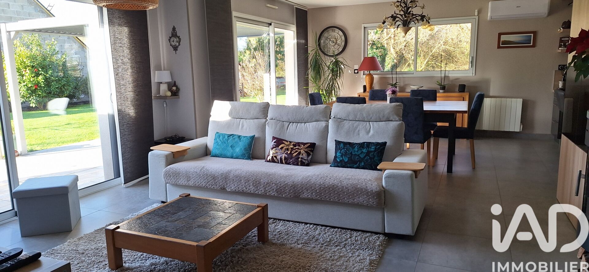 Iad France - Fabien Ricour vous propose : Sublime Maison Moderne de Plain-Pied de 117 m², avec Jardin et Garage à Locoal-Mendon, coup de cOEur assuré ! Cette magnifique maison contemporaine de plain-pied construite en 2016 vous séduira par ses lignes épurées et sa façade élégante qui offrent un cachet moderne et raffiné, s'intégrant harmonieusement dans son environnement naturel. Dès l'entrée, vous serez charmé par l'espace de vie lumineux et convivial, agencé avec goût et ouvert sur une cuisine équipée de qualité, sa baie vitrée à galandage donnant accès à une terrasse de 41 m² invitant à la détente et aux moments agréables en plein air. Un couloir dessert un WC indépendant, une salle de bain avec double vasques, une baignoire d'angle, une douche italienne et un WC, suivent les 3 chambres, dont une avec dressing et terrasse offrent des espaces chaleureux pour toute la famille. Le vaste jardin arboré, le garage, le car-port et les places de parking vous assurent praticité et confort au quotidien. La présence de la fibre optique, et d'un visiophone couleur soulignent le souci du bien-être et de la modernité qui caractérisent ce bien d'exception. Située à 3,5km de l'accès à la N165,15km des plages, 550m des commerces et à 900m de l'école, cette maison au cadre de vie idéal pour les amoureux de la nature, de la tranquillité et de la convivialité. Ne manquez pas cette opportunité de devenir propriétaire d'une maison contemporaine et en excellent état à Locoal-Mendon ! Contactez-nous sans tarder pour organiser une visite et laissez-vous séduire par ce bien d'exception qui saura répondre à toutes vos attentes en matière de confort, de modernité et de qualité de vie. Honoraires d'agence à la charge du vendeur. Information d'affichage énergétique sur ce bien : classe ENERGIE B indice 95 et classe CLIMAT A indice 3. Les informations sur les risques auxquels ce bien est exposé, y compris l'obligation légale de débroussaillement, sont disponibles sur le site Géorisques : http://www.georisques.gouv.fr. La présente annonce immobilière a été rédigée sous la responsabilité éditoriale de M Fabien Ricour mandataire indépendant en immobilier (sans détention de fonds), agent commercial de la SAS I@D France immatriculé au RSAC de LORIENT sous le numéro 994412385, titulaire de la carte de démarchage immobilier pour le compte de la société I@D France SAS.