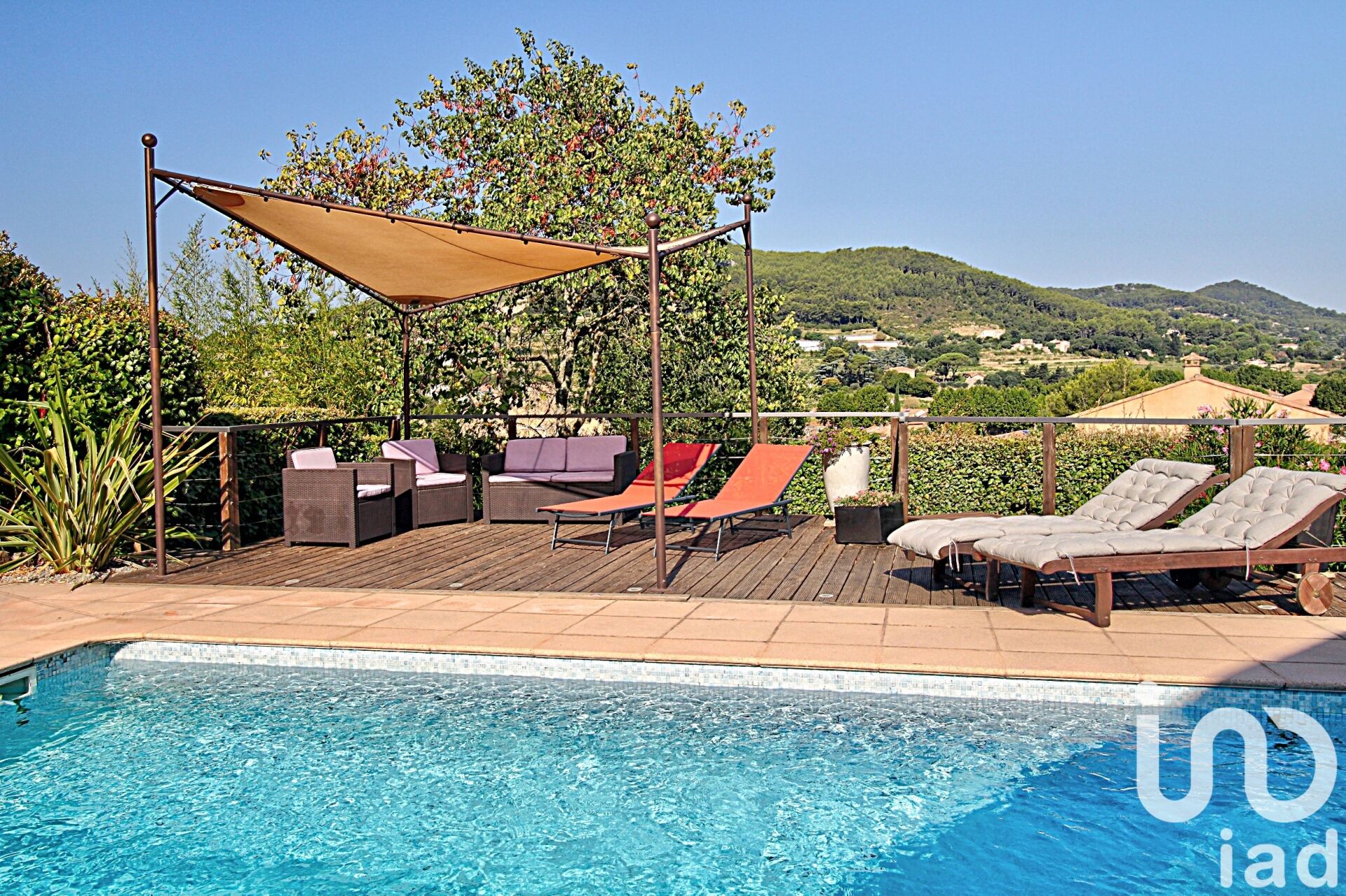 Iad France - Lionel DELAHAYE vous propose : MAISON CONTEMPORAINE AVEC VUE PANORAMIQUE A proximité de toutes les commodités, découvrez cette belle maison contemporaine au charme indéniable. Dès l’arrivée, l’impression de qualité et de sérénité s’impose : un terrain parfaitement aménagé, une piscine élégante, et une architecture soignée qui met en valeur les volumes et la luminosité. Au rez-de-chaussée, la vaste pièce de vie d’environ 55 m² offre un espace convivial et chaleureux, idéal pour recevoir. Ce niveau comprend également une chambre avec salle d’eau privative et WC. Un demi-niveau dessert deux chambres supplémentaires, une grande salle de bains équipée d’une baignoire et d’une douche, ainsi qu’un WC indépendant. Sous les toits, un espace lumineux et inspirant complète l’ensemble, parfait pour un bureau, une bibliothèque ou une chambre supplémentaire. La maison dispose en outre d’un grand garage avec espace de rangement, buanderie et local technique pour la piscine. Le terrain, entièrement clos et paysagé, renforce la sensation d’intimité et de confort. Maison entretenue avec soin, prestations de qualité, ambiance contemporaine et emplacement privilégié : un bien rare, à découvrir sans tarder. Honoraires d'agence à la charge du vendeur. Information d'affichage énergétique sur ce bien : classe ENERGIE D indice 192 et classe CLIMAT A indice 5. Les informations sur les risques auxquels ce bien est exposé, y compris l'obligation légale de débroussaillement, sont disponibles sur le site Géorisques : http://www.georisques.gouv.fr. La présente annonce immobilière a été rédigée sous la responsabilité éditoriale de M Lionel DELAHAYE mandataire indépendant en immobilier (sans détention de fonds), agent commercial de la SAS I@D France immatriculé au RSAC de TOULON sous le numéro 909737918, titulaire de la carte de démarchage immobilier pour le compte de la société I@D France SAS.