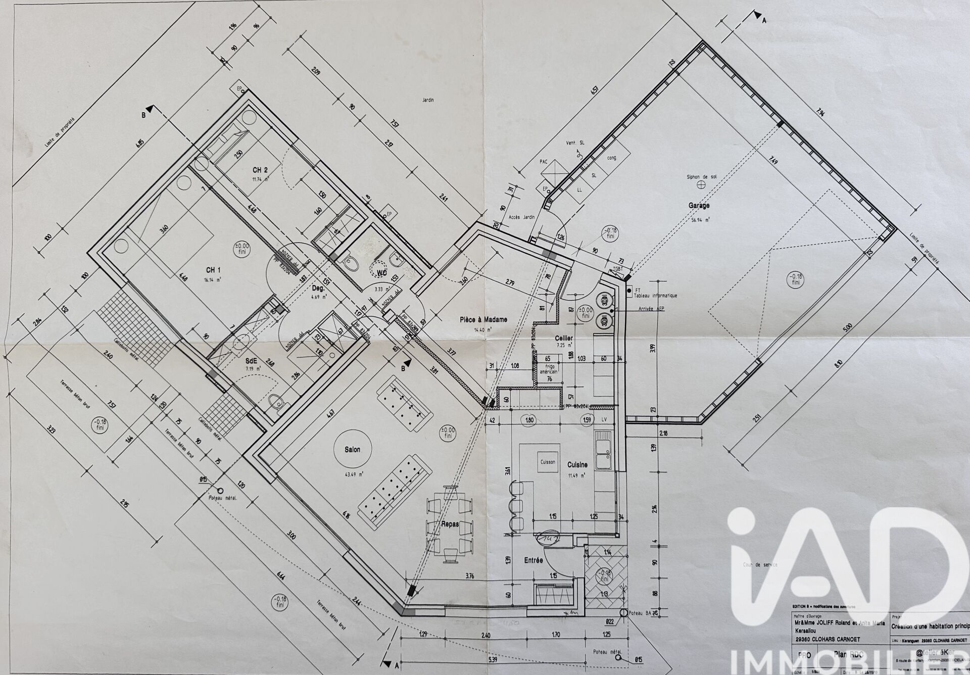 Iad France - Angélique Palvadeau vous propose : Nouveauté en exclusivité : À seulement 1 km du centre de Clohars-Carnoët, des commerces et des écoles, et 10 minutes en voiture des plages, découvrez cette maison d’architecte entièrement de plain-pied aux normes PMR de près de 120 m², implantée sur un magnifique terrain paysager de 1 200 m², au calme, bercé par le chant des oiseaux. Dès l’entrée, la lumière est omniprésente. Chaque pièce bénéficie de larges ouvertures vitrées et d’un accès direct à une terrasse, offrant une immersion totale dans la nature. La maison, orientée Sud-Ouest, profite d’un ensoleillement optimal et d’un apport thermique naturel. La pièce de vie, spacieuse et lumineuse, développe plus de 40 m², avec une hauteur sous plafond de 3,80 m, apportant volume, clarté et élégance. Elle s’ouvre sur une grande baie vitrée tournée vers le jardin. La cuisine aménagée et équipée, résolument haut de gamme, dispose de nombreux rangements et d’équipements de qualité (four, micro-ondes, four vapeur, lave-vaisselle, plaques, hotte), avec un plan de travail en pierre. Elle est prolongée par un cellier / arrière-cuisine doté d’un grand réfrigérateur américain et de rangements supplémentaires, donnant accès à un garage de près de 57 m² avec porte motorisée — idéal pour le bricolage, le stockage ou les passionnés d’automobile. Côté nuit, la maison offre trois belles chambres, dont une chambre lumineuse de plus de 16 m² avec grande baie vitrée et terrasse privative. Deux autres chambres confortables complètent l’espace nuit, ainsi que deux salles d’eau avec WC. Prestations : •Chauffage au sol •Double vitrage bois intérieur / aluminium extérieur •Tout-à-l’égout •Accès PMR •Architecture unique aux lignes courbes, parfaitement intégrée dans son environnement Visite Virtuelle disponible sur demande Honoraires d'agence à la charge de l'acquéreur. Prix honoraires inclus : 498000 euros. Prix hors honoraires : 483000 euros. Honoraires TTC à la charge de l'acquéreur (3,11% du prix du bien hors honoraires) : 15000 euros. Information d'affichage énergétique sur ce bien : classe ENERGIE A indice 69 et classe CLIMAT A indice 2. Les informations sur les risques auxquels ce bien est exposé, y compris l'obligation légale de débroussaillement, sont disponibles sur le site Géorisques : http://www.georisques.gouv.fr. La présente annonce immobilière a été rédigée sous la responsabilité éditoriale de Mme Angélique Palvadeau mandataire indépendant en immobilier (sans détention de fonds), agent commercial de la SAS I@D France immatriculé au RSAC de RENNES sous le numéro 534178769, titulaire de la carte de démarchage immobilier pour le compte de la société I@D France SAS.