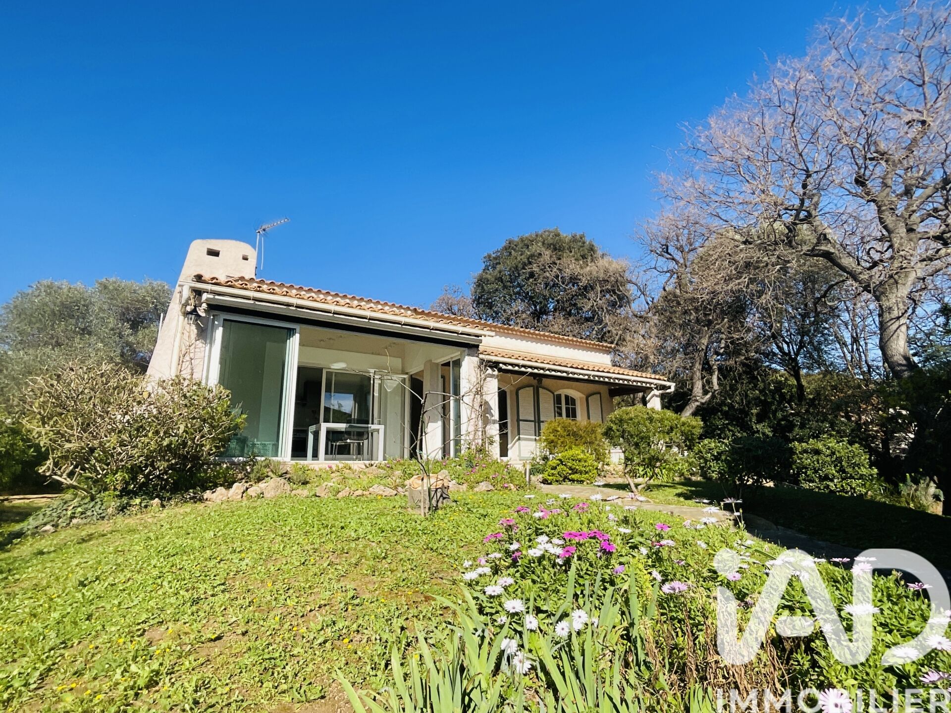 Iad France - Isabelle Tigien vous propose : VILLA T3 PLAIN PIED Située dans un quartier résidentiel, cette maison au calme est proche de toutes les commodités nécessaires au quotidien. Les expositions traversantes offrent une belle luminosité naturelle tout au long de la journée. Un espace de vie de plus de 56 m² avec sa cuisine ouverte. Belle Véranda ouvrant sur la cuisine rajoutant ainsi un espace convivial, pour une surface habitable de 105 m² au total. Deux grandes chambres avec chacune un placard. Climatisation réversible, vide sanitaire 1,20m, menuiseries PVC double vitrage, fibre, Pas de travaux à prévoir. Un grand garage carrelé, traversant et lumineux, fait office d'atelier actuellement. Les combles aménagés avec un accès facilité par un escalier extérieur offrent en espace de rangement non négligeable. Gérée par une ASL de 8 lots seulement, il n'y a aucune charge de copropriété. Je suis disponible 7 / 7 pour vous faire découvrir tout le charme de cette bâtisse rare de plain pied et au calme. N'hésitez pas à me faire part de votre projet et critères d'achat, nous pourrons alors organiser une visite si ce bien semble semble répondre à vos attentes. La presente annonce immobiliere vise 1 lot situé dans une copropriété de 8 lots au total et ne faisant l'objet d'aucune procédure en cours citée à l'article L. 721-1 du code de la construction et de l'habitation. Montant moyen mensuel de charges déclaré par le vendeur : 0.08€ par mois (soit 1 € annuel). Honoraires d'agence à la charge du vendeur. Information d'affichage énergétique sur ce bien : classe ENERGIE C indice 178 et classe CLIMAT B indice 6. Les informations sur les risques auxquels ce bien est exposé, y compris l'obligation légale de débroussaillement, sont disponibles sur le site Géorisques : http://www.georisques.gouv.fr. La présente annonce immobilière a été rédigée sous la responsabilité éditoriale de Mme Isabelle Tigien mandataire indépendant en immobilier (sans détention de fonds), agent commercial de la SAS I@D France immatriculé au RSAC de Toulon sous le numéro 903515815, titulaire de la carte de démarchage immobilier pour le compte de la société I@D France SAS.