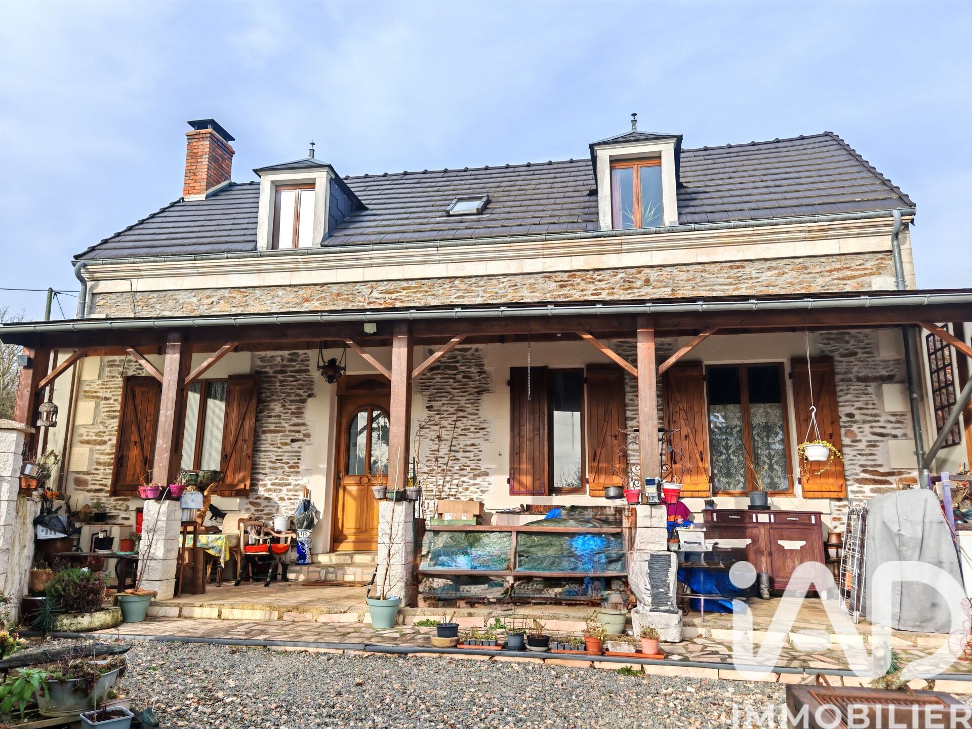 Iad France - Anthony Moiny vous propose : Venez découvrir cette magnifique maison de campagne idéale pour les amoureux de la nature et de la tranquillité, proche des premiers commerces. Avec ses 123 m² de surface habitable sur un terrain de 3370 m² cette propriété est parfaite pour une famille en quête de sérénité ou pour une résidence secondaire. Dès l'entrée, vous serez séduit par l'atmosphère chaleureuse qui règne dans cette maison. Le rez-de-chaussée se compose d'un espace de vie de 40 m² comprenant un salon-salle à manger et une cuisine semi-ouverte entièrement équipée. Vous pourrez profiter d'une chambre parentale et de sa salle de bains. À l'étage vous apprécierez les espaces de rangement, une chambre parentale avec sa salle d'eau, une chambre, un bureau ou chambre d'appoint ainsi qu'une mezzanine. L'extérieur de la maison est tout aussi charmant avec un jardin arboré soigneusement entretenu, une terrasse couverte de 30 m², un garage de 32 m² équipé d'une fosse pour les passionnés de mécanique, un atelier, un hangar, un cabanon, un appentis. La toiture est récente. Cette propriété est entièrement clôturée avec des éclairages sur le terrain. Elle bénéficie de la fibre optique et d'une fosse septique. Le système de chauffage individuel assure une température agréable, avec des convecteurs électriques et un poêle à bois pour les moments de convivialité. Cette bâtisse bénéficie d'un excellent diagnostic énergétique avec un DPE C. Cette maison bénéficie d'un emplacement privilégié à seulement 7 km du lac de Sidiailles et de ses activités nautiques. Ne manquez pas l'opportunité de visiter ce bien plein de charme et de potentiel ! Contactez-moi dès maintenant pour organiser une visite. Honoraires d'agence à la charge du vendeur. Information d'affichage énergétique sur ce bien : classe ENERGIE C indice 168 et classe CLIMAT A indice 5. Les informations sur les risques auxquels ce bien est exposé, y compris l'obligation légale de débroussaillement, sont disponibles sur le site Géorisques : http://www.georisques.gouv.fr. La présente annonce immobilière a été rédigée sous la responsabilité éditoriale de M Anthony Moiny mandataire indépendant en immobilier (sans détention de fonds), agent commercial de la SAS I@D France immatriculé au RSAC de BOURGES sous le numéro 537794646, titulaire de la carte de démarchage immobilier pour le compte de la société I@D France SAS.