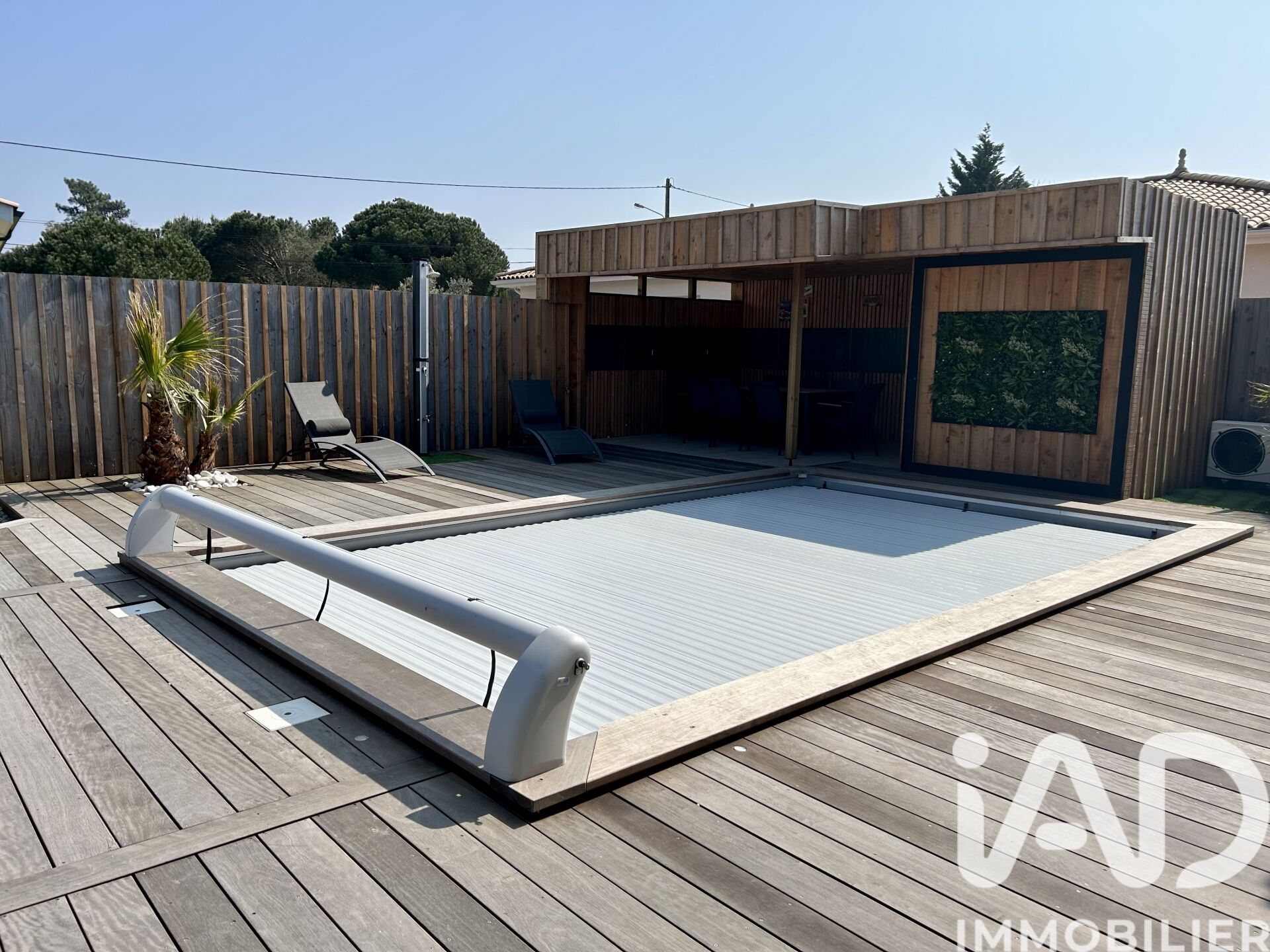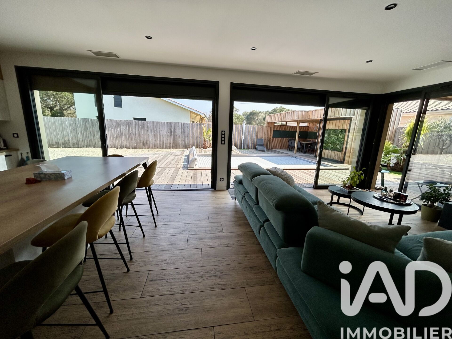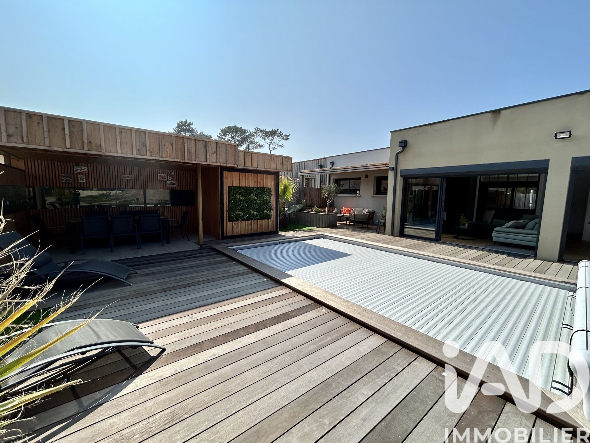 Iad France - Nathalie Denel vous propose : Maison d'architecte avec piscine, Moderne et Lumineuse à Vendays-Montalivet-Vendue meublée Cette maison d'architecte, construite en 2022 est idéalement située à Montalivet, charmante station balnéaire Médocaine, à proximité des commodités, du marché et de la plage, cette résidence est un véritable havre de paix pour profiter de la douceur de vivre entre océan et forêt. D'une surface totale de 110 m², cette maison est vendue meublée et s'étend sur un terrain de 478 m² offrant un bel espace extérieur. L'agencement intérieur est parfaitement pensé pour un confort optimal, avec 3 chambres spacieuses et lumineuses, dont une suite parentale avec WC et salle d'eau privative. Le vaste séjour de 38 m², ouvert sur une cuisine équipée et moderne, crée un espace de vie convivial et propice à la détente. De plus, les terrasses autour de la piscine offrent des espaces extérieurs agréables pour profiter des journées ensoleillées et des soirées d'été. Les équipements de cette maison d'architecte sont à la pointe de la modernité, avec notamment la fibre optique, l'air conditionné, l'assainissement individuel, et un système de chauffage performant comprenant un chauffage au sol et une climatisation réversible. De plus, un garage et un parking sont disponibles pour garer vos véhicules en toute sécurité. Cette maison ne nécessite aucun travaux, offrant un cadre de vie contemporain et confortable dès votre emménagement. Profitez du calme et du confort de cette maison à Montalivet. Une visite s'impose pour découvrir tous ses atouts et son charme unique. Honoraires d'agence à la charge du vendeur. Information d'affichage énergétique sur ce bien : classe ENERGIE A indice 28 et classe CLIMAT A indice 1. Les informations sur les risques auxquels ce bien est exposé, y compris l'obligation légale de débroussaillement, sont disponibles sur le site Géorisques : http://www.georisques.gouv.fr. La présente annonce immobilière a été rédigée sous la responsabilité éditoriale de Mme Nathalie Denel mandataire indépendant en immobilier (sans détention de fonds), agent commercial de la SAS I@D France immatriculé au RSAC de BORDEAUX CEDEX sous le numéro 520446428, titulaire de la carte de démarchage immobilier pour le compte de la société I@D France SAS.