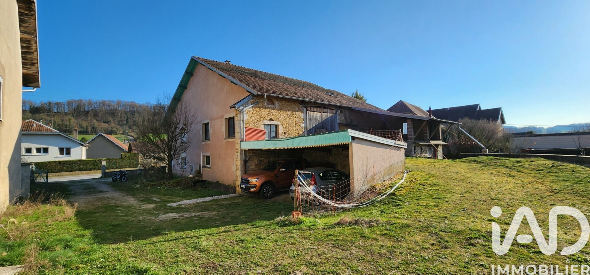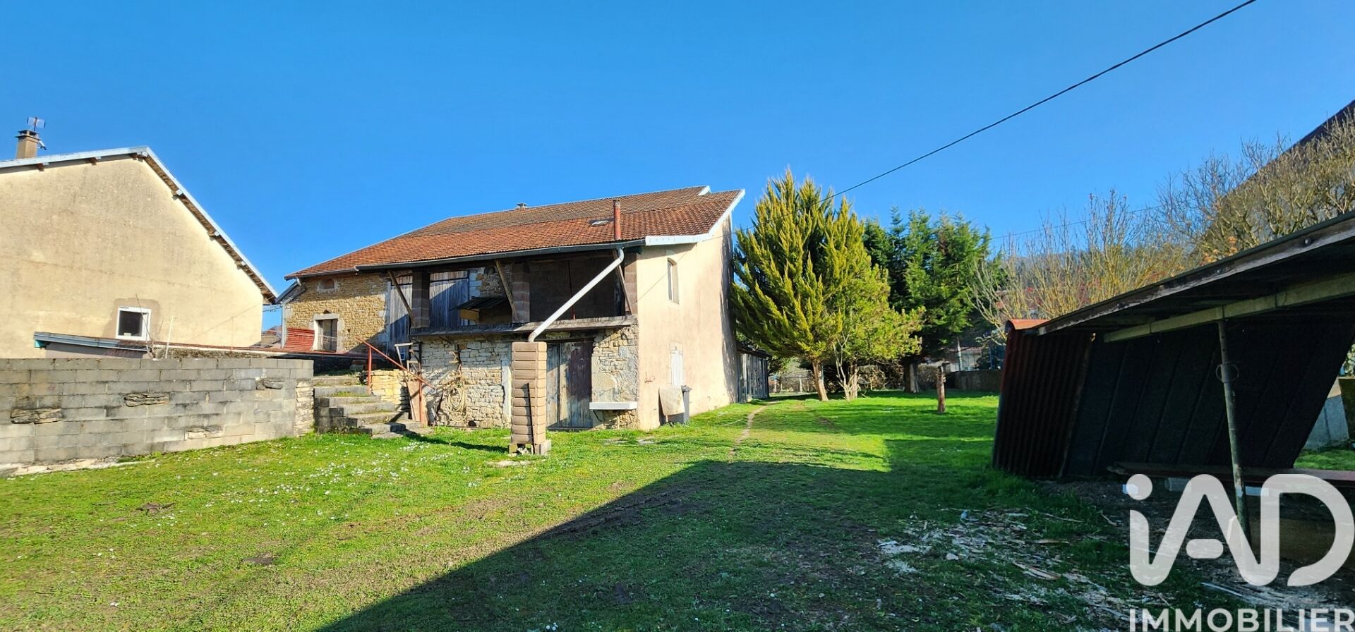 Iad France - Jean-François PALATICKY vous propose : Potentiel exceptionnel ! Corps de ferme en pierre à rénover de 178 m² habitables + grange aménageable de 280 m² + dépendance de 294 m². Le rez-de-chaussée offre une entrée, une cuisine, un salon avec véranda, une chambre, une salle d'eau avec WC, une buanderie. L'étage dispose de trois chambres (pour un total de quatre), un WC séparé, un placard. Un garage, un carport et une cave voûtée en pierre complètent le bien. La grange et 4 pièces supplémentaires sont aménageables en logements ou pour du stockage. Terrain de 78,7 ares (dont 63,82 non constructibles avec la dépendance). Nombreux arbres fruitiers. Possibilité d'acquérir uniquement la partie constructible et de créer du stationnement. Chauffage par PAC + poêle à bois. Assainissement conforme. Les + : calme, nature, vue dégagée, énorme potentiel. Honoraires d'agence à la charge du vendeur. Information d'affichage énergétique sur ce bien : classe ENERGIE D indice 240 et classe CLIMAT B indice 8. Les informations sur les risques auxquels ce bien est exposé, y compris l'obligation légale de débroussaillement, sont disponibles sur le site Géorisques : http://www.georisques.gouv.fr. La présente annonce immobilière a été rédigée sous la responsabilité éditoriale de M Jean-François PALATICKY mandataire indépendant en immobilier (sans détention de fonds), agent commercial de la SAS I@D France immatriculé au RSAC de BESANCON sous le numéro 504267451, titulaire de la carte de démarchage immobilier pour le compte de la société I@D France SAS.