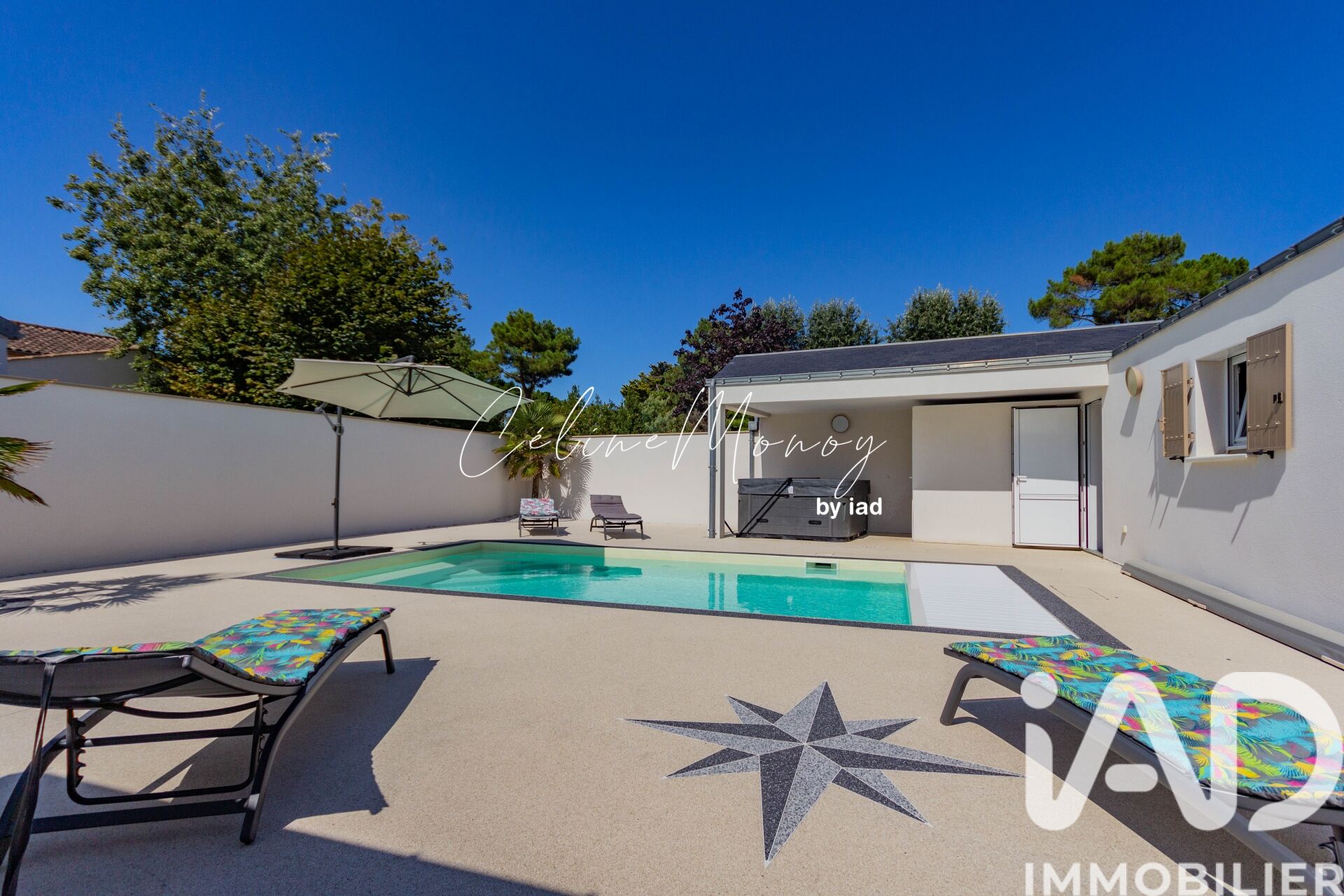 Iad France - Celine Monoy vous propose : Nouveauté prestige ! Seulement chez iad france ! Cette maison d'architecte à été entièrement rénovée 2020-2021 avec des matériaux de qualité pour penser à tout votre confort. Vous rêvez de vivre sous le soleil au bord de mer ? Cette propriété vous offre l'emplacement idéal à pied de la plage et du sable fin de Saint Jean-de-Monts, Vendée. Cette maison de 136 m² se compose au RDC : d'un bel espace de vie avec salon / séjour ouvert sur la cuisine équipée, aménagée. Une suite parentale avec salle d'eau et WC séparé viennent compléter la vie de plain-pied au rez-de-chaussé. à l'étage : 2 grandes chambres de plus de 20 m² dont une avec terrasse surplombant le jardin, une salle d'eau avec WC et un espace bureau / dressing. Vous serez séduit par l'espace extérieur qui offre : Une pergola avec le salon à côté du terrain de pétanque pour vos moments en famille ou entre amis. Une belle piscine chauffée avec sa pool house salle d'eau et WC. Un spa, jacuzzi sera idéal pour la détente. Un local à vélo et diverses dépendances pour du stockage et un double garage de 35 m² isolé et de qualité pour vos véhicules de collection. Tous les meubles peuvent rester si souhaité (réduction des frais notarié), prêt à la location saisonnière, pour votre résidence secondaire ou principale. Venez vite découvrir ce petit coin de paradis niché à quelques mètres à pied de la mer. Honoraires d'agence à la charge du vendeur. Information d'affichage énergétique sur ce bien : classe ENERGIE D indice 249 et classe CLIMAT B indice 8. Les informations sur les risques auxquels ce bien est exposé, y compris l'obligation légale de débroussaillement, sont disponibles sur le site Géorisques : http://www.georisques.gouv.fr. La présente annonce immobilière a été rédigée sous la responsabilité éditoriale de Mme Celine Monoy mandataire indépendant en immobilier (sans détention de fonds), agent commercial de la SAS I@D France immatriculé au RSAC de LA ROCHE SUR YON sous le numéro 880321971, titulaire de la carte de démarchage immobilier pour le compte de la société I@D France SAS.