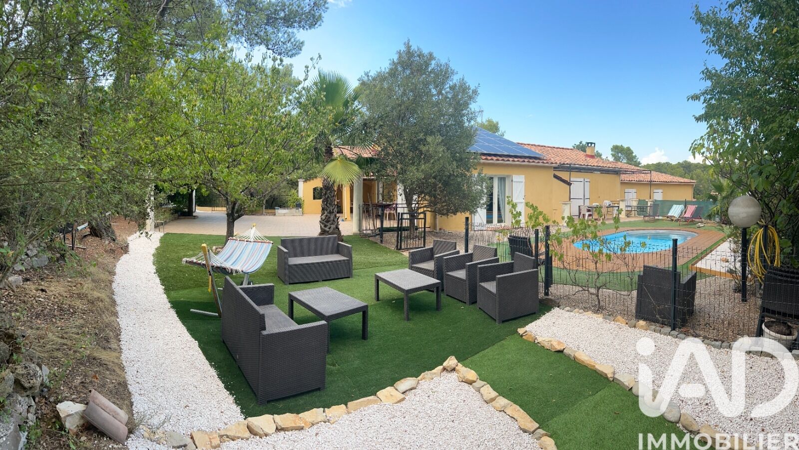 Iad France - Christian Bergallo vous propose : Dans un cadre paisible et verdoyant découvrez cette magnifique bastide familiale composée de 5 chambres de plein pied, vastes espaces habitables associant à la fois confort contemporain et modernisme, très peu énergivore grâce aux panneaux solaires, associés à la production d'eau chaude par un ballon thermodynamique, la construction entièrement traditionnelle de 2002 est d'environ 200 m². La propriété entièrement close est implantée sur plus de 1700 m² de terrain plat Agrémenté d'une piscine prolongée d'une immense terrasse ombragée. Elle possède également de nombreuses surfaces annexes un agréable appartement T2 de 32 m² de plein pieds complétement indépendant, pouvant être agrandis, mais aussi pour passionnés en tout genres son garage de plus de 160 m², ainsi une cave. Honoraires d'agence à la charge du vendeur. Information d'affichage énergétique sur ce bien : classe ENERGIE B indice 80 et classe CLIMAT A indice 2. Les informations sur les risques auxquels ce bien est exposé, y compris l'obligation légale de débroussaillement, sont disponibles sur le site Géorisques : http://www.georisques.gouv.fr. La présente annonce immobilière a été rédigée sous la responsabilité éditoriale de M Christian Bergallo mandataire indépendant en immobilier (sans détention de fonds), agent commercial de la SAS I@D France immatriculé au RSAC de TOULON sous le numéro 327188132, titulaire de la carte de démarchage immobilier pour le compte de la société I@D France SAS.