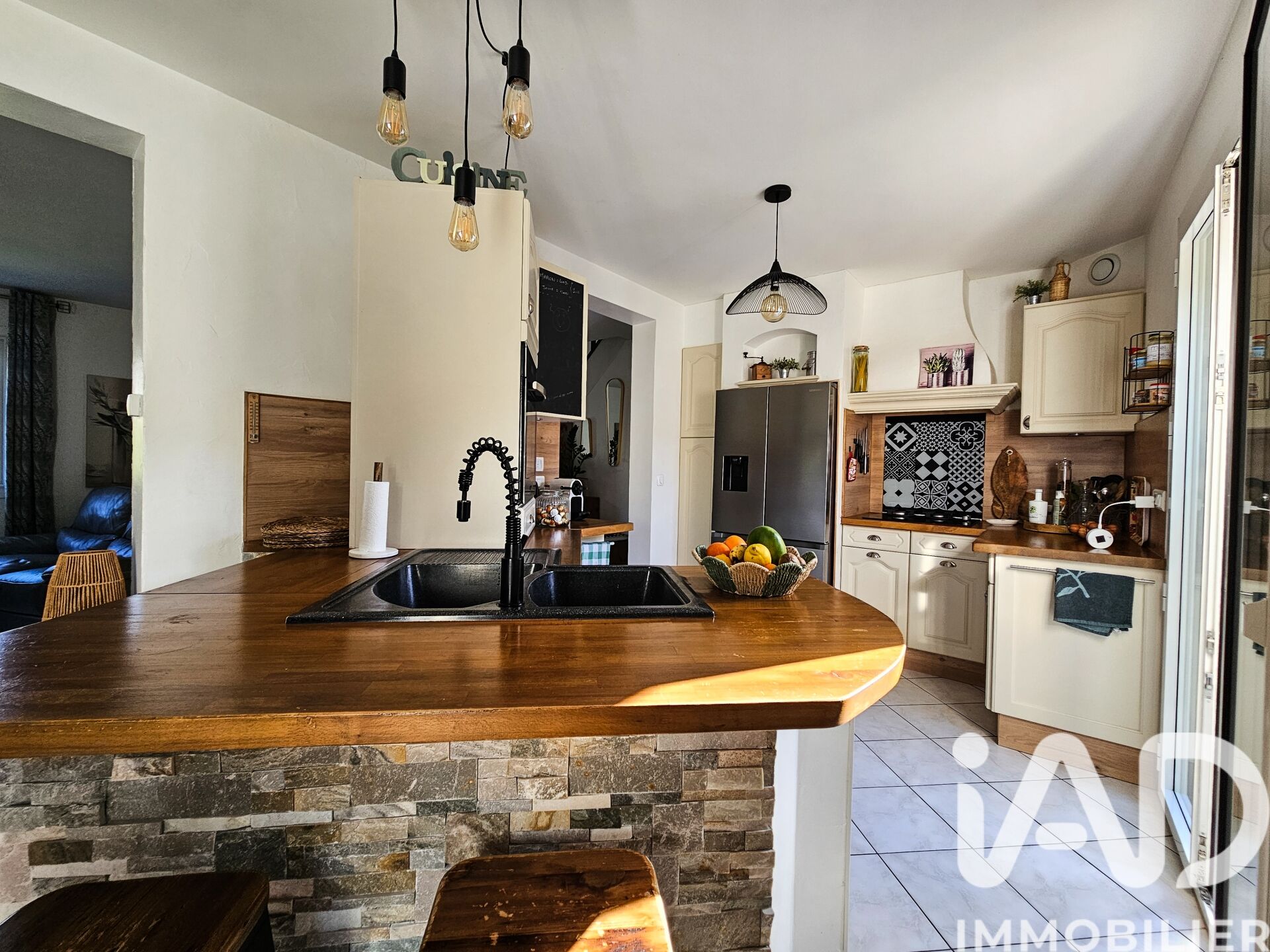 Iad France - Mélanie COMBE vous propose : * EXCLUSIVITÉ * Proche de toutes les commodités à pied (écoles à 200m, commerces, transports : Bus à 100m, T12 à 10 min), en centre-ville dans une impasse, MAISON édifiée sur sous-sol total 6 pièces de 129 m² comprenant au RDC une entrée, un double séjour avec son poêle à bois, une cuisine ouverte toute équipée, une chambre, une salle de bains avec douche et baignoire, un toilette séparé. À l'étage, un palier desservant 3 chambres dont 2 avec grand dressing, une salle d'eau avec wc. Au sous-sol, espace atelier, garage et buanderie. Vous bénéficierez d'un jardin de 502 m² entièrement clos, équipé d'une piscine chauffée ainsi qu'une terrasse de 42 m² exposée plein SUD. Aucun travaux à prévoir. Les + : fenêtres double vitrage alu, volets roulants électriques solaires, porte de garage et portail motorisés, store électrique,. À visiter sans plus tarder ! Honoraires d'agence à la charge du vendeur. Information d'affichage énergétique sur ce bien : classe ENERGIE D indice 187 et classe CLIMAT B indice 7. Les informations sur les risques auxquels ce bien est exposé, y compris l'obligation légale de débroussaillement, sont disponibles sur le site Géorisques : http://www.georisques.gouv.fr. La présente annonce immobilière a été rédigée sous la responsabilité éditoriale de Mme Mélanie COMBE mandataire indépendant en immobilier (sans détention de fonds), agent commercial de la SAS I@D France immatriculé au RSAC de EVRY sous le numéro 814540282, titulaire de la carte de démarchage immobilier pour le compte de la société I@D France SAS.