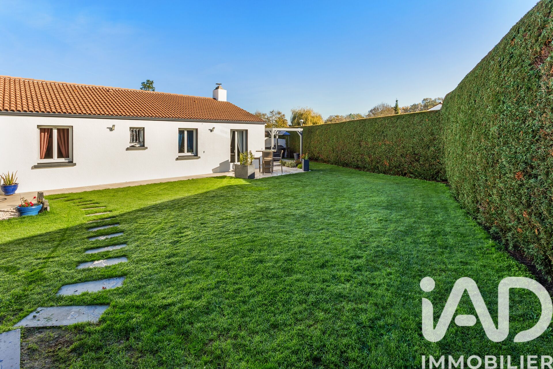 Iad France - Séverine Charmet vous propose : À deux pas du bourg maison de plain-pied, 3 chambres, garage, jardin et proche commodités. Aucun travaux à prévoir ! Venez découvrir cette belle maison au calme et proche du bourg. Elle se compose d’un séjour lumineux d'environ 30 m², d’une cuisine Schmidt entièrement équipée (installée en 2019), de trois chambres d'environ 9 m², 11,3 m² et 12 m², d’un WC indépendant et d’une salle d’eau avec douche à l’italienne et meuble vasque. Un garage spacieux d'environ 38 m² complète l’ensemble, offrant un coin buanderie et un coin atelier. À l’extérieur, vous profiterez d’un jardin entièrement clôturé et sans vis-à-vis, d’une terrasse exposée sud avec pergola, ainsi que d’un chalet de 9 m² idéal pour le rangement. La maison dispose de nombreux conforts modernes : domotique, climatisations réversibles, alarme et fibre optique. Maison parfaitement entretenue, idéalement située dans un lotissement calme, à deux pas du bourg, des écoles, des commerces et avec un accès rapide à la 4 voies et aux transports. À 10 minutes du périphérique nantais et à 30 minutes des plages. Aucun travaux à prévoir. Un bien rare sur le secteur, à visiter sans tarder ! Inter-agence bienvenue Honoraires d'agence à la charge du vendeur. Information d'affichage énergétique sur ce bien : classe ENERGIE C indice 171 et classe CLIMAT B indice 6. Les informations sur les risques auxquels ce bien est exposé, y compris l'obligation légale de débroussaillement, sont disponibles sur le site Géorisques : http://www.georisques.gouv.fr. La présente annonce immobilière a été rédigée sous la responsabilité éditoriale de Mme Séverine Charmet mandataire indépendant en immobilier (sans détention de fonds), agent commercial de la SAS I@D France immatriculé au RSAC de Nantes sous le numéro 941646754, titulaire de la carte de démarchage immobilier pour le compte de la société I@D France SAS.