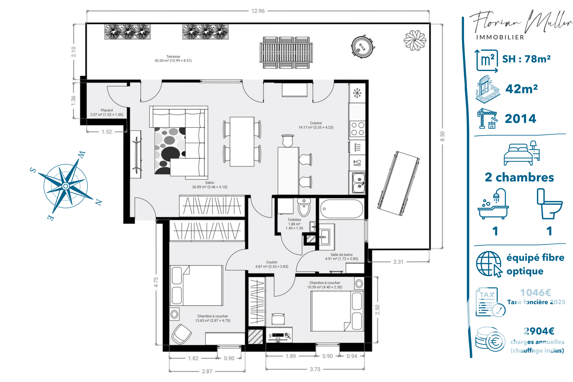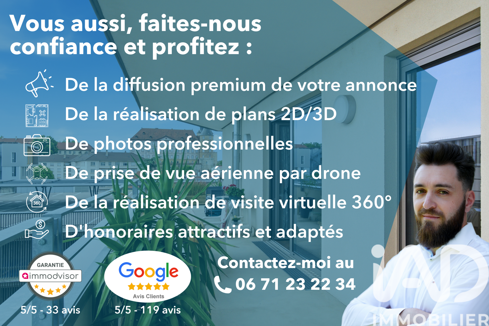 Iad France - Florian Muller vous propose : Vivez Montbéliard à son meilleur – un appartement lumineux avec terrasse dotée d'une vue sur le Château de Montbéliard ! Situé au dernier étage d'une résidence construite en 2014 avec ascenseur, ce superbe appartement de 78 m² allie confort moderne, tranquillité et emplacement stratégique. Vous rêvez d’un espace lumineux, calme et sans vis-à-vis ? Voici la pépite que vous cherchez tant ! La pièce de vie principale composée d’un vaste salon-séjour baigné de lumière et d'une cuisine incorporée Schmidt avec des électroménagers haut de gamme vous offrira 41 m². Deux chambres confortables avec placards intégrés côté Est vous permettront de vous reposer en toute tranquillité. Pour finir une salle de bains avec baignoire et des toilettes séparées complètent l’ensemble. L'atout principal de cet appartement demeure dans sa magnifique terrasse de 42 m² exposée Sud-Sud / Ouest idéale pour vos moments de détente ou vos soirées d’été. En prime, une vue dégagée sur le château de Montbéliard et des lumières les soirs. Pour votre confort au quotidien : place de stationnement privative dans enceinte fermée, local vélo, ascenseur et environnement paisible. L'accès au centre-ville, à la gare ainsi qu'aux transports en commun est assuré en seulement 5 minutes à pied. L'accès rapide à l'autoroute facilite également tous vos déplacements. Ce bien rare, au dernier étage, vous offre un cadre de vie unique à Montbéliard, entre modernité, calme et proximité. Imaginez-vous déjà profiter du soleil sur votre terrasse, en toute intimité… N’attendez pas ! Prenez contact dès à présent pour une visite et laissez-vous séduire par ce lieu coup de cOEur. La presente annonce immobiliere vise 3 lots situés dans une copropriété de 54 lots au total et faisant l'objet d'une ou plusieurs procédures en cours citée à l'article L. 721-1 du code de la construction et de l'habitation. Montant moyen mensuel de charges déclaré par le vendeur : 242€ par mois (soit 2904 € annuel). Honoraires d'agence à la charge du vendeur. Information d'affichage énergétique sur ce bien : classe ENERGIE C indice 112 et classe CLIMAT B indice 6. Les informations sur les risques auxquels ce bien est exposé, y compris l'obligation légale de débroussaillement, sont disponibles sur le site Géorisques : http://www.georisques.gouv.fr. La présente annonce immobilière a été rédigée sous la responsabilité éditoriale de M Florian Muller mandataire indépendant en immobilier (sans détention de fonds), agent commercial de la SAS I@D France immatriculé au RSAC de Belfort sous le numéro 915241186, titulaire de la carte de démarchage immobilier pour le compte de la société I@D France SAS.
