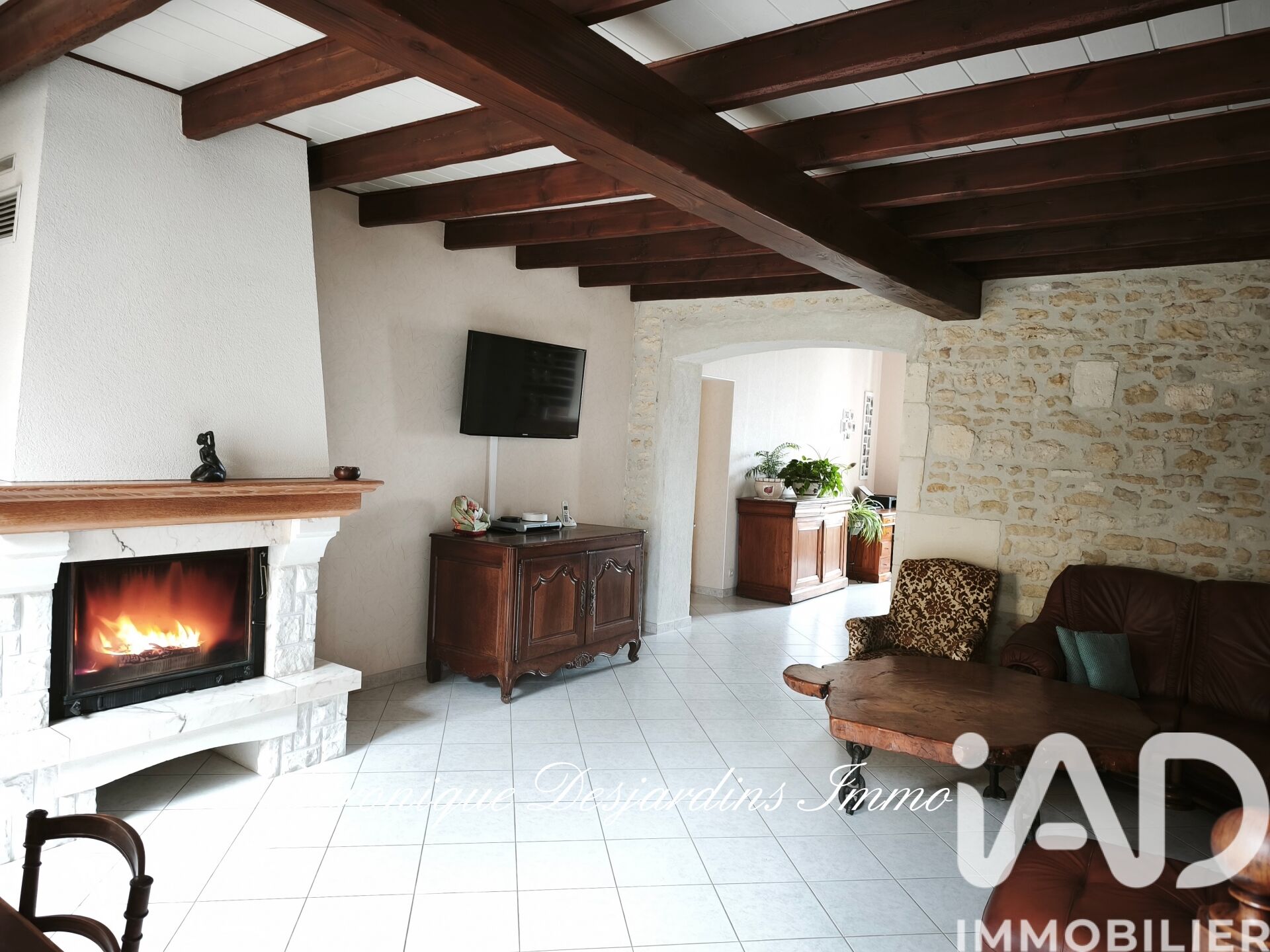 Iad France - Véronique Desjardins vous propose : Située sur la commune de Rioux à seulement 30 minutes de la cote et 20 minutes de Saintes. Cette propriété offre un cadre verdoyant et de belles possibilités grâce à son terrain d’environ 4 300 m². L’ensemble se compose de deux habitations indépendantes. Une maison charentaise d’environ 160 m², au charme authentique, proposant de beaux volumes et le cachet de l’ancien. Elle se compose au rez-de-chaussée : d’une cuisine séparée, d’un vaste salon avec cheminée, d’une salle à manger, d'une buanderie ainsi qu'une salle d’eau et d'une chambre. À l’étage, un palier dessert trois chambres et une salle de bain, offrant un espace nuit confortable pour toute la famille. Une seconde maison d’environ 77 m², parfaite pour recevoir famille et amis, envisager une location ou un projet multigénérationnel. Elle comprend au rez-de-chaussée un séjour avec salon et salle à manger, une cuisine ainsi qu’une salle d’eau. À l’étage, on retrouve deux chambres. Un garage de 50 m² Le parc spacieux et arboré, offre un environnement paisible tout en laissant place à de nombreux projets d’aménagement selon vos besoins. Une propriété rare sur le secteur, qui séduira les amateurs d’espace, de nature. Honoraires d'agence à la charge du vendeur. Information d'affichage énergétique sur ce bien : classe ENERGIE B indice 90 et classe CLIMAT A indice 3. Les informations sur les risques auxquels ce bien est exposé, y compris l'obligation légale de débroussaillement, sont disponibles sur le site Géorisques : http://www.georisques.gouv.fr. La présente annonce immobilière a été rédigée sous la responsabilité éditoriale de Mme Véronique Desjardins mandataire indépendant en immobilier (sans détention de fonds), agent commercial de la SAS I@D France immatriculé au RSAC de saintes sous le numéro 529724387, titulaire de la carte de démarchage immobilier pour le compte de la société I@D France SAS.