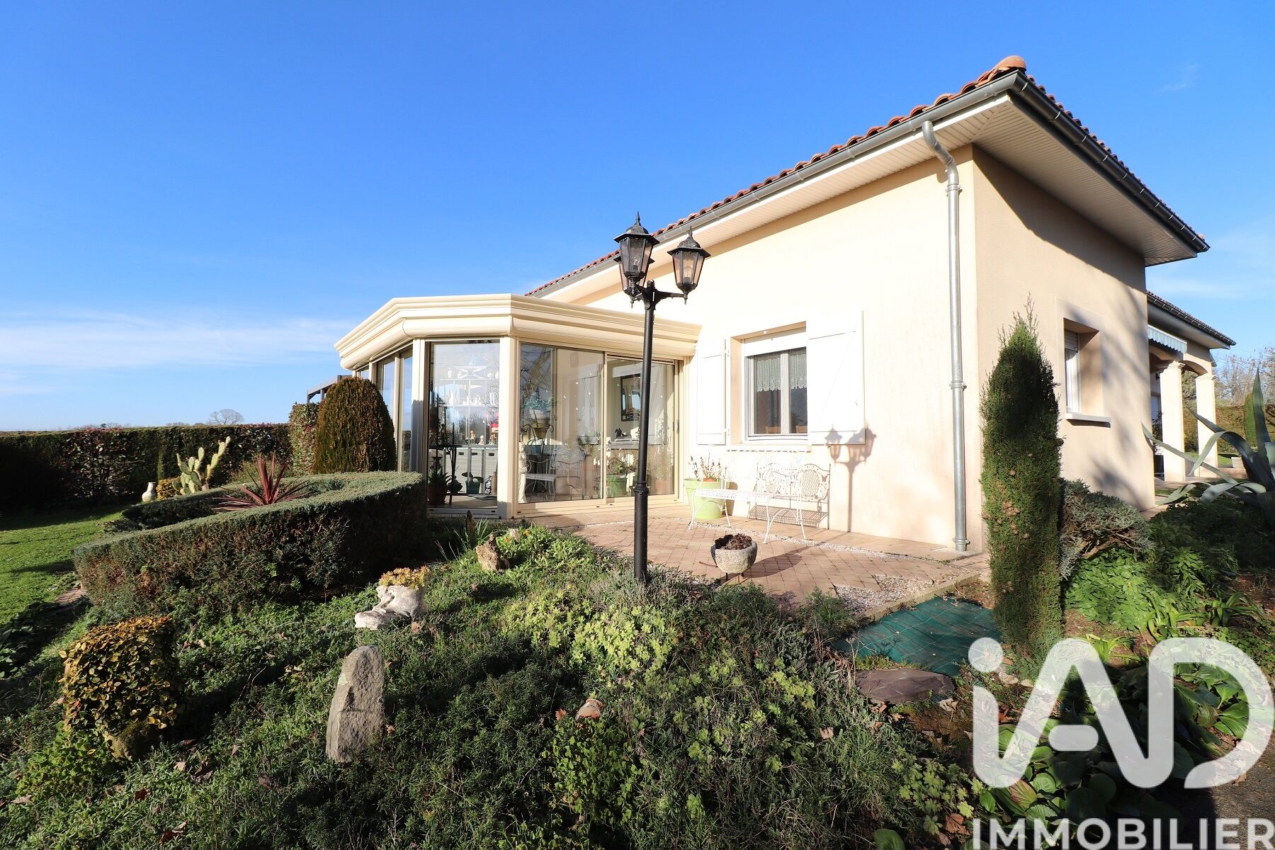 Iad France - Lucie GAY vous propose : Venez découvrir cette maison contemporaine de plain proche de toutes les commodités (commerces, écoles, docteur…). Cette spacieuse et lumineuse maison propose une belle pièce de vie donnant accès à une véranda équipée de volets roulants, une cuisine équipée et aménagée avec un accès direct à une terrasse couverte, L’espace nuit est composé de trois chambres, une salle d’eau avec un WC et un second WC séparé. La maison dispose d'un chauffage au sol par pompe à chaleur et d'une cheminée foyer fermé dans le salon. 7 panneaux solaires récents sont présents pour de la revente et de l'autoconsommation. Un récupérateur d'eau entéré de 10 000 L permet l'arrosage du jardin. Un garage attenant avec porte sectionnelle motorisée est disponible pour vos besoins de stockage et stationnement protégé. Le point fort de cette propriété est son vaste jardin clos. Des dépendances non attenantes vous proposent une cave, une fausse de vidange. Il ne vous reste plus qu’à apporter vos valises. À visiter sans tarder. Honoraires d'agence à la charge du vendeur. Information d'affichage énergétique sur ce bien : classe ENERGIE B indice 96 et classe CLIMAT A indice 3. Les informations sur les risques auxquels ce bien est exposé, y compris l'obligation légale de débroussaillement, sont disponibles sur le site Géorisques : http://www.georisques.gouv.fr. La présente annonce immobilière a été rédigée sous la responsabilité éditoriale de Mme Lucie GAY mandataire indépendant en immobilier (sans détention de fonds), agent commercial de la SAS I@D France immatriculé au RSAC de SAINTES sous le numéro 901539114, titulaire de la carte de démarchage immobilier pour le compte de la société I@D France SAS.