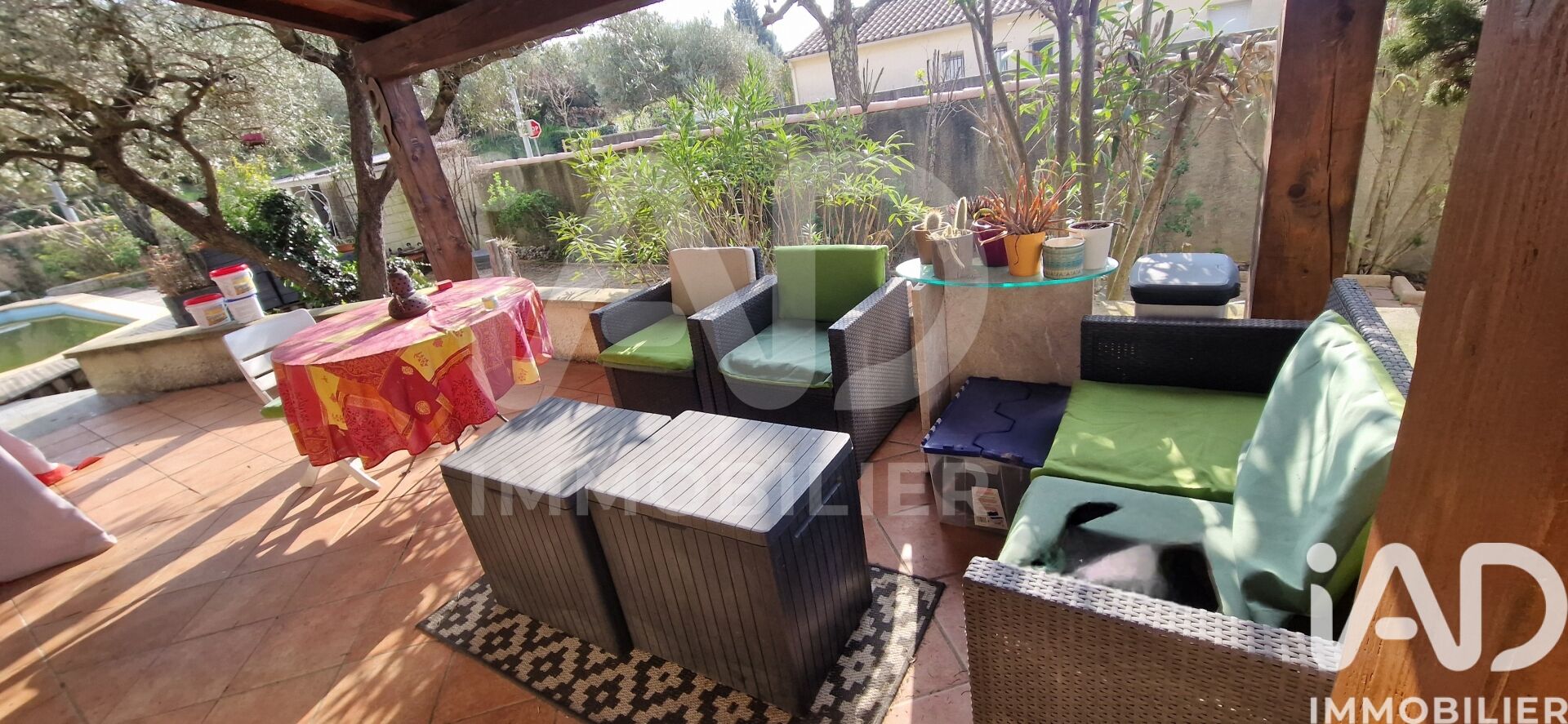 Iad France - Caroline Barral vous propose : Saint-Dionisy – Vaunage – Maison de plain-pied avec piscine, carport, Terrasses, jardin clos et arboré – DPE B Située à Saint-Dionisy, proche de toutes commodités, dans un quartier calme et résidentiel, cette maison de plain-pied d’environ 115 m² vous séduira par son cadre de vie agréable et fonctionnel. Implantée sur un terrain clos et arboré de 600 m², elle dispose d’une piscine ainsi que de deux terrasses, dont une couverte, idéales pour profiter des extérieurs en toute saison. Lumineuse et traversante, la maison offre une cuisine équipée ouverte sur une belle pièce de vie avec poêle à bois. Elle comprend trois chambres, une salle de bain avec baignoire et douche, ainsi qu’un WC séparé. Le garage a été aménagé en chambre supplémentaire avec un coin buanderie, offrant de nombreuses possibilités d’aménagement selon vos besoins. Confortable et bien équipée, elle bénéficie de panneaux photovoltaïques, d’un chauffe-eau thermodynamique, d’une toiture isolée, de doubles vitrages et d’une climatisation réversible (PAC air / air). Maison de plain-pied idéale pour une vie agréable, que ce soit pour une famille, des jeunes retraités ou toute personne recherchant le confort du plain-pied dans un cadre sécurisé. Un Joli bien rare sur ce secteur, à découvrir rapidement. Honoraires d'agence à la charge du vendeur. Information d'affichage énergétique sur ce bien : classe ENERGIE B indice 73 et classe CLIMAT A indice 2. Les informations sur les risques auxquels ce bien est exposé, y compris l'obligation légale de débroussaillement, sont disponibles sur le site Géorisques : http://www.georisques.gouv.fr. La présente annonce immobilière a été rédigée sous la responsabilité éditoriale de Mme Caroline Barral mandataire indépendant en immobilier (sans détention de fonds), agent commercial de la SAS I@D France immatriculé au RSAC de Nîmes sous le numéro 488240011, titulaire de la carte de démarchage immobilier pour le compte de la société I@D France SAS.