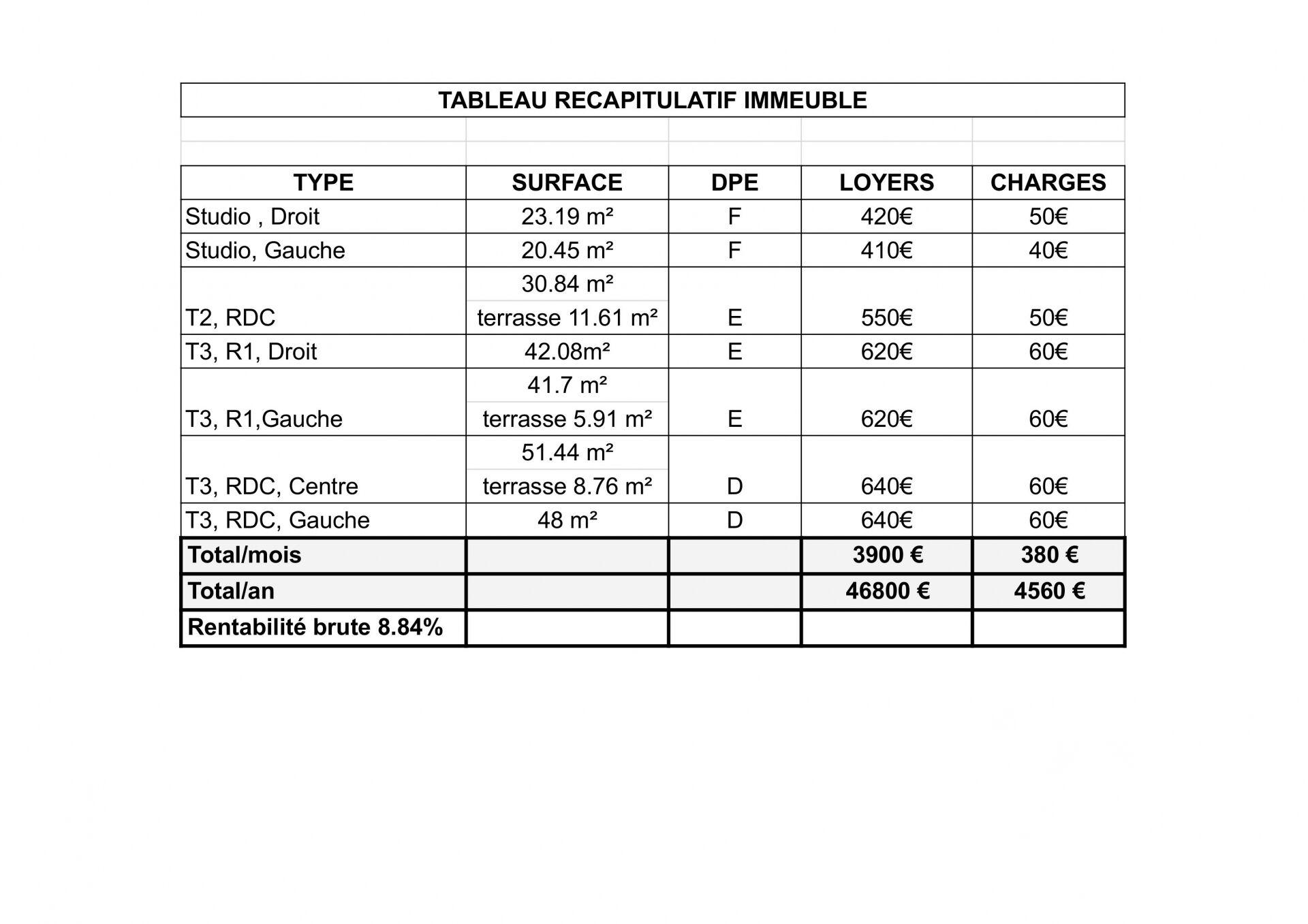 Iad France - Nirina Giraud vous propose : Produit d'investissement - Rentabilité attractive et stable - Marseille 13015 Investissez dans cet immeuble de rapport en monopropriété de 257 m² de surface (Loi Carrez ). L'ensemble se compose d'un immeuble principal ainsi que d'un bâtiment situé en fond de cour, apportant une configuration intéressante et une bonne répartition des logements en 4 T3,1 T2 et 2 studios. Les 7 lots sont loués apportant une rentabilité de 8.84% et assurant un retour sur investissement. L'immeuble est bien entretenu avec la façade et la toiture en bon état. Cela constitue un investissement pérenne. Des cours et terrasses complètent la propriété, offrant des espaces extérieurs prisés par les locataires et renforçant la stabilité locative. Ce bien est situé dans un quartier dynamique et cela garantit une forte demande locative à long terme. Honoraires d'agence à la charge du vendeur. Information d'affichage énergétique sur ce bien : classe ENERGIE F indice 331 et classe CLIMAT C indice 13. Les informations sur les risques auxquels ce bien est exposé, y compris l'obligation légale de débroussaillement, sont disponibles sur le site Géorisques : http://www.georisques.gouv.fr. La présente annonce immobilière a été rédigée sous la responsabilité éditoriale de Mme Nirina Giraud mandataire indépendant en immobilier (sans détention de fonds), agent commercial de la SAS I@D France immatriculé au RSAC de DRAGUIGNAN sous le numéro 991363755, titulaire de la carte de démarchage immobilier pour le compte de la société I@D France SAS.