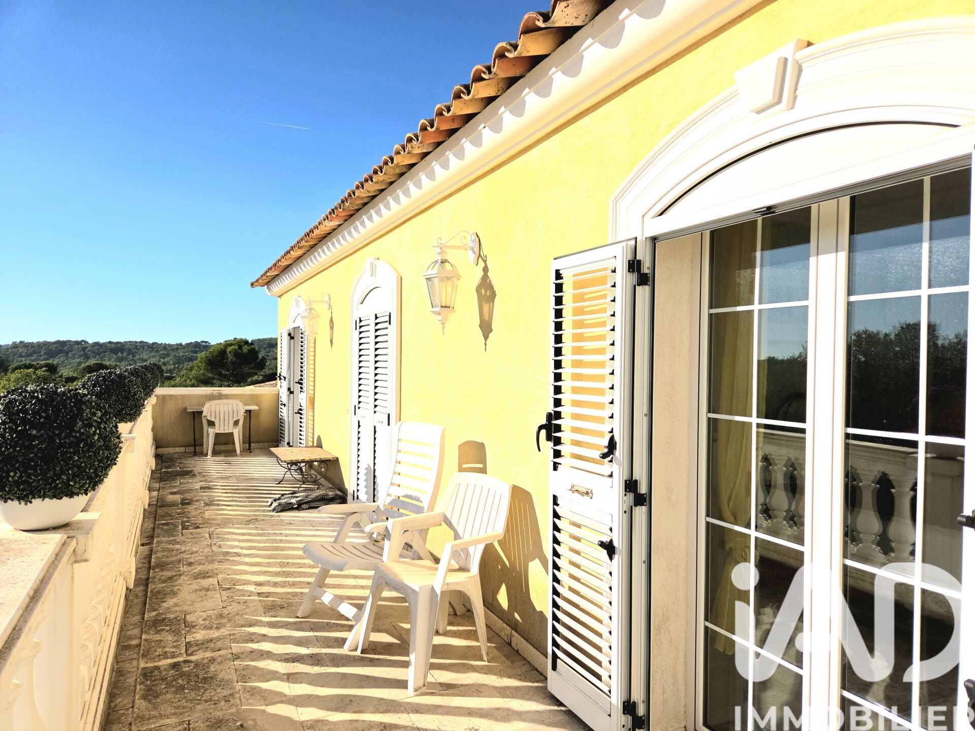 Iad France - Laëtitia Masson vous propose : Somptueuse Villa d'Exception de 300 m² sur un vaste terrain de 5489 m² agrémenté de nombreux oliviers et d' arbres fruitiers avec Piscine, à Trans-en-Provence. Construite en 2008, cette magnifique maison offre des prestations haut de gamme et un confort absolu pour une vie paisible dans un cadre enchanteur. L'intérieur de la villa se compose de 5 chambres dont 4 suites parentales, un spacieux séjour de 86 m² baigné de lumière naturelle, cheminée à insert, une cuisine ouverte entièrement équipée conduisant à une magnifique véranda. Un sous-sol de 180 m² isolé, comprenant cave, atelier, garages, local piscine. L'espace extérieur est un véritable havre de paix, avec une piscine relaxante au sel de 12,5 X 5,5 mètres et terrasses, pour profiter du soleil du sud, et un grand terrain pouvant accueillir divers projets. Les équipements de confort et de sécurité tels qu'un système d'alarme, arrosage automatique, éclairage extérieur, forage pour un approvisionnement autonome en eau, clôture en fer forgé et l'assainissement sont présents pour votre tranquillité d'esprit. Idéalement située à proximité des axes autoroutiers (9km), du centre-ville (2km), de la gare TGV (5km) et de la mer (29km), cette villa offre un emplacement stratégique tout en préservant une intimité rare. Vous serez séduit par la qualité de construction, l'agencement soigné et les finitions de haut standing de cette propriété. Ne manquez pas cette opportunité unique d'acquérir une demeure d'exception à Trans-en-Provence. Une visite s'impose pour apprécier pleinement le confort et le charme de ce bien ! Honoraires d'agence à la charge du vendeur. Information d'affichage énergétique sur ce bien : classe ENERGIE C indice 142 et classe CLIMAT A indice 4. Les informations sur les risques auxquels ce bien est exposé, y compris l'obligation légale de débroussaillement, sont disponibles sur le site Géorisques : http://www.georisques.gouv.fr. La présente annonce immobilière a été rédigée sous la responsabilité éditoriale de Mme Laëtitia Masson mandataire indépendant en immobilier (sans détention de fonds), agent commercial de la SAS I@D France immatriculé au RSAC de frejus sous le numéro 990152597, titulaire de la carte de démarchage immobilier pour le compte de la société I@D France SAS.