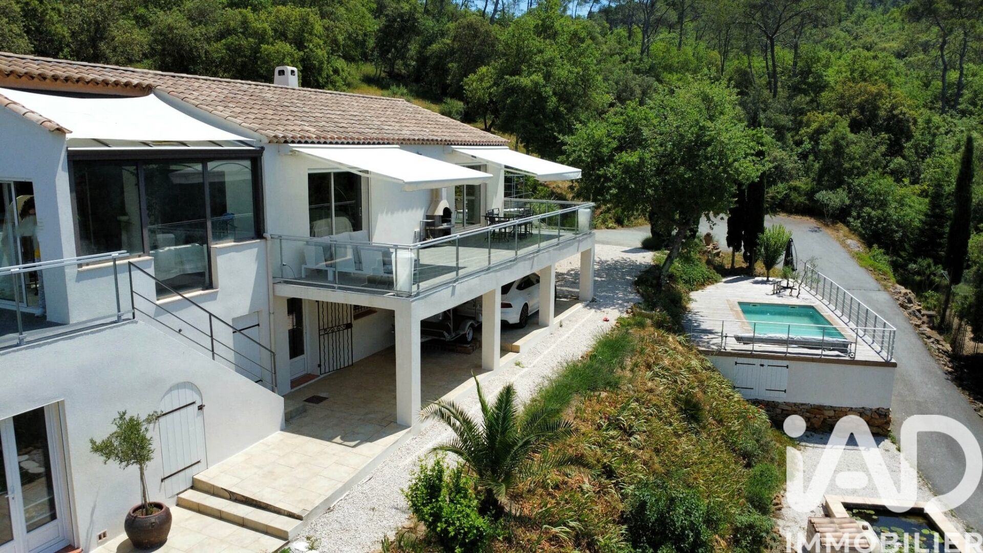 Iad France - Eric Mater vous propose : NOUVEAUTE ! à proximité immédiate du GOLF DE BARBAROUX, propriété UNIQUE à Cabasse - Maison de Prestige avec Piscine et Parc Paysager En POSITION DOMINANTE, découvrez cette superbe COMPTEMPORAINE D'ARCHITECTE de 230 m² et principalement de PLAIN-PIED, implantée sur un vaste terrain de 9740 m², dont 4000 m² entièrement clôturés, offrant un cadre de vie unique et privilégié dans la charmante commune de Cabasse. Construite en 2005, cette propriété d'exception saura vous séduire par ses prestations de qualités et son environnement paisible. La maison se compose d'une vaste entrée CATHEDRALE, ambiance verrière, de QUATRE CHAMBRES SPACIEUSES avec placards, deux salles d'eau, une salle de bain, trois toilettes, une cuisine ouverte entièrement équipée et aménagée avec ilot central, un SEJOUR DOUBLE lumineux de 50 m² environ, et trois belles terrasses. Chaque espace a été pensé avec soin pour offrir un confort optimal et une atmosphère chaleureuse. Vous apprécierez, également, en rez de jardin, un T2 de 50 m² environ, avec coin cuisine, salle d'eau et toilette, idéal pour un rapprochement familial, pour une profession libérale ou à aménager selon vos besoins. Les larges baies vitrées offrent une vue imprenable sur le magnifique parc paysager qui entoure la propriété. La PISCINE 6x4, véritable oasis de détente, est nichée au cOEur d'un jardin arboré, idéal pour profiter des longues journées ensoleillées. Les équipements de confort incluent la CLIMATISATION REVERSIBLE DANS TOUTES LES PIECES, le raccordement au tout-à-l'égout, et un système de chauffage par aérothermie ou poêles à bois. De plus, pour assurer votre sécurité, un interphone est installé. Cette demeure allie modernité, élégance et intimité, offrant un cadre de vie idyllique pour les amoureux de la nature et du calme. Située en Provence verte, à dix minutes de BRIGNOLES et du LUC. Ne manquez pas cette opportunité rare de devenir propriétaire d'une résidence de prestige à Cabasse. Une visite s'impose pour apprécier pleinement le charme de cette propriété unique. Honoraires d'agence à la charge du vendeur. Information d'affichage énergétique sur ce bien : classe ENERGIE C indice 127 et classe CLIMAT A indice 3. Les informations sur les risques auxquels ce bien est exposé, y compris l'obligation légale de débroussaillement, sont disponibles sur le site Géorisques : http://www.georisques.gouv.fr. La présente annonce immobilière a été rédigée sous la responsabilité éditoriale de M Eric Mater mandataire indépendant en immobilier (sans détention de fonds), agent commercial de la SAS I@D France immatriculé au RSAC de Toulon sous le numéro 510473010, titulaire de la carte de démarchage immobilier pour le compte de la société I@D France SAS.