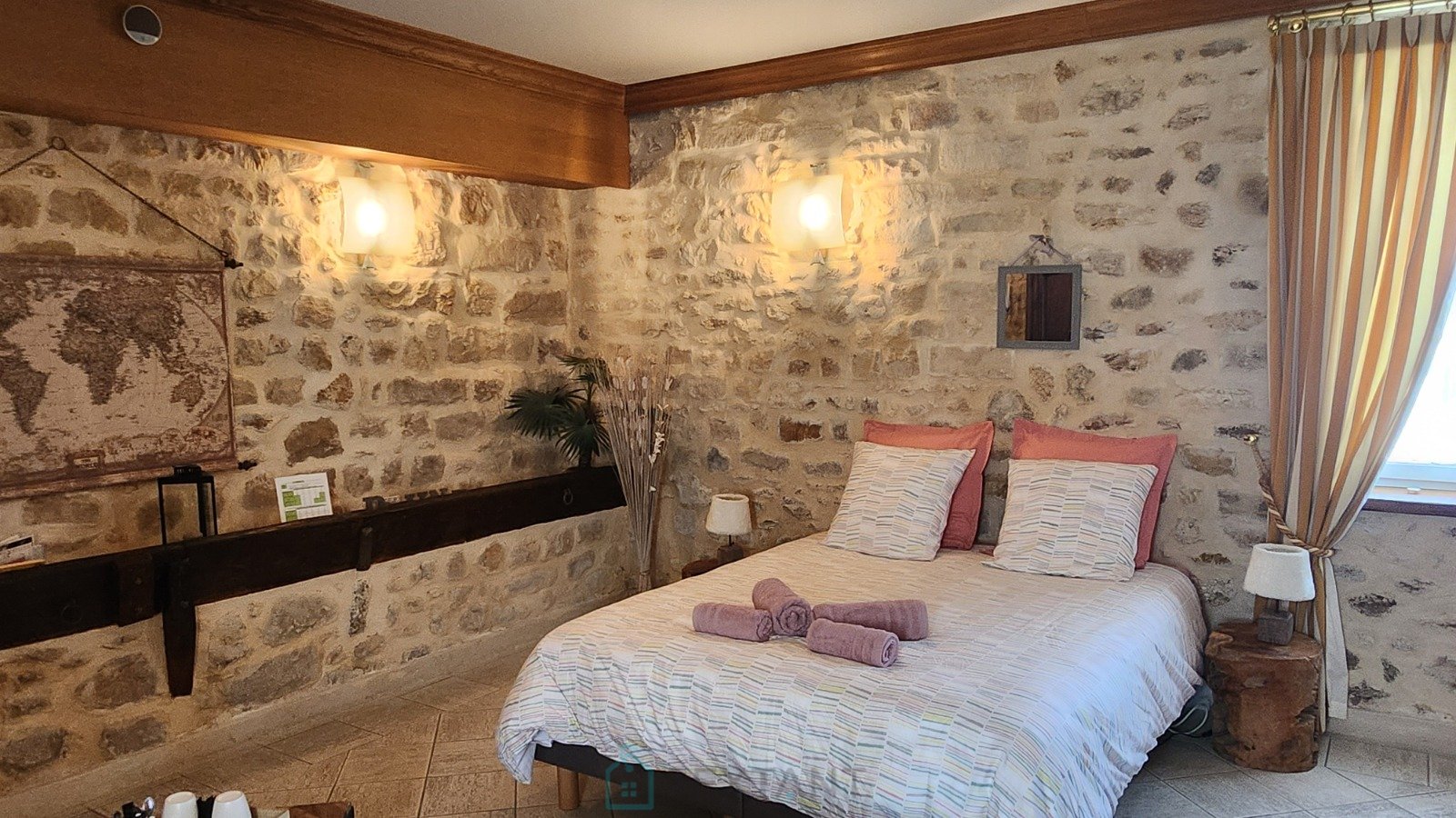 Voici une propriété de caractère composée d'une belle demeure en pierre, de deux charmantes annexes, d'une grande cour et d'un grand jardin plat et clos de murs (4863m² environ). La bâtisse principale : Au rez-de-chaussée : une entrée, un séjour chaleureux, un salon raffiné, une cuisine au volume intéressant, prolongée par une arrière-cuisine. Un espace proposant un hammam agrémente cette partie de la demeure. À l'étage : un espace nuit bien distribué : un palier, deux chambres, ainsi qu'une suite parentale. Une salle d'eau, une lingerie. +++ Une cave et une buanderie. Les Annexes sont composées de 5 suites entièrement meublées et équipées, avec salles de bains privatives. La grande Annexe communique avec la bâtisse principale. À l'extérieur, on profite d'un parc paysagé, très calme et sans vis-à-vis, agrémenté d'une magnifique piscine (13x5) et d'un terrain de basket. Un bien d'exception, proposant plusieurs projets de vies : - un lieu paisible, dans une demeure de charme, pour une vie de famille, au calme et à proximité de tout. - une résidence secondaire permettant de recevoir la famille et les amis, tout en conservant son intimité