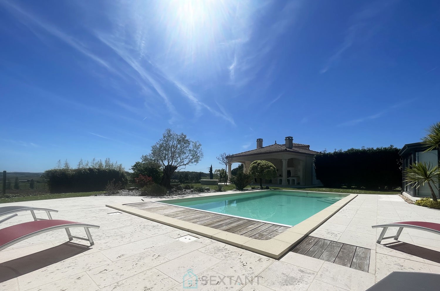 MAISON D'ARCHITECTE DE 225 m² ET GITE INDEPENDANT DE 65 m² AVEC PISCINE DANS UN MAGNIFIQUE PARC ARBORE DE 4 000 m² Très belle villa (constructeur Augier) construite en 2003 de 225 m² avec gîte indépendant de 65m² au milieu d'un parc arboré entièrement clos de plus de 4 000m² (jardin paysagé) : terrasse, piscine chauffée, sous-bois, bassin à poisson, et surtout, un point de vue magnifique sur la campagne environnante. Aucune nuisance aux alentours, le cadre est idyllique