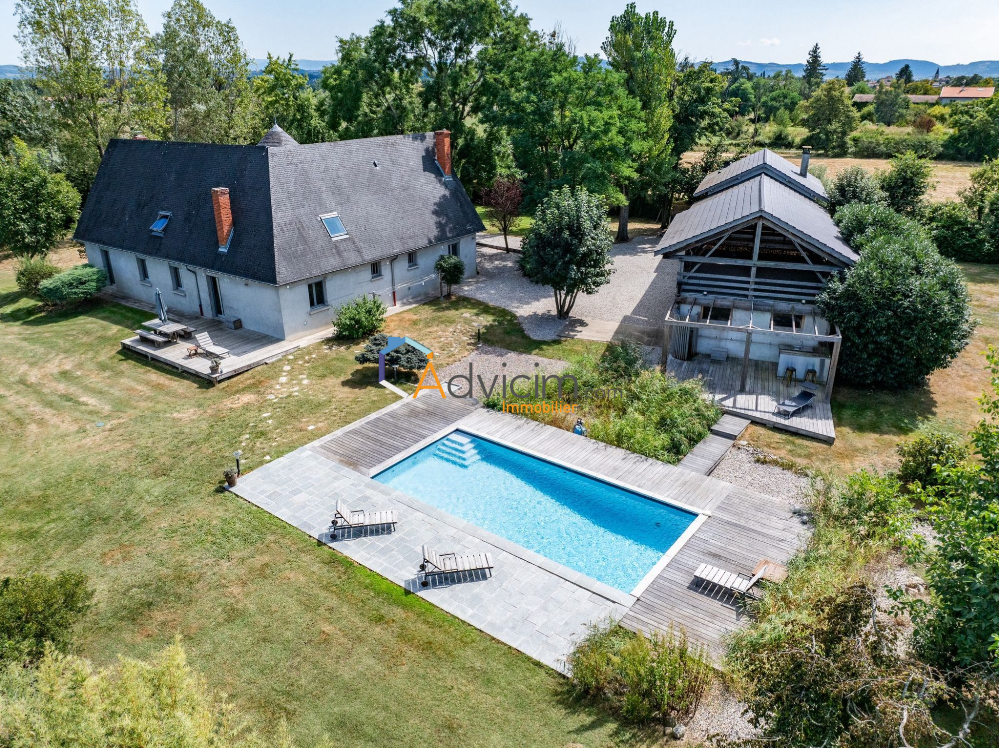 Les extérieurs: Vous profitez d'une piscine de 10 x 5 mètres installée en 2015, entourée d'une terrasse ensoleillée, d'un bar, d'une douche extérieure et d'un pool house. Une passerelle en bois d'Ipé relie élégamment la piscine au pool house, créant un bel espace de détente. Le tout est niché dans un parc arboré, agrémenté d'arbres fruitiers et d'une cour gravillonnée, sans aucun vis-à-vis.
