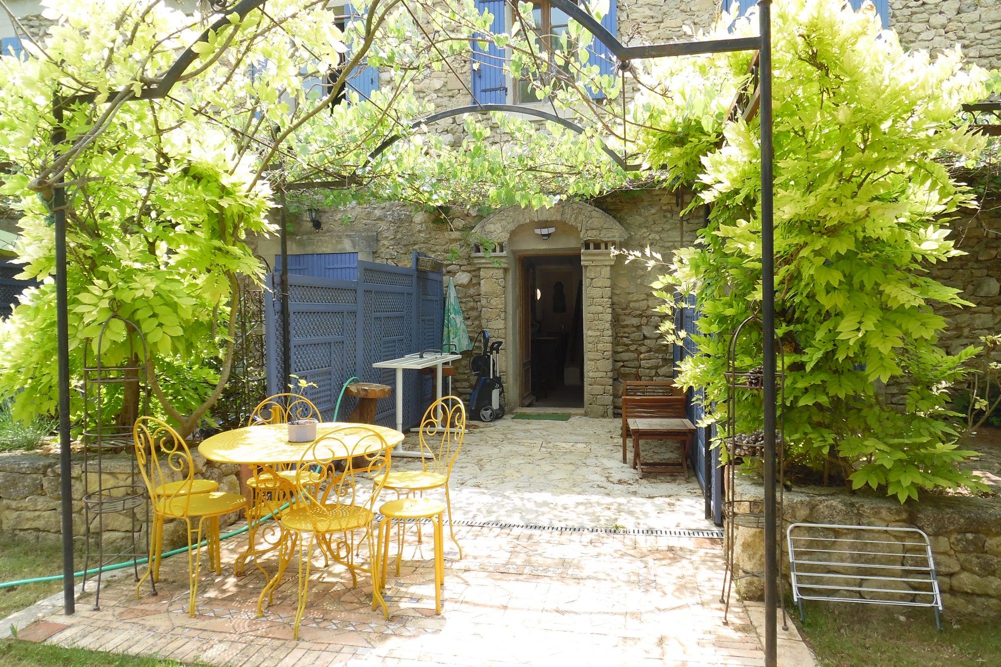 A vendre au Beaucet joli village des monts de Vaucluse à proximité de Saint Didier et à 10 minutes de Carpentras, charmant appartement au 1er étage, 3 pièces avec mezzanine dans un domaine arboré avec piscine.