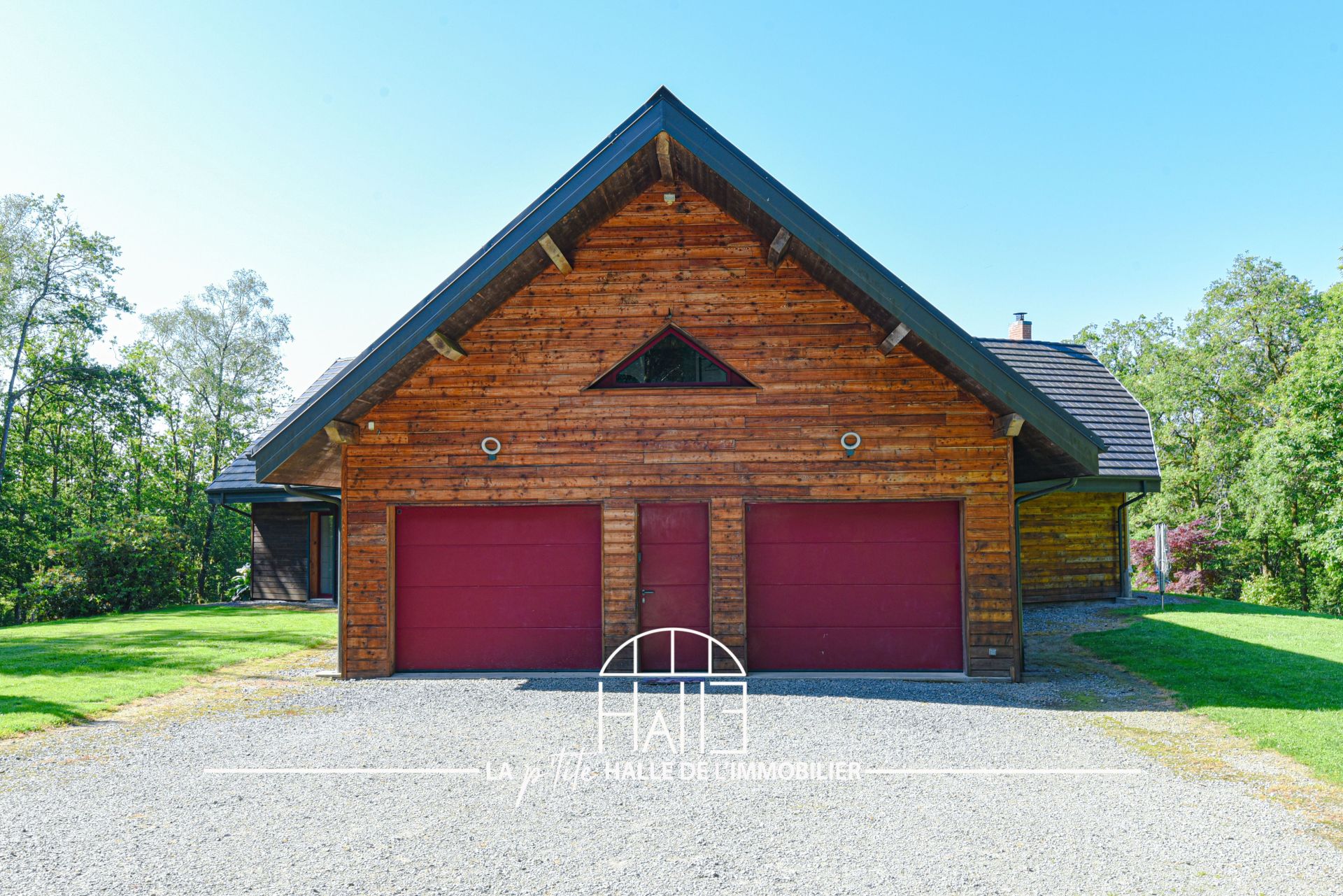 - Double garage, atelier, et espaces de stationnement,